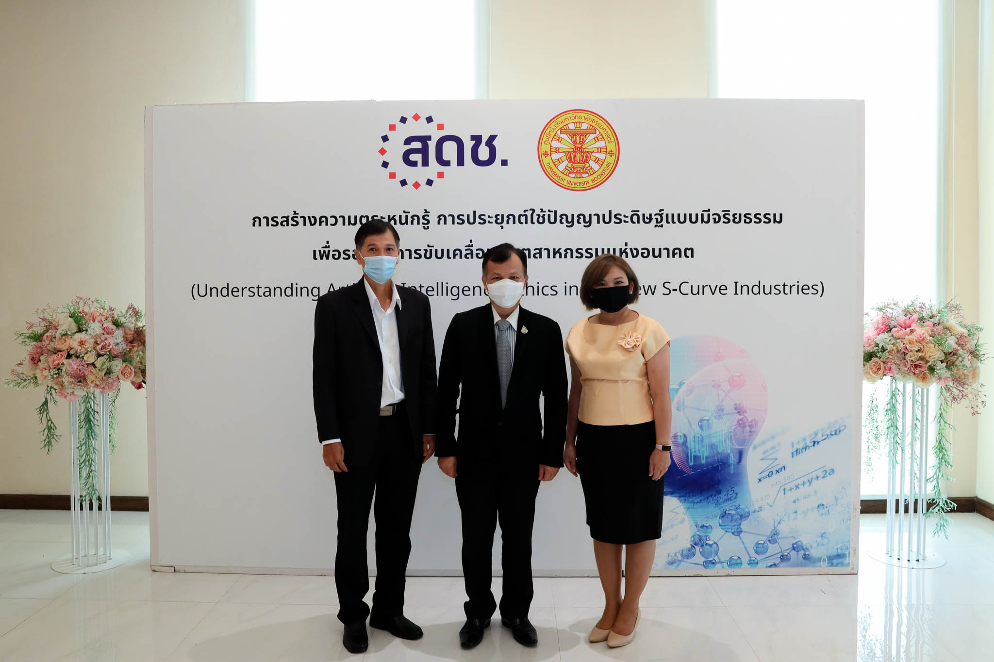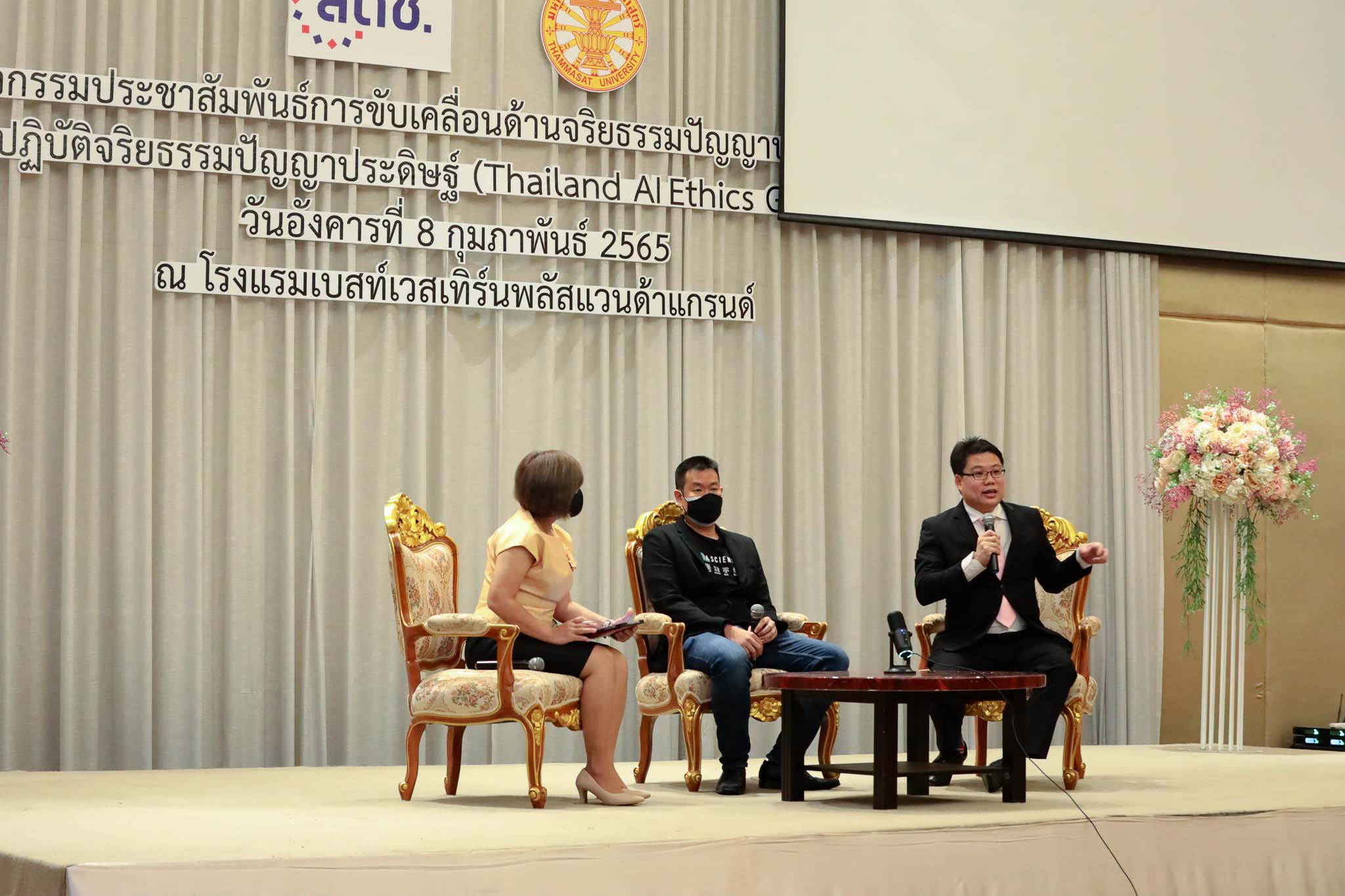 นายธีรวุฒิ ธงภักดิ์ ผู้อำนวยการกองโครงสร้างพื้นฐานเทคโนโลยีดิจิทัล กล่าวว่า "จากมติคณะรัฐมนตรีมีเมื่อวันที่ 2 กุมภาพันธ์ ๒๕๖๔ รับทราบและเห็นชอบแนวปฏิบัติจริยธรรมปัญญาประดิษฐ์ ตามที่กระทรวงดิจิทัลเพื่อเศรษฐกิจและสังคมเสนอ โดยให้กระทรวงฯ เร่งสร้างความเข้าใจที่ชัดเจนกับหน่วยงานที่เกี่ยวข้องเกี่ยวกับแนวทางปฏิบัติจริยธรรมปัญญาประดิษฐ์ ทั้งในประเด็นหลักคิด นิยามและแนวทางการแปลงแนวปฏิบัติจริยธรรมปัญญาประดิษฐ์ไปสู่การปฏิบัติ โดยให้พิจารณากำหนดหน่วยงานที่มีความพร้อม เพื่อเป็นหน่วยงานนำร่องในการดำเนินการในระยะแรก และประเมินผลการดำเนินการก่อนขยายผลในระยะต่อไป สดช. ซึ่งเป็นหน่วยงานในสังกัดของกระทรวงดิจิทัลฯ ได้ดำเนินโครงการจ้างที่ปรึกษาดำเนินการสร้างความตระหนักรู้ การประยุกต์ใช้ปัญญาประดิษฐ์แบบมีจริยธรรมเพื่อรองรับการขับเคลื่อนสู่อุตสาหกรรมแห่งอนาคต (Understanding Artificial Intelligence ethics in The New S-Curve Industries) โดยร่วมกับมหาวิทยาลัยธรรมศาสตร์ ซึ่งมีการดำเนินงานที่สำคัญ ดังนี้ 1. จัดกิจกรรมประชาสัมพันธ์การขับเคลื่อนด้านจริยธรรมปัญญาประดิษฐ์ ให้กับหน่วยงานภาครัฐ ภาคเอกชน ภาคการศึกษา องค์กรไม่แสวงหาผลกำไร สมาคม สมาพันธ์ และประชาชนทั่วไป เพื่อให้ทราบถึงแนวปฏิบัติจริยธรรมปัญญาประดิษฐ์ซึ่งเป็นการจัดงานในวันนี้ 2. จัดทำหลักสูตรการเรียนรู้ พัฒนาสื่อและคู่มือ สำหรับการเรียนรู้ด้วยตนเองผ่านระบบออนไลน์ ในเรื่องการพัฒนาเทคโนโลยีปัญญาประดิษฐ์ ที่สอดคล้องกับแนวปฏิบัติจริยธรรมปัญญาประดิษฐ์ 3. พัฒนาเครื่องมือ ที่ช่วยในการตรวจสอบและเพิ่มประสิทธิภาพระบบปัญญาประดิษฐ์ให้มีจริยธรรม ตามแนวปฏิบัติจริยธรรมปัญญาประดิษฐ์ 4. จัดฝึกอบรมหลักสูตรและการใช้เครื่องมือที่พัฒนาขึ้น ให้กับบุคลากรของหน่วยงานที่เกี่ยวข้องและประชาชนทั่วไป ทั้งผ่านระบบออนไลน์ในภาคทฤษฎี จำนวนไม่น้อยกว่า 4,000 คน และคัดเลือกมาฝึกอบรมในภาคปฏิบัติ (Workshop) จำนวนไม่น้อยกว่า 1,200 คน รวมถึงจัดกิจกรรมมอบรางวัลยกย่องให้กับผู้เข้ารับการอบรมที่มีการนำแนวทางจริยธรรมปัญญาประดิษฐ์มาประยุกต์ใช้ และสุดท้าย คือ การจัดทำร่างแผนปฏิบัติการขับเคลื่อนจริยธรรมปัญญาประดิษฐ์ (Roadmap) สำหรับการจัดกิจกรรมฯ ในวันนี้ ได้เชิญผู้แทนจาก หน่วยงานภาครัฐ ภาคเอกชน ภาคการศึกษา องค์กรไม่แสวงหาผลกำไร สมาคม สมาพันธ์ และประชาชนทั่วไป เข้าร่วม จำนวน 223 หน่วยงาน รวมถึงจัดให้มีการถ่ายทอดสดผ่าน Facebook Live สำหรับผู้ที่ไม่สะดวกเข้าร่วมงาน โดยได้รับเกียรติจากศาสตราจารย์ ดร.ธนารักษ์ ธีระมั่นคง นายกสม