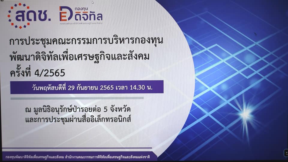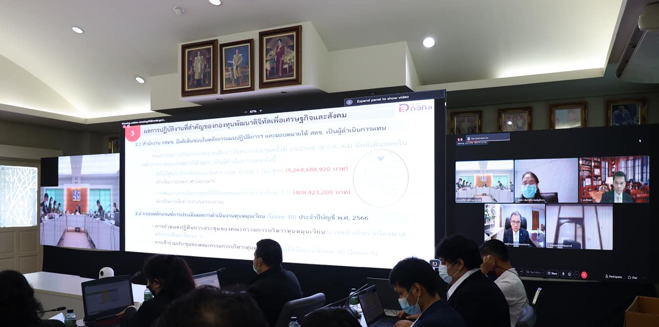 เมื่อวันที่ 29 กันยายน 2565 เวลา 14.30 น. พล.อ.ประวิตร วงษ์สุวรรณ รองนายกรัฐมนตรี รักษาราชการแทน นายกรัฐมนตรี เป็นประธานการประชุมคณะกรรมการบริหารกองทุนพัฒนาดิจิทัลเพื่อเศรษฐกิจและสังคม(บอร์ดกองทุนดิจิทัล) ครั้งที่ 4/2565 โดยมีนายชัยวุฒิ ธนาคมานุสรณ์ รัฐมนตรีว่าการกระทรวงดิจิทัลเพื่อเศรษฐกิจและสังคม นางสาวอัจฉรินทร์ พัฒนพันธ์ชัย ปลัดกระทรวงดิจิทัลเพื่อเศรษฐกิจและสังคม และนายภุชพงค์ โนดไธสง เลขาธิการคณะกรรมการดิจิทัลเพื่อเศรษฐกิจและสังคมแห่งชาติ เข้าร่วม