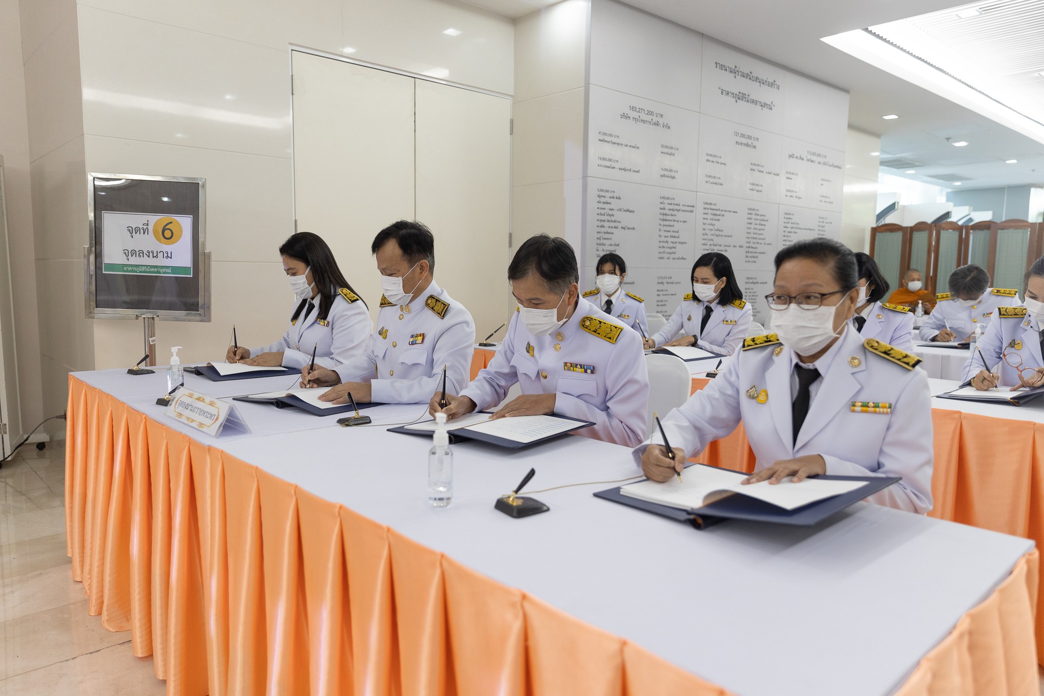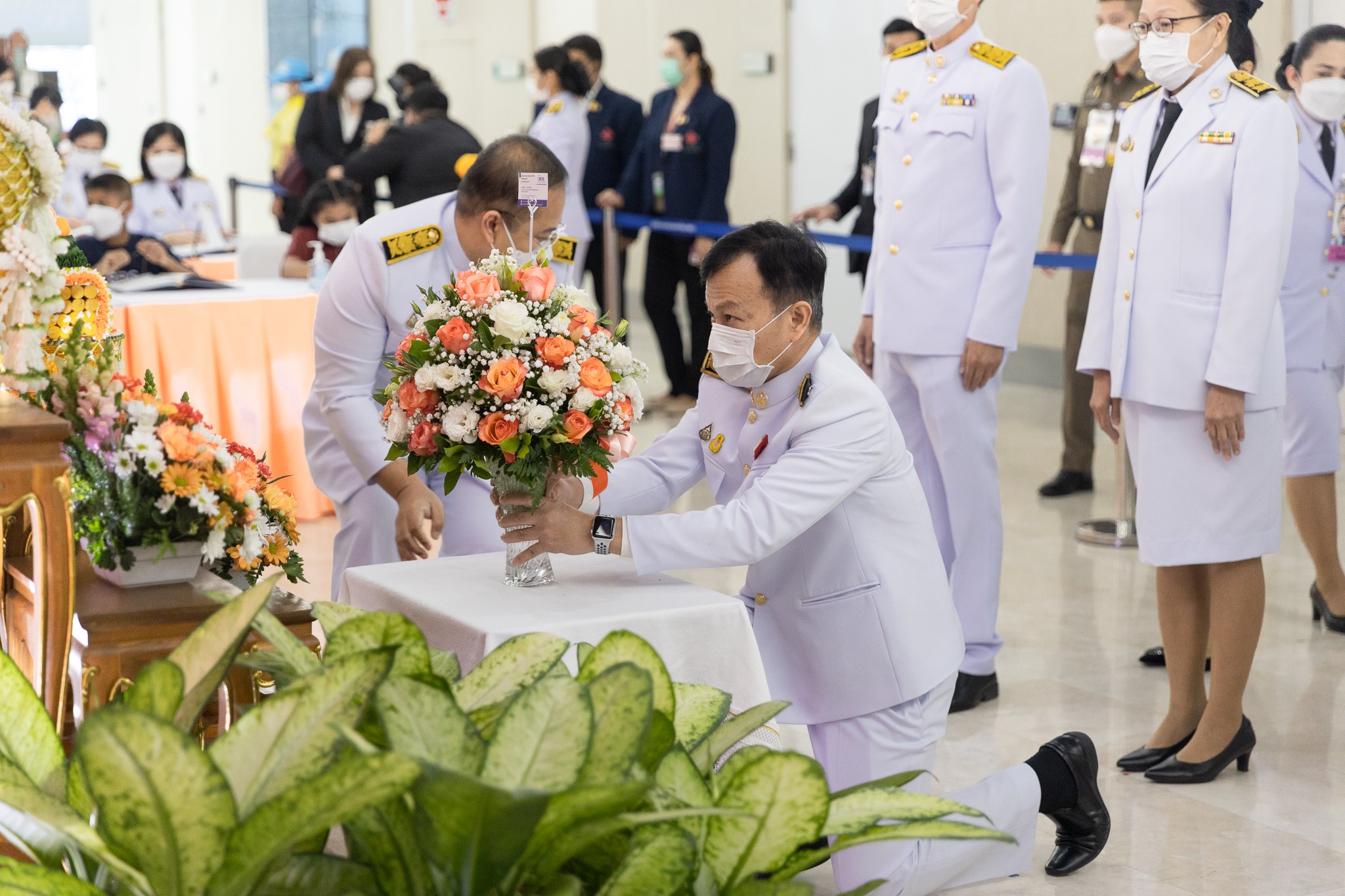 สดช. ทูลเกล้าทูลกระหม่อมถวายแจกันดอกไม้เบื้องหน้าพระรูป สมเด็จพระเจ้าลูกเธอ เจ้าฟ้าพัชรกิติยาภา นเรนทิราเทพยวดี กรมหลวงราชสาริณีสิริพัชร มหาวัชรราชธิดา และลงนามถวายพระพร