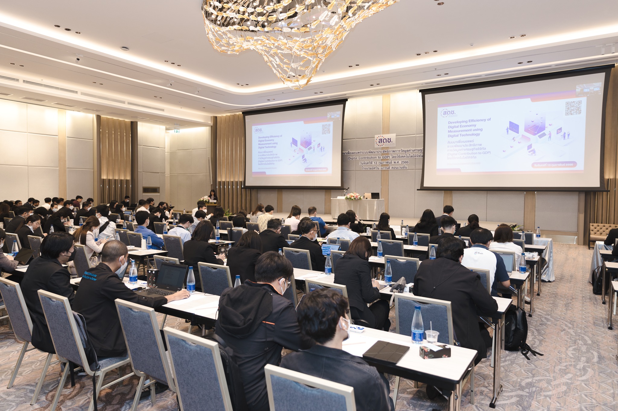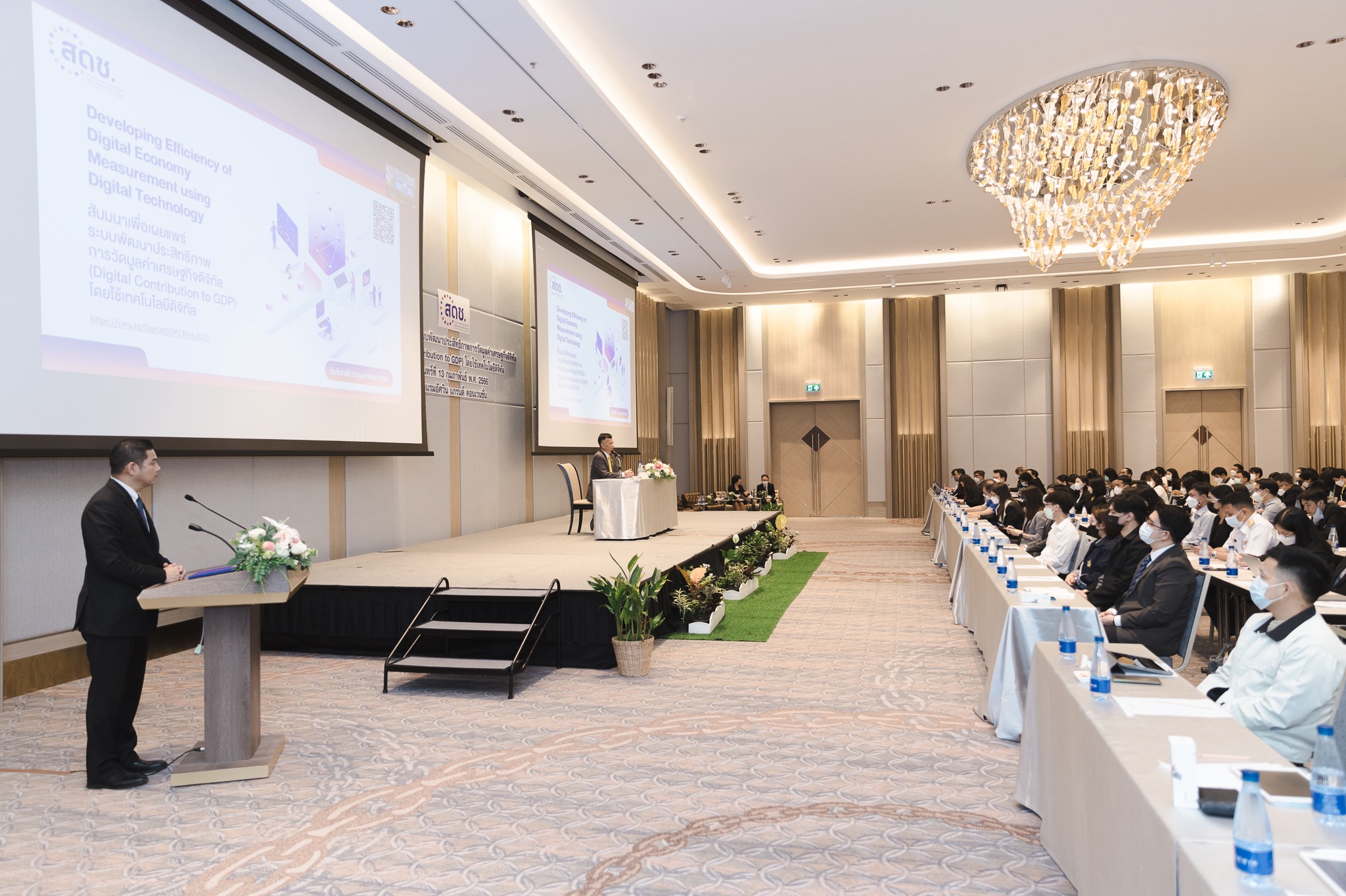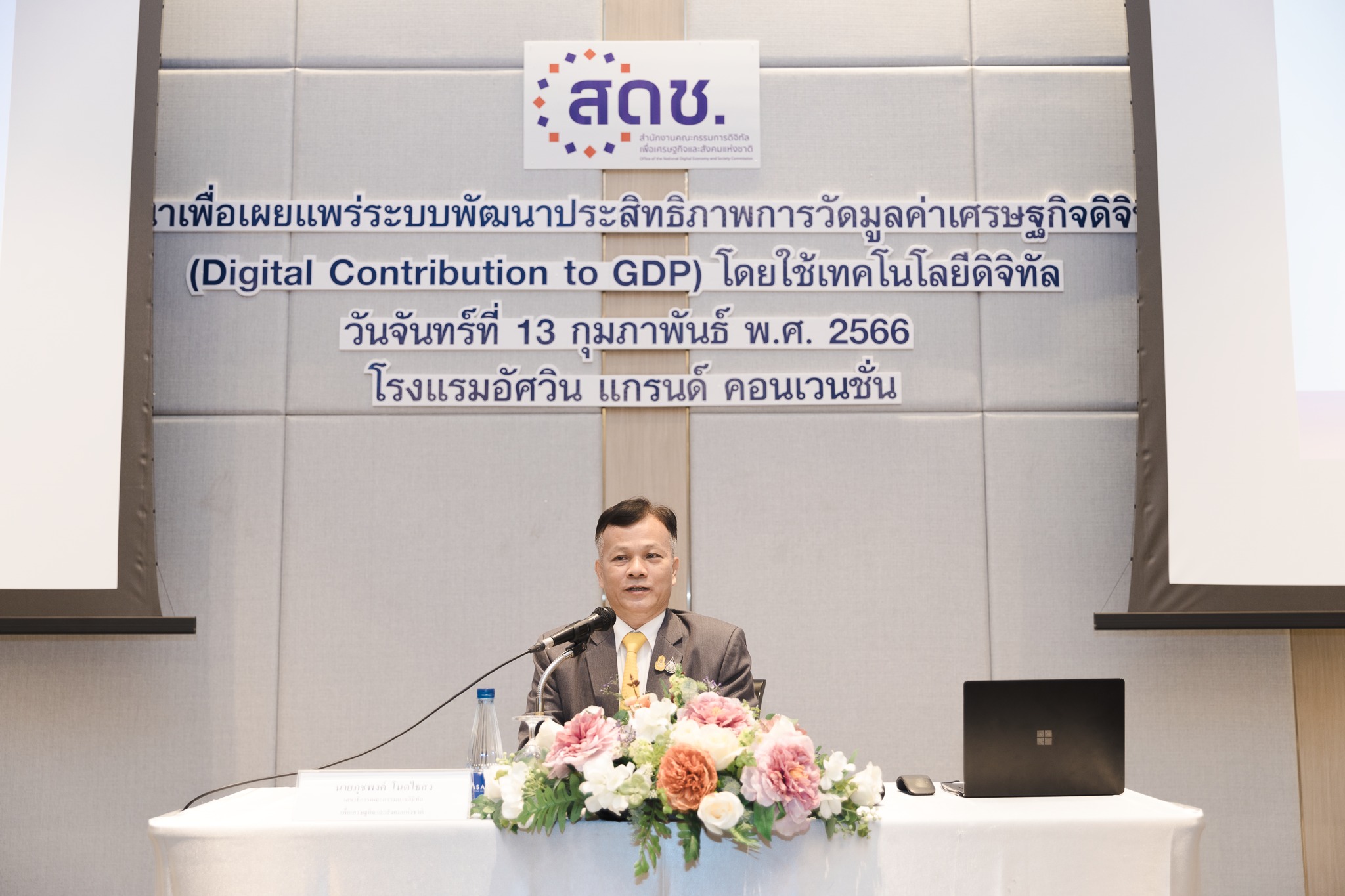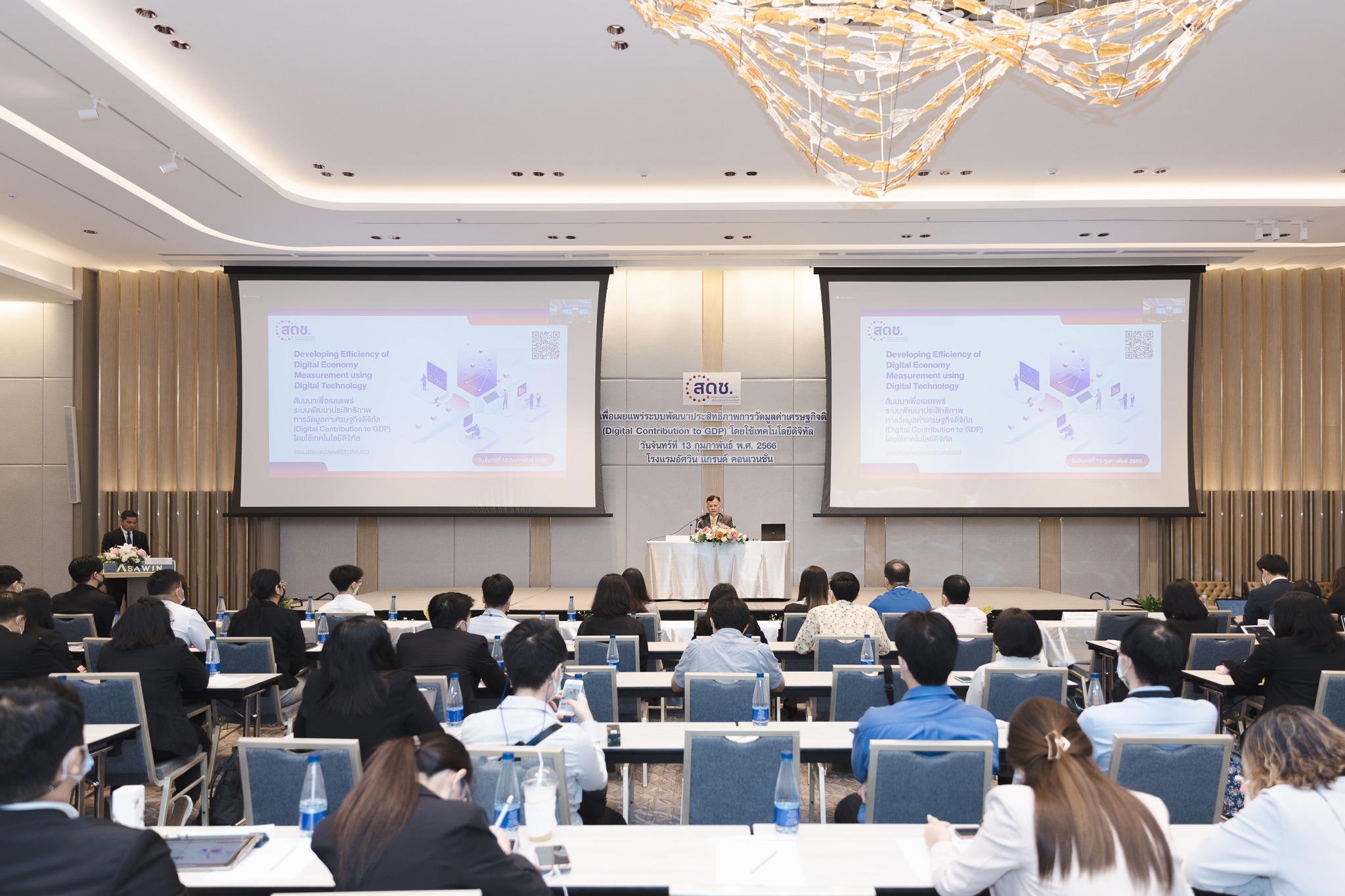 วันนี้ (13 กุมภาพันธ์ 2566) นายภุชพงค์ โนดไธสง เลขาธิการคณะกรรมการดิจิทัลเพื่อเศรษฐกิจและสังคมแห่งชาติ เป็นประธานเปิดการสัมมนาเพื่อเผยแพร่ระบบพัฒนาประสิทธิภาพการวัดมูลค่าเศรษฐกิจดิจิทัล (Digital Contribution to GDP) โดยใช้เทคโนโลยีดิจิทัล โดยมี นายเอกพงษ์ หริ่มเจริญ รองเลขาธิการคณะกรรมการดิจิทัลเพื่อเศรษฐกิจและสังคมแห่งชาติ พร้อมด้วย นางสาวพลอยรวี เกริกพันธ์กุล ผู้อำนวยการกองขับเคลื่อนดิจิทัลเพื่อเศรษฐกิจ เข้าร่วมด้วย ณ โรงแรมอัศวิน แกรนด์ คอนเวนชั่น กรุงเทพฯ และผ่านสื่ออิเล็กทรอนิกส์