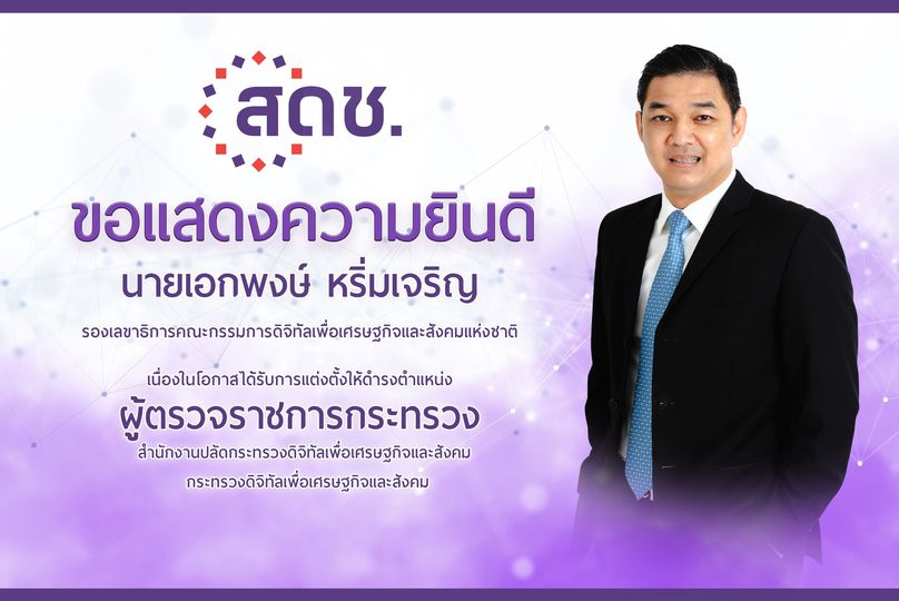 ขอแสดงความยินดีแด่ นายเอกพงษ์ หริ่มเจริญ ผู้ตรวจราชการกระทรวง สำนักงานปลัดกระทรวง กระทรวงดิจิทัลเพื่อเศรษฐกิจและสังคม