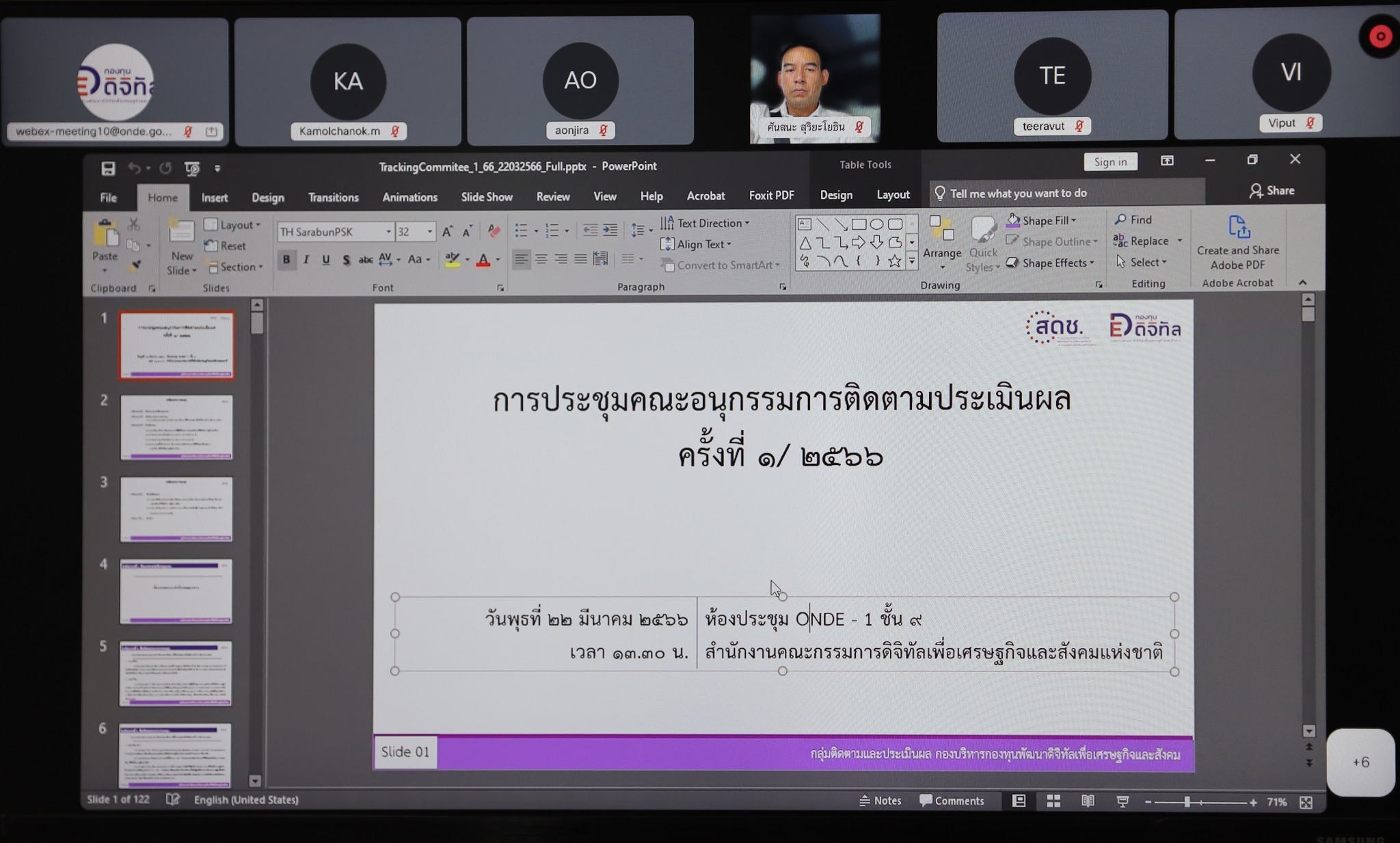 วันนี้ (22 มีนาคม 2566) นายภุชพงค์ โนดไธสง เลขาธิการคณะกรรมการดิจิทัลเพื่อเศรษฐกิจและสังคมแห่งชาติ เป็นประธานการประชุมคณะอนุกรรมการติดตามประเมินผลโครงการที่ได้รับการสนับสนุนจากกองทุนพัฒนาดิจิทัลเพื่อเศรษฐกิจและสังคม สำนักงานคณะกรรมการดิจิทัลเพื่อเศรษฐกิจและสังคมแห่งชาติ (สดช.) ครั้งที่ 1/2566 โดยมี นายสมเกียรติ ศิริวัฒนโชค ผู้เชี่ยวชาญเฉพาะด้านการบริหารจัดการเชิงนโยบาย และนายสมบูรณ์ เมฆไพบูลย์วัฒนา ผู้เชี่ยวชาญเฉพาะด้านการบริหารเทคโนโลยีดิจิทัลและการสื่อสาร เข้าร่วมด้วย ณ ห้องประชุม ONDE 1 ชั้น 9 สำนักงานคณะกรรมการดิจิทัลเพื่อเศรษฐกิจและสังคมแห่งชาติ และผ่านสื่ออิเล็กทรอนิกส์ โดยคณะอนุกรรมการฯ ได้ร่วมกันพิจารณาการขอแก้ไขสัญญา การส่งเสริมและสนับสนุนความช่วยเหลือและรับทุนอุดหนุน การวิจัยและพัฒนาจากกองทุนพัฒนาดิจิทัลเพื่อเศรษฐกิจและสังคม พร้อมรับทราบการดำเนินการเบิกจ่ายเงินตามงวดงานให้ผู้รับทุนจากกองทุนพัฒนาดิจิทัลฯ และรายงานผลการลงพื้นที่ (Site Visit) ติดตามและประเมินผลโครงการที่ได้รับการสนับสนุนจากกองทุนฯ