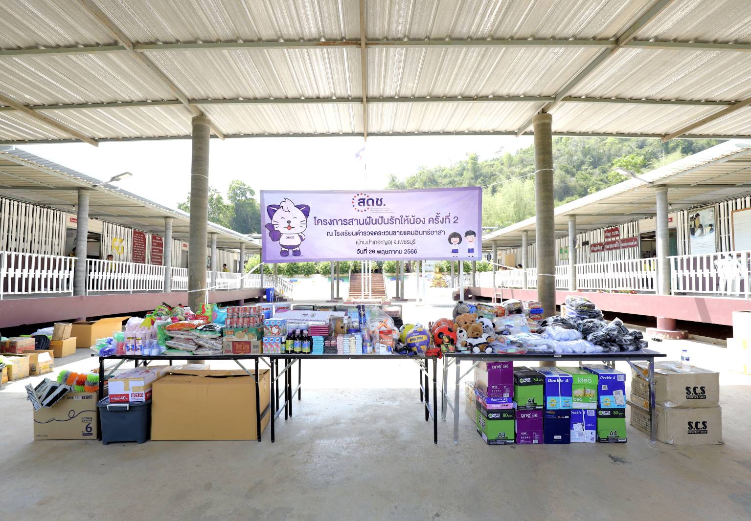 วันที่ 26 พฤษภาคม 2566 นายภุชพงค์ โนดไธสง เลขาธิการคณะกรรมการดิจิทัลเพื่อเศรษฐกิจและสังคมแห่งชาติ พร้อมด้วยผู้บริหาร ข้าราชการและเจ้าหน้าที่สำนักงานคณะกรรมการดิจิทัลเพื่อเศรษฐกิจและสังคมแห่งชาติ (สดช.) ลงพื้นที่จัดกิจกรรม “สานฝันปันรักเพื่อน้อง ครั้งที่ 2” ณ โรงเรียนตำรวจตระเวนชายแดนอินทรีอาสา (บ้านปาเกอะญอ) อ.แก่งกระจาน จ.เพชรบุรี เพื่อสร้างขวัญกำลังใจ และรอยยิ้มให้กับน้อง ๆ รวมถึงการเพิ่มโอกาสทางการศึกษา ด้วยการเข้าถึงเทคโนโลยีดิจิทัลแก่นักเรียนและชุมชนในพื้นที่ห่างไกลให้ทั่วถึงมากยิ่งขึ้น
