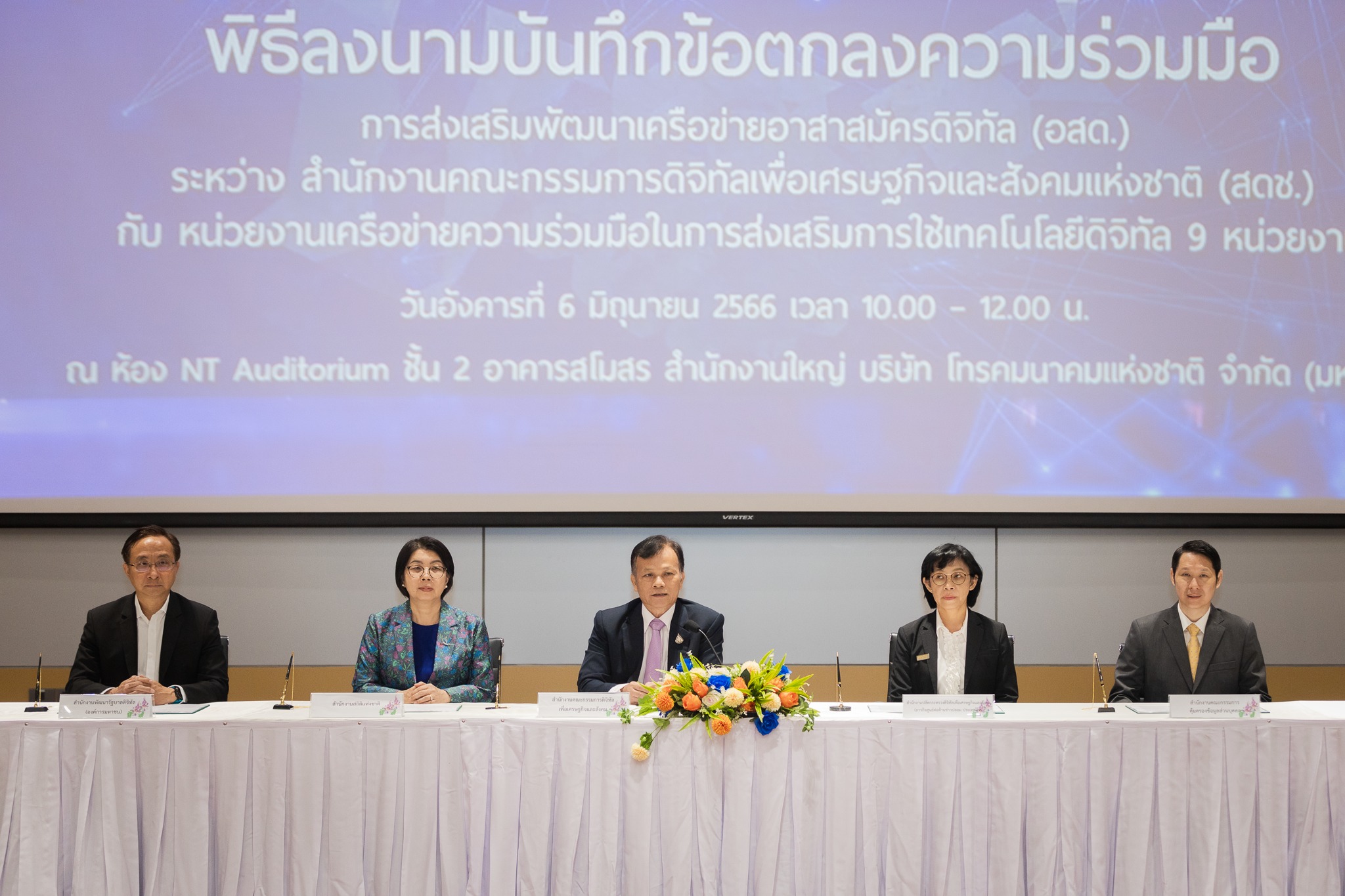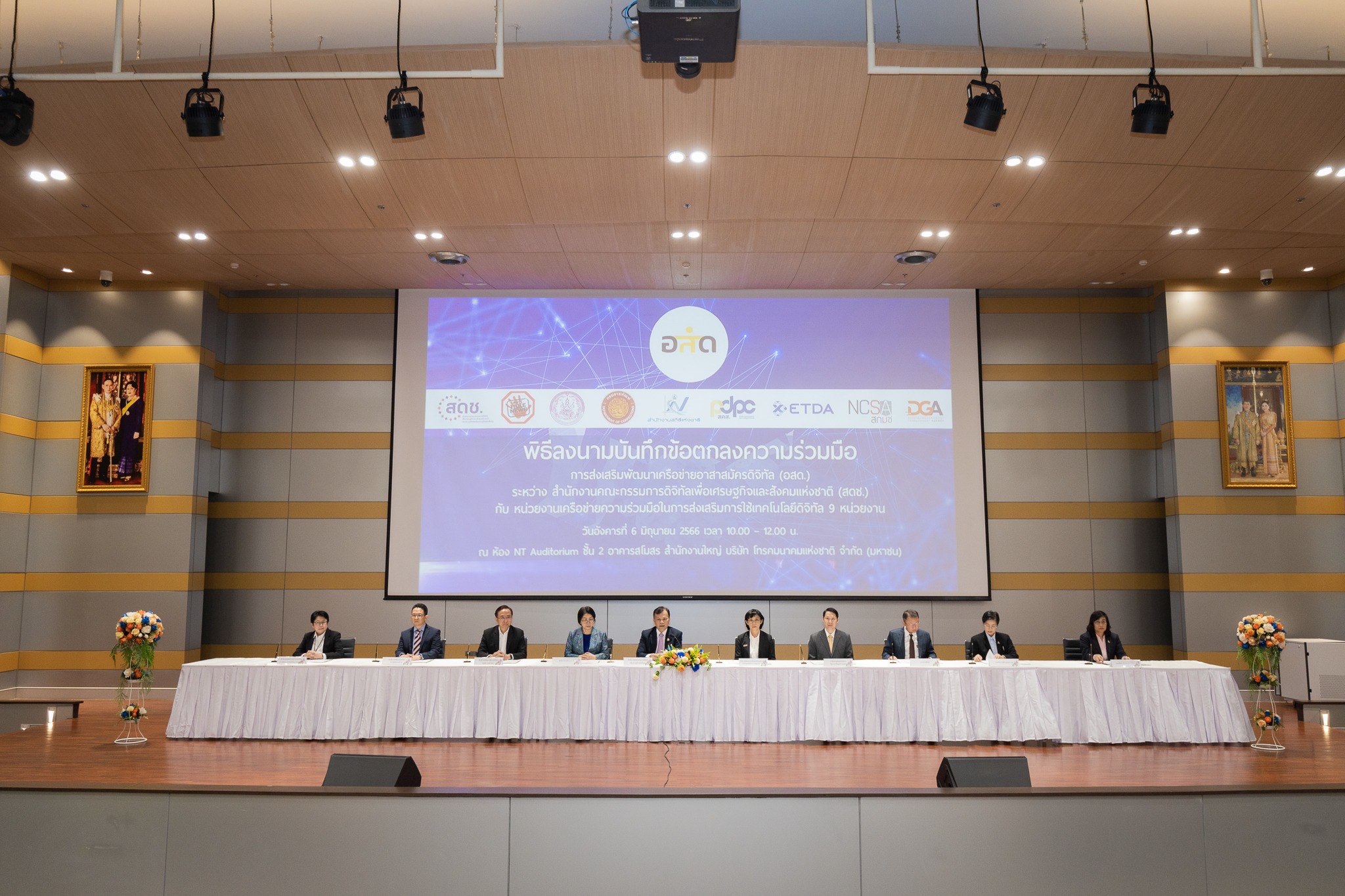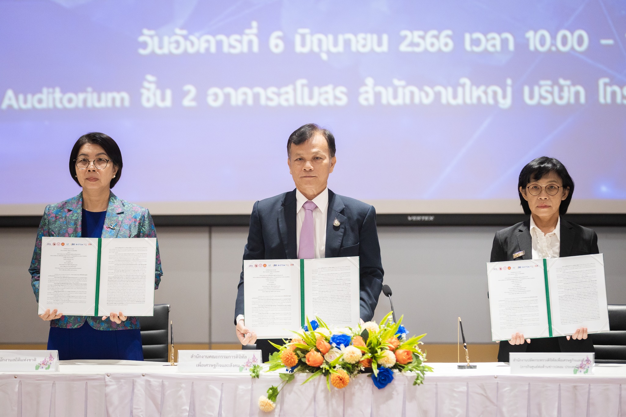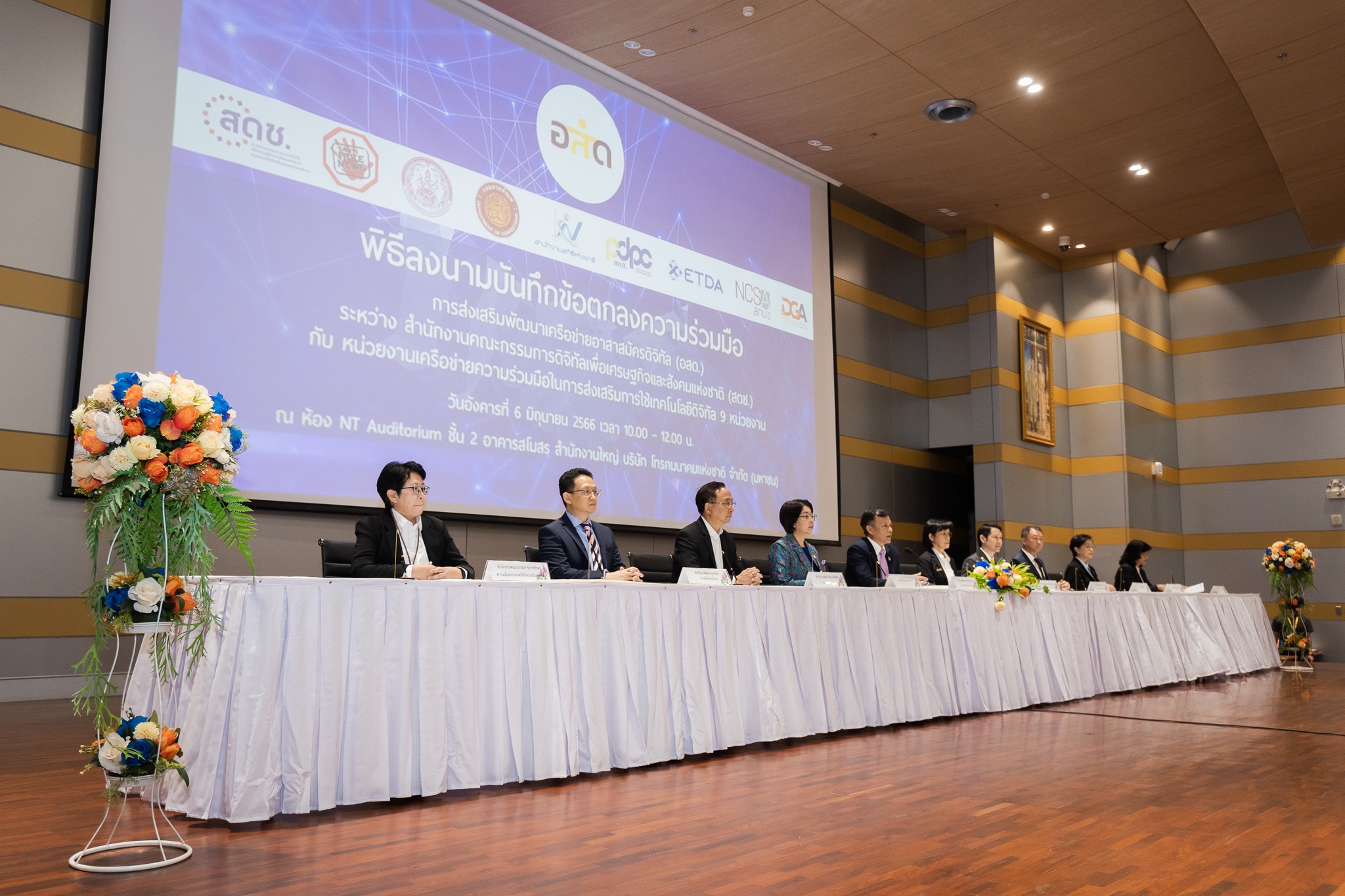 วันนี้ (6 มิถุนายน 2566) นายภุชพงค์ โนดไธสง เลขาธิการคณะกรรมการดิจิทัลเพื่อเศรษฐกิจและสังคมแห่งชาติ ร่วมในพิธีลงนามบันทึกข้อตกลงความร่วมมือ (MOU) การส่งเสริมพัฒนาเครือข่ายอาสาสมัครดิจิทัล (อสด.) ระหว่าง สำนักงานคณะกรรมการดิจิทัลเพื่อเศรษฐกิจและสังคมแห่งชาติ (สดช.) กับหน่วยงานเครือข่ายความร่วมมือในการส่งเสริมการใช้เทคโนโลยีดิจิทัล 9 หน่วยงาน ประกอบด้วย ศูนย์ต่อต้านข่าวปลอม กรมพัฒนาสังคมและสวัสดิการ กรมกิจการเด็กและเยาวชน กรมราชทัณฑ์ สำนักงานสถิติแห่งชาติ สำนักงานคณะกรรมการคุ้มครองข้อมูลส่วนบุคคล สำนักงานพัฒนาธุรกรรมทางอิเล็กทรอนิกส์ สำนักงานคณะกรรมการการรักษาความมั่นคงปลอดภัยไซเบอร์แห่งชาติ และสำนักงานพัฒนารัฐบาลดิจิทัล (องค์การมหาชน) ณ อาคารสโมสร สำนักงานใหญ่ บริษัท โทรคมนาคมแห่งชาติ จำกัด (มหาชน) แจ้งวัฒนะ เขตหลักสี่ กรุงเทพฯ