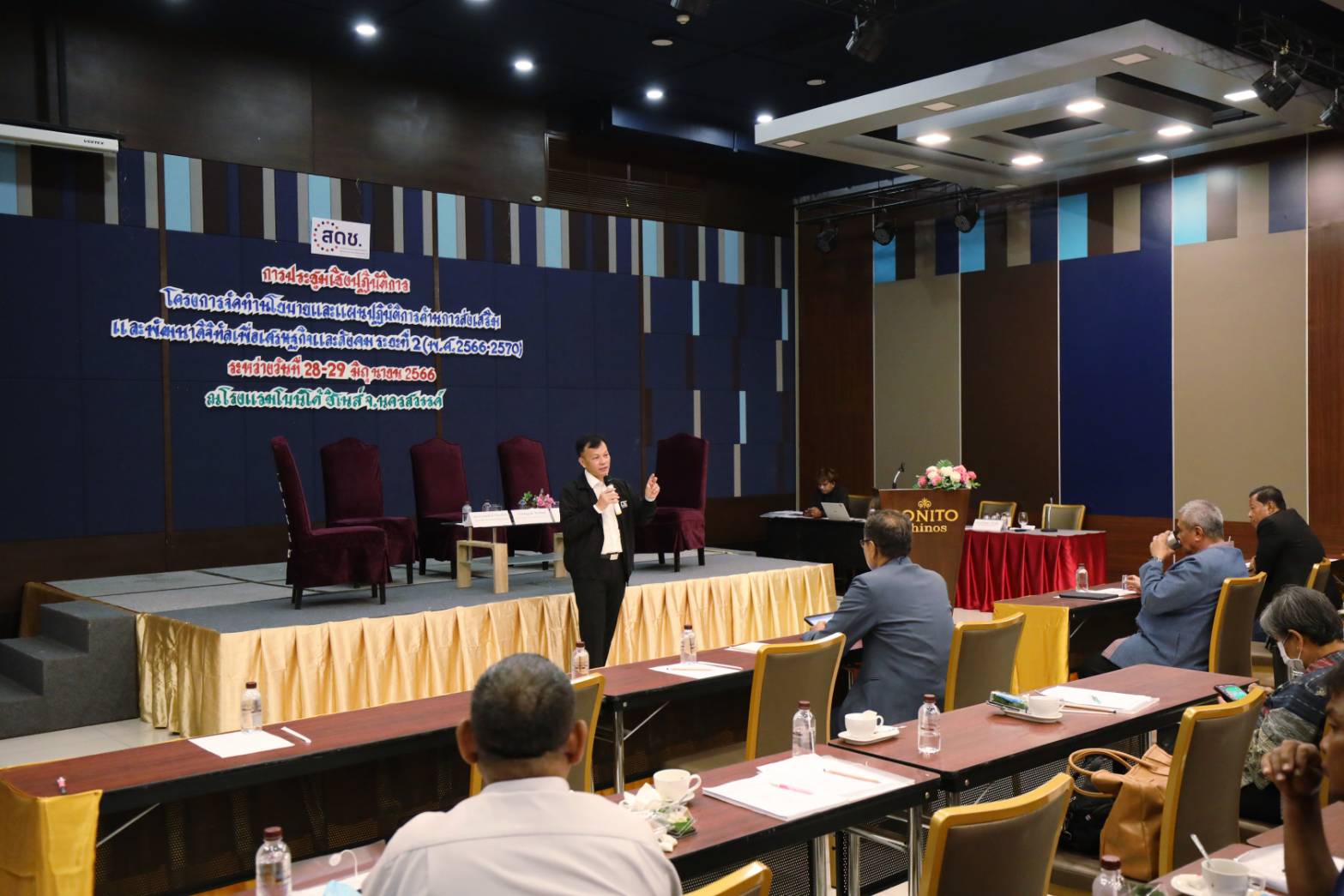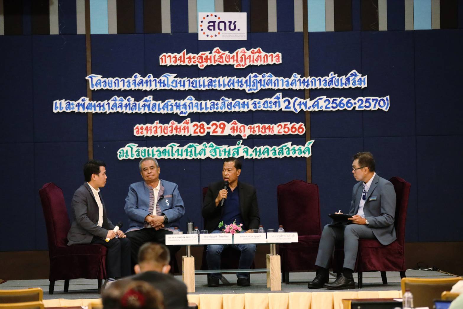 วันนี้ (28 มิถุนายน 2566) นายภุชพงค์ โนดไธสง เลขาธิการคณะกรรมการดิจิทัลเพื่อเศรษฐกิจและสังคมแห่งชาติเป็นประธานการประชุมเชิงปฏิบัติการเพื่อระดมความคิดเห็นในกลุ่มพันธมิตร และผู้มีส่วนได้ส่วนเสีย (ภาครัฐ เอกชน และประชาสังคม) ภายใต้โครงการจัดทำนโยบายและแผนปฏิบัติการด้านการส่งเสริมและพัฒนาดิจิทัลเพื่อเศรษฐกิจและสังคม ระยะที่ 2 (พ.ศ. 2566 - 2570) โดยมีนายสมบูรณ์  เมฆไพบูลย์วัฒนา ผู้เชี่ยวชาญเฉพาะด้านการบริหารเทคโนโลยีดิจิทัลและการสื่อสาร และนายสมเกียรติ ศิริวัฒนโชค ผู้เชี่ยวชาญเฉพาะด้านการบริหารจัดการเชิงนโยบาย สำนักงานคณะกรรมการดิจิทัลเพื่อเศรษฐกิจและสังคมแห่งชาติ เข้าร่วม ณ โรงแรม โบนิโต้ ชิโนส์ จังหวัดนครสวรรค์