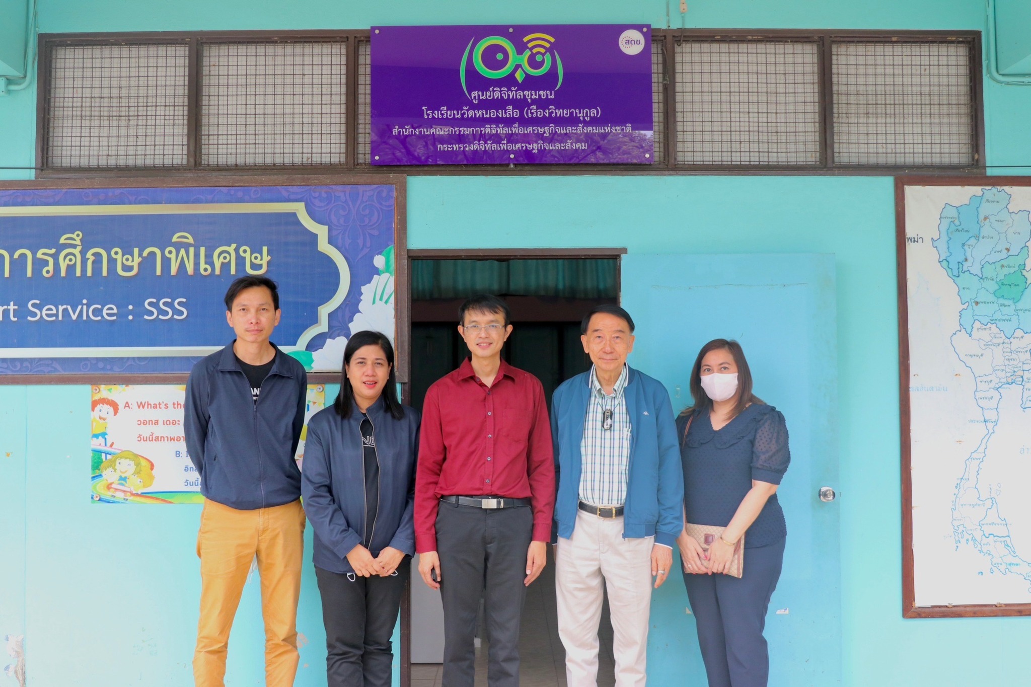 วันนี้ (5 กรกฎาคม 2566) นายสมบูรณ์ เมฆไพบูลย์วัฒนา ผู้เชี่ยวชาญเฉพาะด้านการบริหารเทคโนโลยีดิจิทัลและการสื่อสาร สำนักงานคณะกรรมการดิจิทัลเพื่อเศรษฐกิจและสังคม (สดช.) พร้อมด้วย ข้าราชการ และเจ้าหน้าที่ สดช. ลงพื้นที่ตรวจเยี่ยมและสร้างขวัญกำลังใจให้กับบุคลากรของโรงเรียน รวมถึงเจ้าหน้าที่ศูนย์ดิจิทัลชุมชนโรงเรียนวัดหนองเสือ (เรืองวิทยานุกูล) อ.เมือง จ.นครปฐม