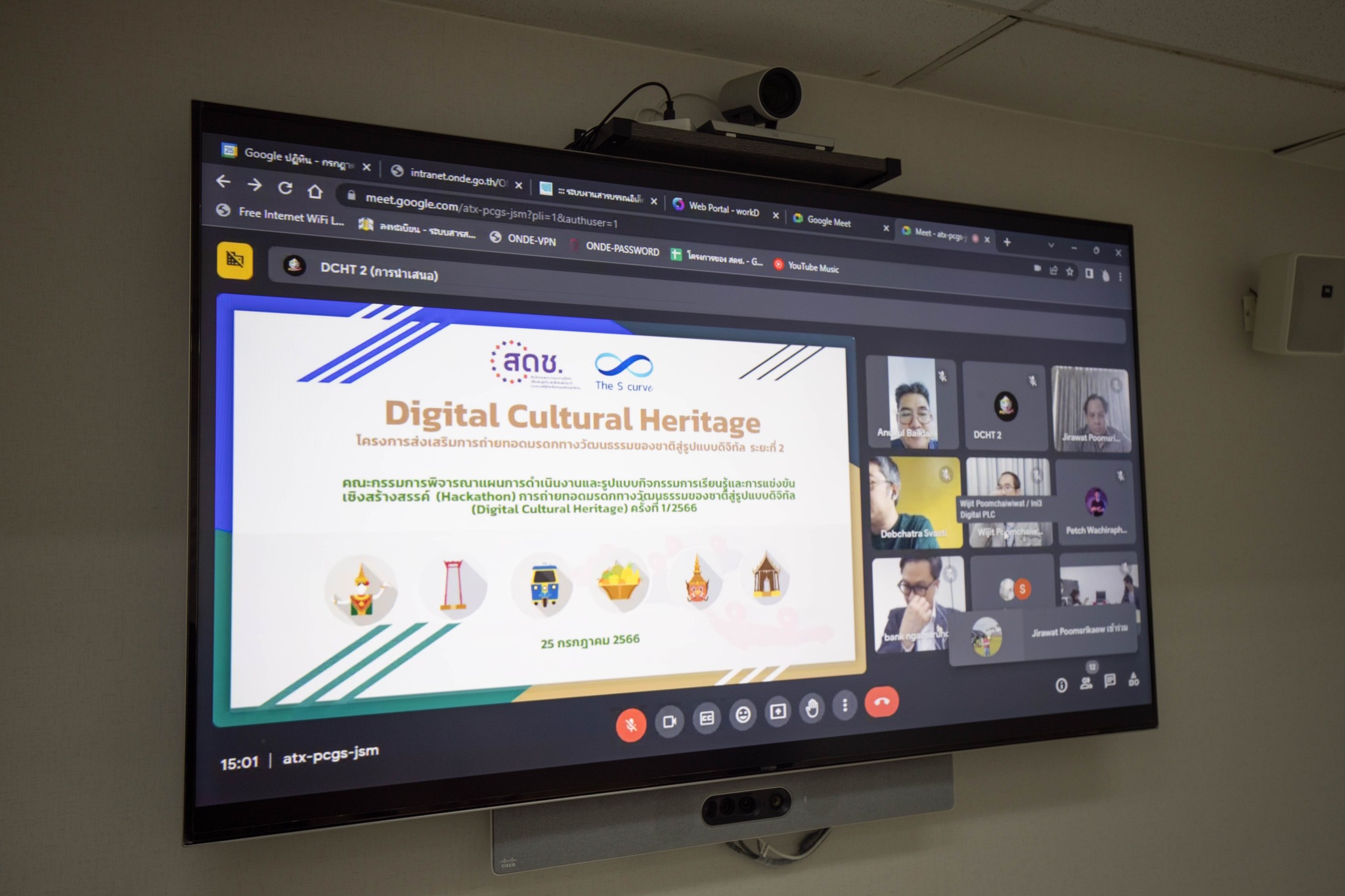 วันนี้ (25 กรกฎาคม 2566) นายภุชพงค์ โนดไธสง เลขาธิการคณะกรรมการดิจิทัลเพื่อเศรษฐกิจและสังคมแห่งชาติ เป็นประธานการประชุมคณะกรรมการพิจาณาแผนการดำเนินงานและรูปแบบกิจกรรมการเรียนรู้และการแข่งขันเชิงสร้างสรรค์ (Hackathon) การถ่ายทอดมรดกทางวัฒนธรรมของชาติสู่รูปแบบดิจิทัล (Digital Cultural Heritage) ครั้งที่ 1/2566 โดยมีนางสาววรรณศิริ พัวศิริ ผู้อำนวยการศูนย์พัฒนานโยบายดิจิทัลเพื่อเศรษฐกิจและสังคม สำนักงานคณะกรรมการดิจิทัลเพื่อเศรษฐกิจและสังคมแห่งชาติ (สดช.) เข้าร่วม ณ ห้องประชุม ONDE-3 ชั้น 9