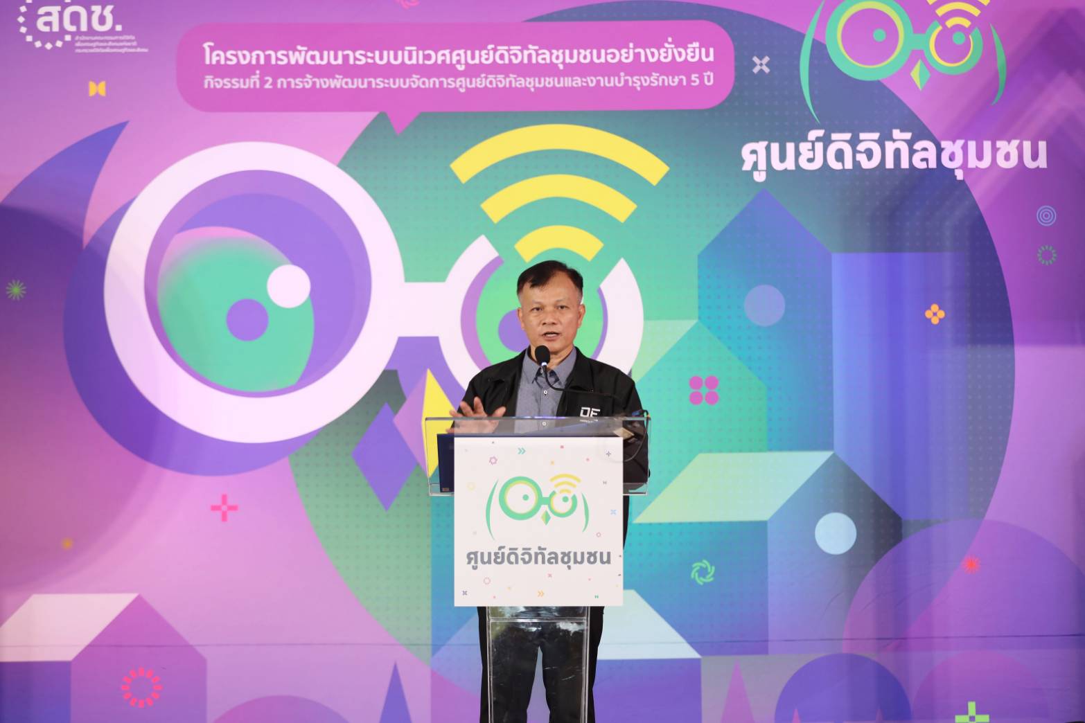 นายภุชพงค์ โนดไธสง เลขาธิการคณะกรรมการดิจิทัลเพื่อเศรษฐกิจและสังคมแห่งชาติ กล่าวว่า โครงการศูนย์ดิจิทัลชุมชนเป็นโครงการตามนโยบายและแผนระดับชาติว่าด้วยการพัฒนาดิจิทัลเพื่อเศรษฐกิจและสังคม (พ.ศ.2561-2580) หรือ ไทยแลนด์ 4.0 ของรัฐบาล ตามยุทธศาสตร์การสร้างสังคมคุณภาพด้วยเทคโนโลยีดิจิทัล ภายใต้แนวคิดมุ่งสร้างให้ประชาชนทุกกลุ่มสามารถเข้าถึง และได้รับประโยชน์จากเทคโนโลยีดิจิทัลอย่างเท่าเทียม โดยโครงการศูนย์ดิจิทัลชุมชนได้นำเทคโนโลยีเข้ามาใช้ในการขับเคลื่อนเศรษฐกิจและสังคมเพื่อสร้างเศรษฐกิจของชุมชนให้มีความแข็งแกร่ง โดยรัฐบาลได้ลงทุนพัฒนาโครงสร้างพื้นฐานดิจิทัลให้มีประสิทธิภาพสูงครอบคลุมพื้นที่ทั่วประเทศ เพื่อให้ทุกคนในชุมชนได้ประโยชน์จากการใช้เทคโนโลยีดิจิทัลอย่างแท้จริง ด้วยการจัดตั้งศูนย์ดิจิทัลชุมชนในสถานที่ต่างๆ อาทิ วัด มัสยิด โรงเรียน สถานที่ราชการในท้องถิ่น และชุมชนที่เหมาะสม กระจายครอบคลุม 77 จังหวัดทั่วประเทศ โดยดำเนินการเสร็จสิ้นแล้วจำนวน 500 แห่ง และในปี 2566 นี้ได้ดำเนินการจัดตั้งศูนย์ดิจิทัลชุมชนอีก 1,722 แห่ง รวมแล้วจะมีศูนย์ดิจิทัลชุมชนมากกว่า 2,000 แห่ง กระจายให้บริการแก่ประชาชนในชุมชนทั่วประเทศ