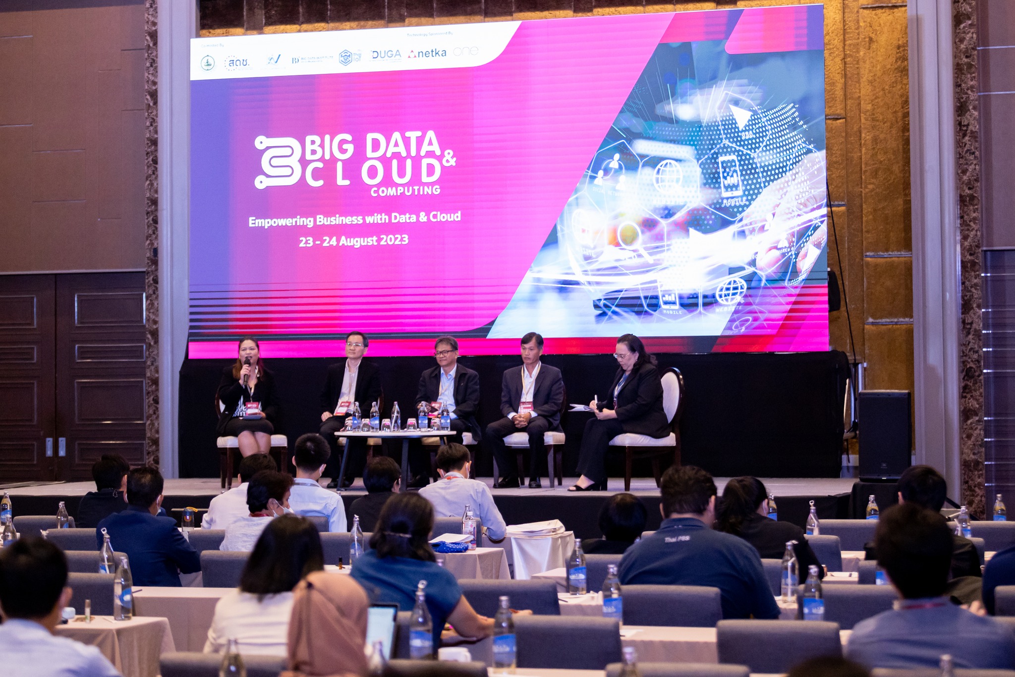 งาน Big Data & Cloud Computing ครั้งที่ 5 จัดขึ้นระหว่างวันที่ 23 – 24 สิงหาคม 2566 เพื่อส่งเสริมให้ทุกภาคส่วนของประเทศไทย ทั้งภาครัฐและเอกชน เกิดความตระหนักในเรื่องคุณค่า และมูลค่าของข้อมูล Big Data & Cloud Computing ช่วยสร้างเครื่องมือในระดับชาติให้เกิดขีดความสามารถใหม่ๆ แลกเปลี่ยนเรียนรู้ถึงเทคโนโลยีที่มีส่วนสำคัญในการผลักดันให้เกิดกระบวนการค้นคว้าและนวัตกรรม นำไปสู่การวิจัยในสาขาใหม่ๆ ส่งเสริมให้เกิดการเติบโตทางเศรษฐกิจใหม่ที่ต้องขับเคลื่อนด้วยข้อมูล จนนำไปสู่การสร้าง และออกแบบนวัตกรรมการให้บริการใหม่ๆ ได้อย่างยั่งยืน