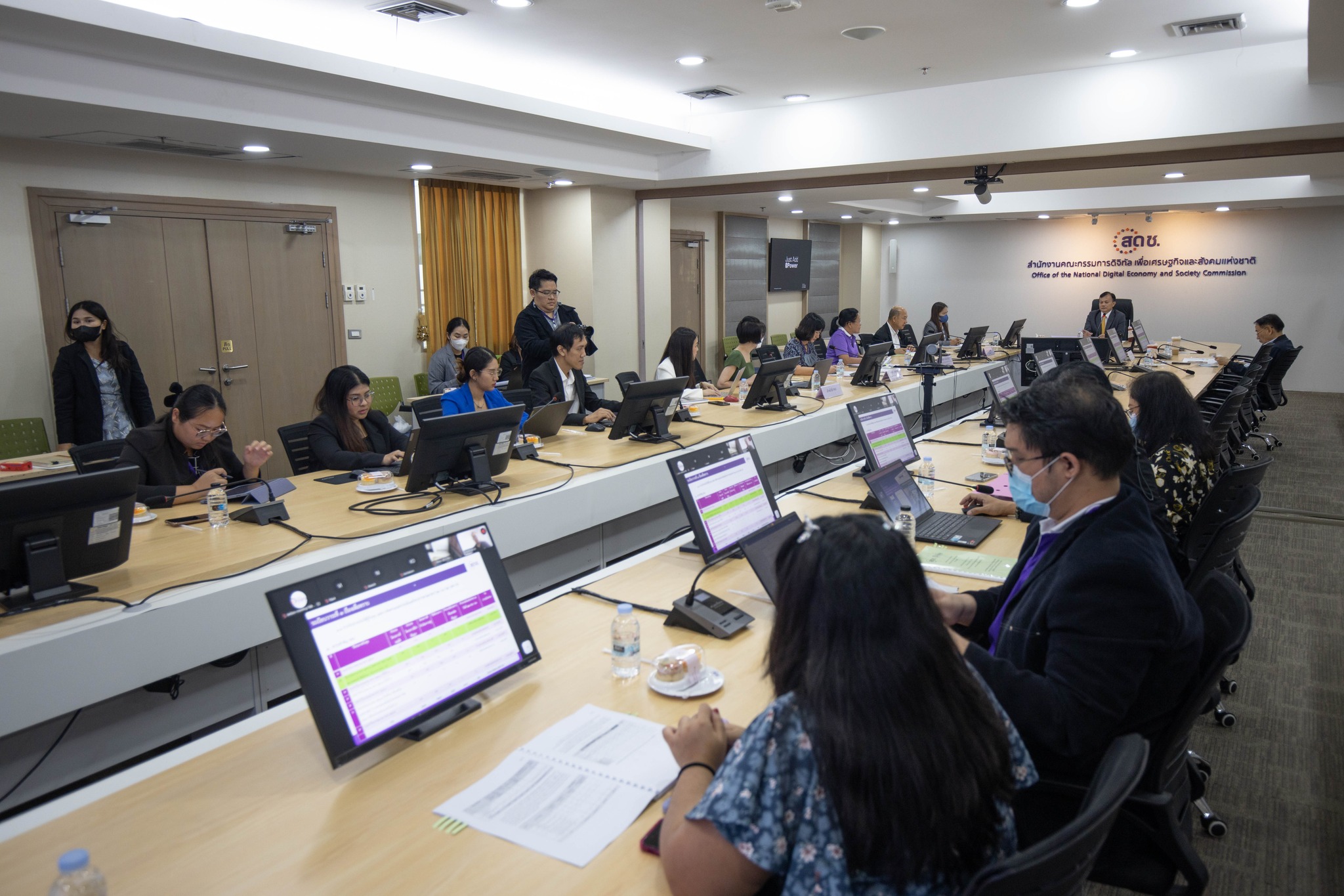 วันนี้ (25 สิงหาคม 2566) นายภุชพงค์ โนดไธสง เลขาธิการคณะกรรมการดิจิทัลเพื่อเศรษฐกิจและสังคมแห่งชาติ เป็นประธานการประชุมคณะอนุกรรมการติดตามประเมินผล ครั้งที่ 5/2566 โดยมี นายสมบูรณ์ เมฆไพบูลย์วัฒนา ผู้เชี่ยวชาญเฉพาะด้านการบริหารเทคโนโลยีและการสื่อสาร และนางสุรีพร พรโสภณวิชญ์ ผู้อำนวยการกองบริหารกองทุนพัฒนาดิจิทัล เพื่อเศรษฐกิจและสังคม สำนักงานคณะกรรมการดิจิทัลเพื่อเศรษฐกิจและสังคมแห่งชาติ เข้าร่วม ณ ห้อง ONDE-1 ชั้น 9 สำนักงานคณะกรรมการดิจิทัลเพื่อเศรษฐกิจและสังคมแห่งชาติ โดยการประชุมครั้งนี้ เพื่อพิจารณาขอแก้ไขสัญญา การส่งเสริม สนับสนุน ความช่วยเหลือ และรับทุนอุดหนุน การวิจัยและพัฒนาจากกองทุนพัฒนาดิจิทัลเพื่อเศรษฐกิจและสังคม ประจำปีงบประมาณ พ.ศ. 2565 พร้อมรับทราบการเบิกจ่ายเงินให้ผู้รับทุน และติดตามและประเมินผลโครงการ