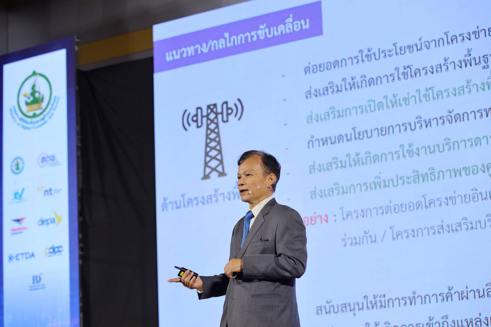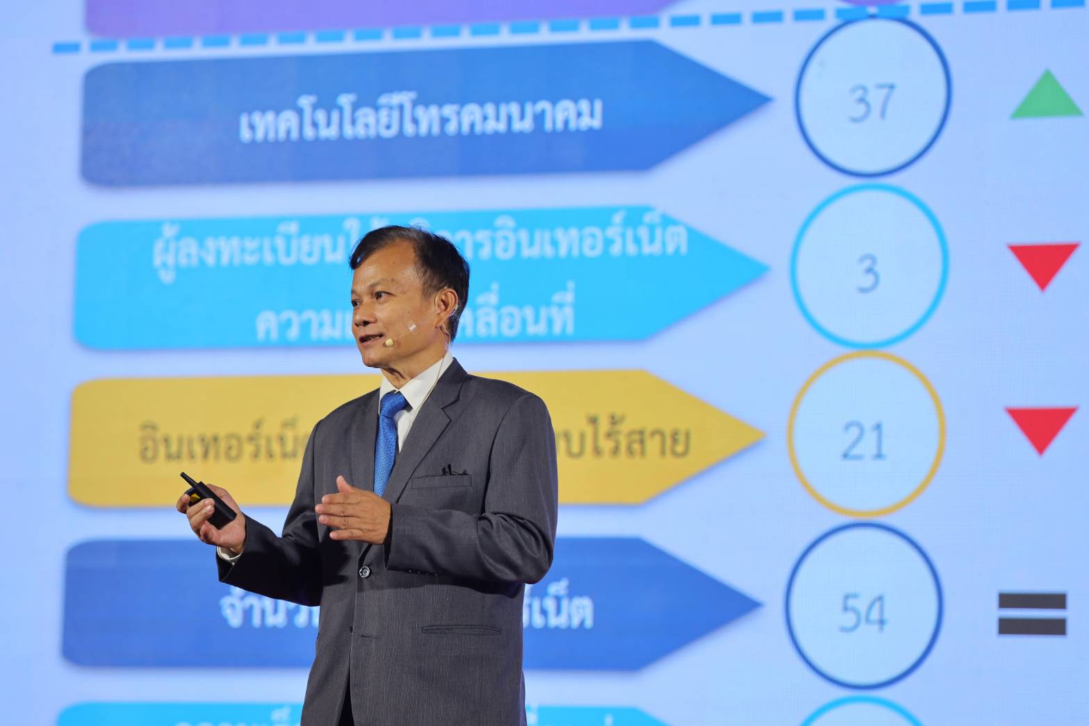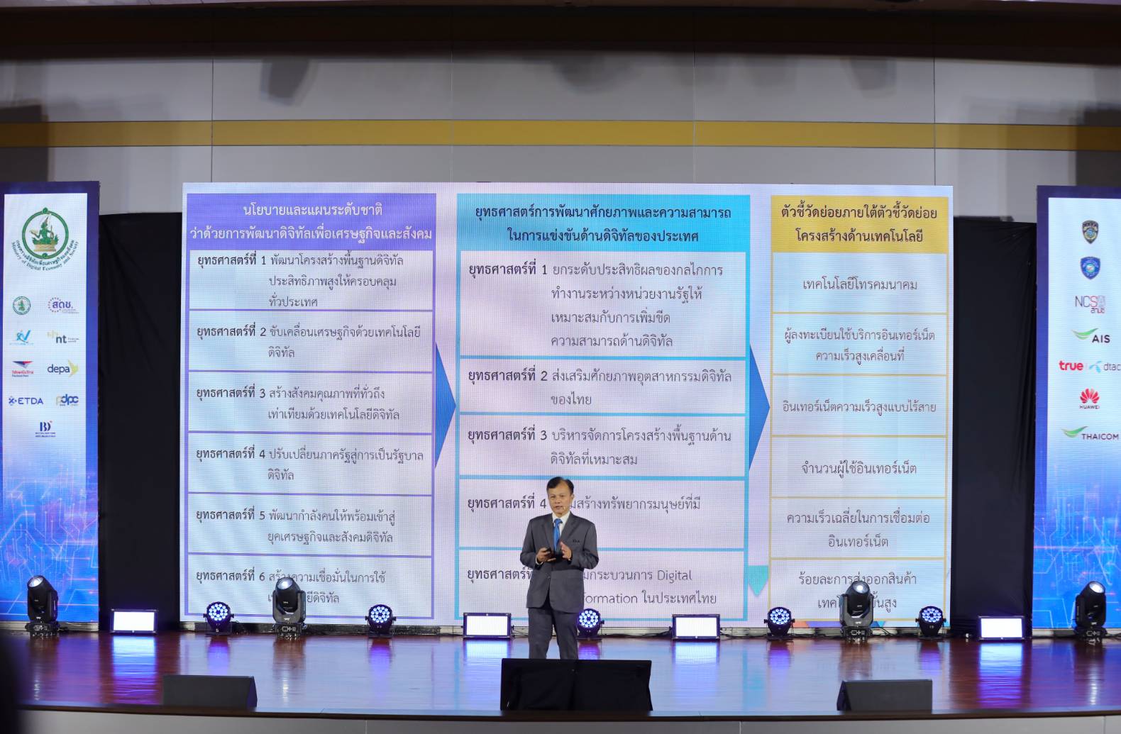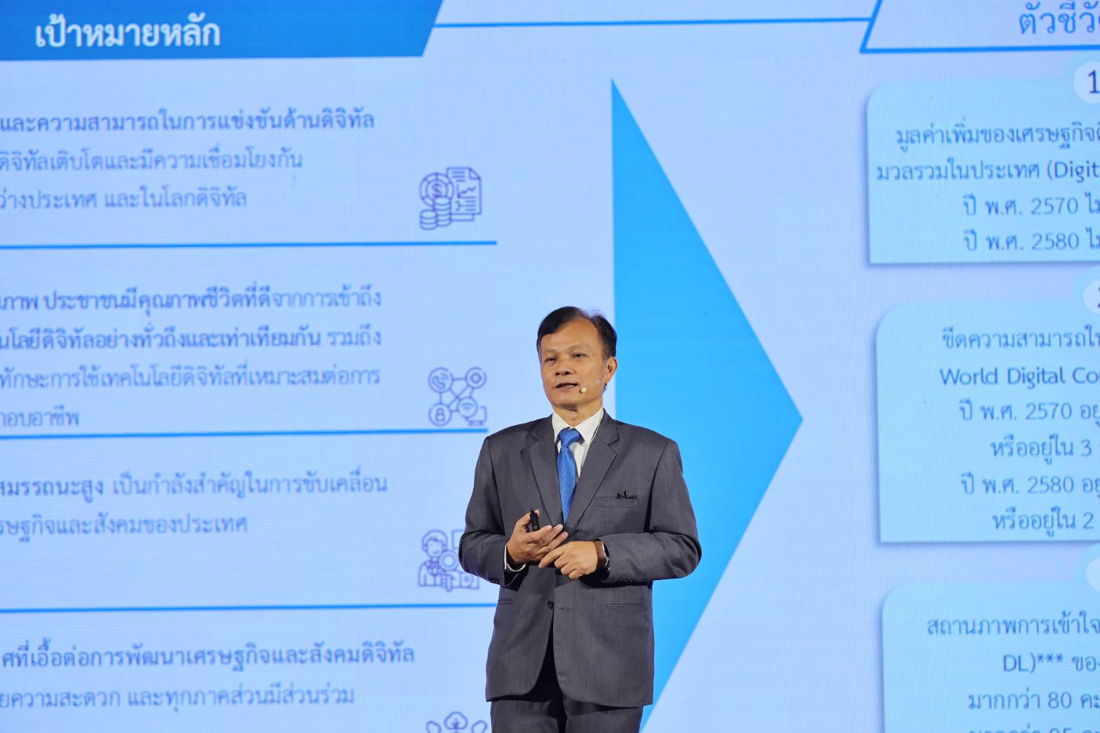 วันนี้ (14 กันยายน 2566) นายภุชพงค์ โนดไธสง เลขาธิการคณะกรรมการดิจิทัลเพื่อเศรษฐกิจและสังคมแห่งชาติ บรรยายพิเศษในหัวข้อ “กลไกการยกระดับอันดับความสามารถในการแข่งขันด้าน Digital ของไทย” ภายในงานโครงการสัมมนาการขับเคลื่อนขีดความสามารถในการแข่งขันด้านดิจิทัลของประเทศไทย เนื่องในโอกาสวันสถาปนากระทรวงดิจิทัลเพื่อเศรษฐกิจและสังคม ประจำปี 2566 ณ ห้อง Auditorium ชั้น 2 อาคารสโมสร บริษัท โทรคมนาคมแห่งชาติ จำกัด (มหาชน) โดยกล่าวถึงสถานะอันดับขีดความสามารถในการแข่งขันด้านดิจิทัลของประเทศไทย ผลการจัดอันดับตัวชี้วัดด้านเทคโนโลยี และผลการจัดอันดับตัวชี้วัดย่อย ภายใต้ปัจจัยโครงสร้างด้านเทคโนโลยี รวมถึงแนวทางและกลไกการขับเคลื่อนเทคโนโลยีดิจิทัลด้านต่างๆ ได้แก่ โครงสร้างพื้นฐาน เศรษฐกิจ รัฐบาลดิจิทัล การพัฒนากำลังคน และการสร้างความเชื่อมั่นโดยการพัฒนาระบบนิเวศโครงสร้างเทคโนโลยี