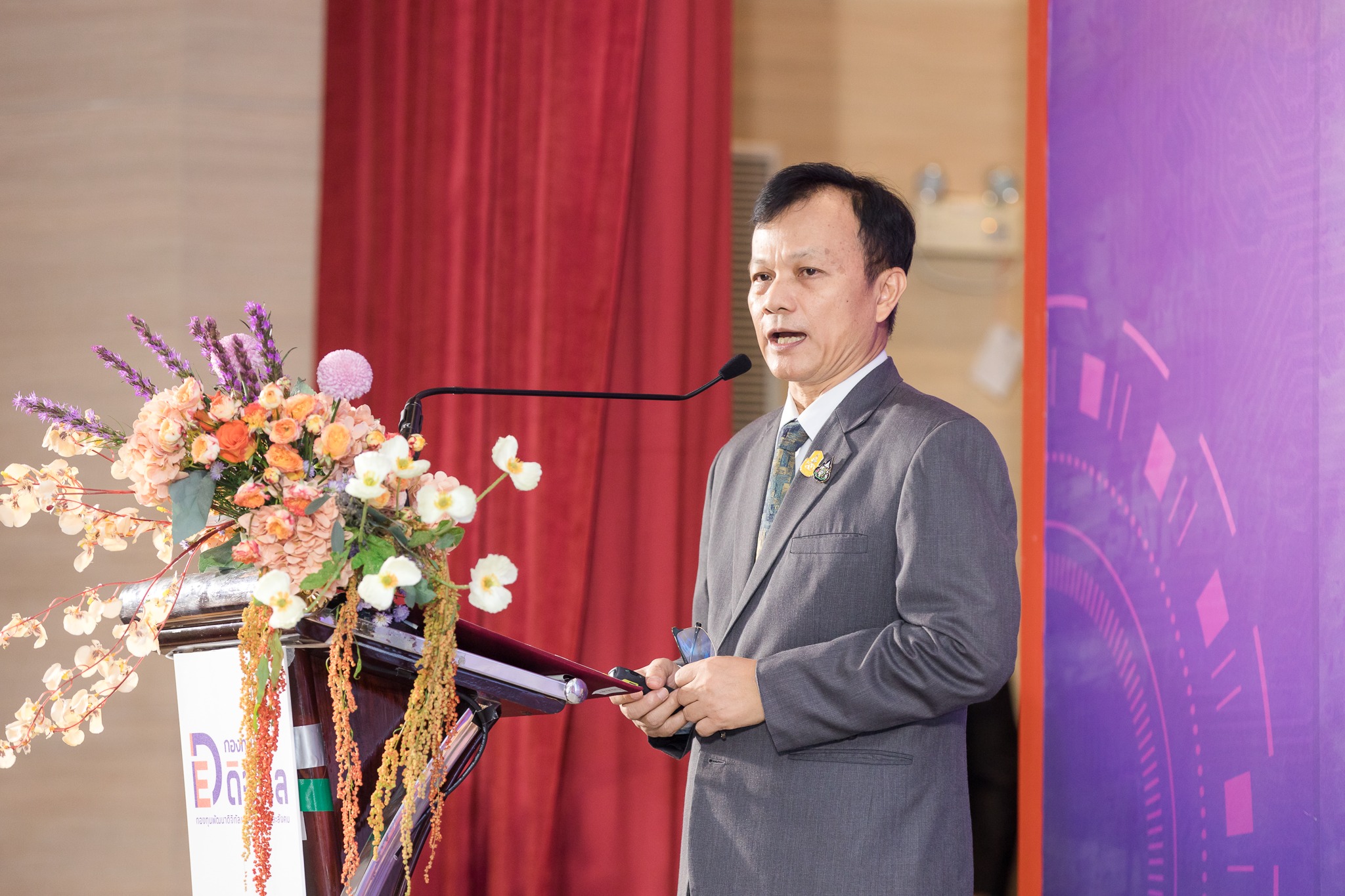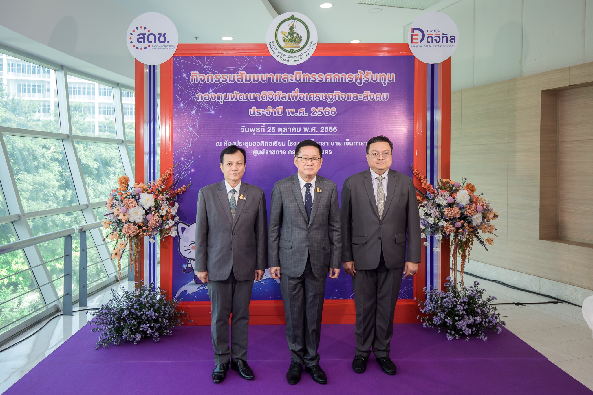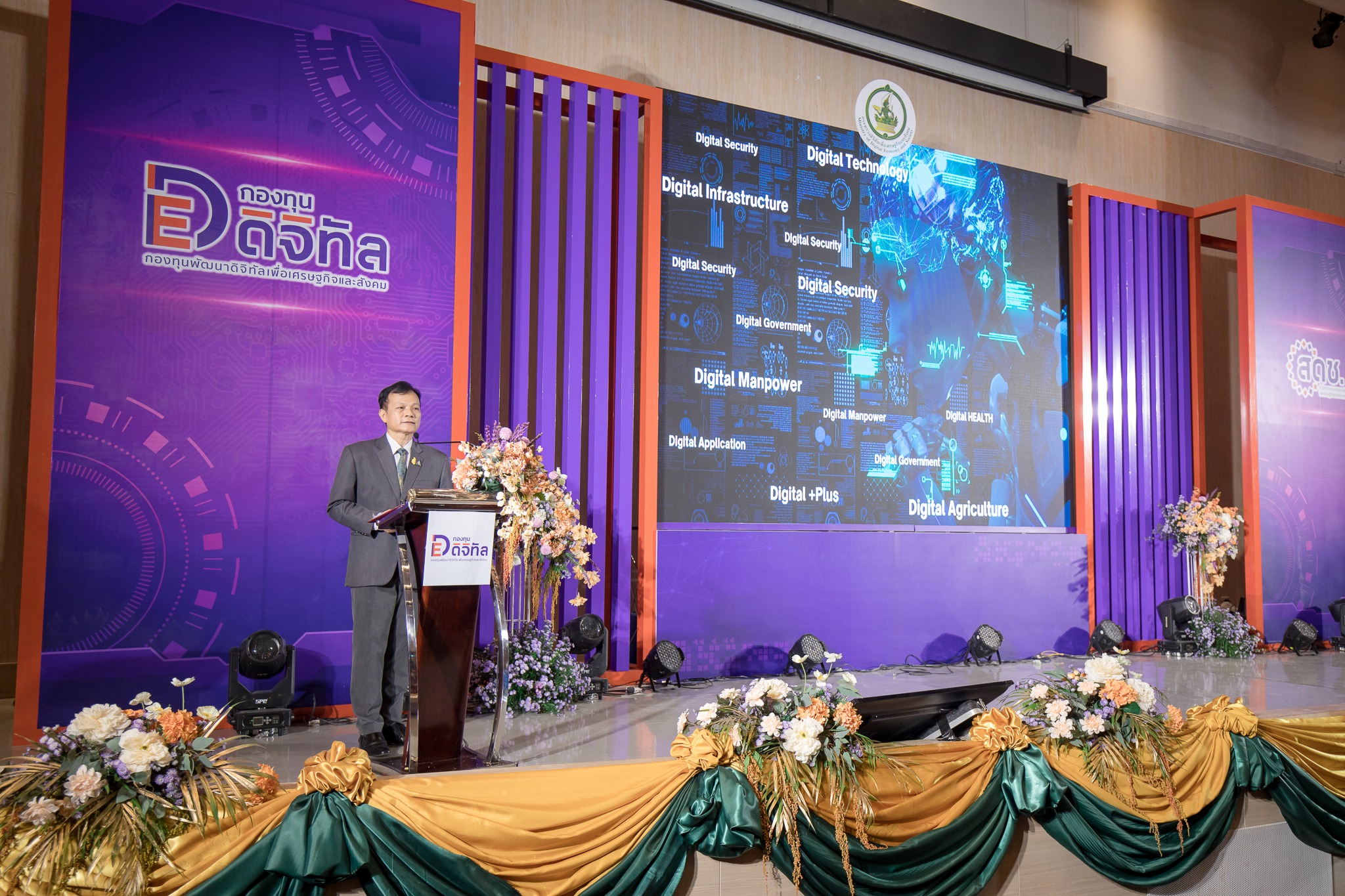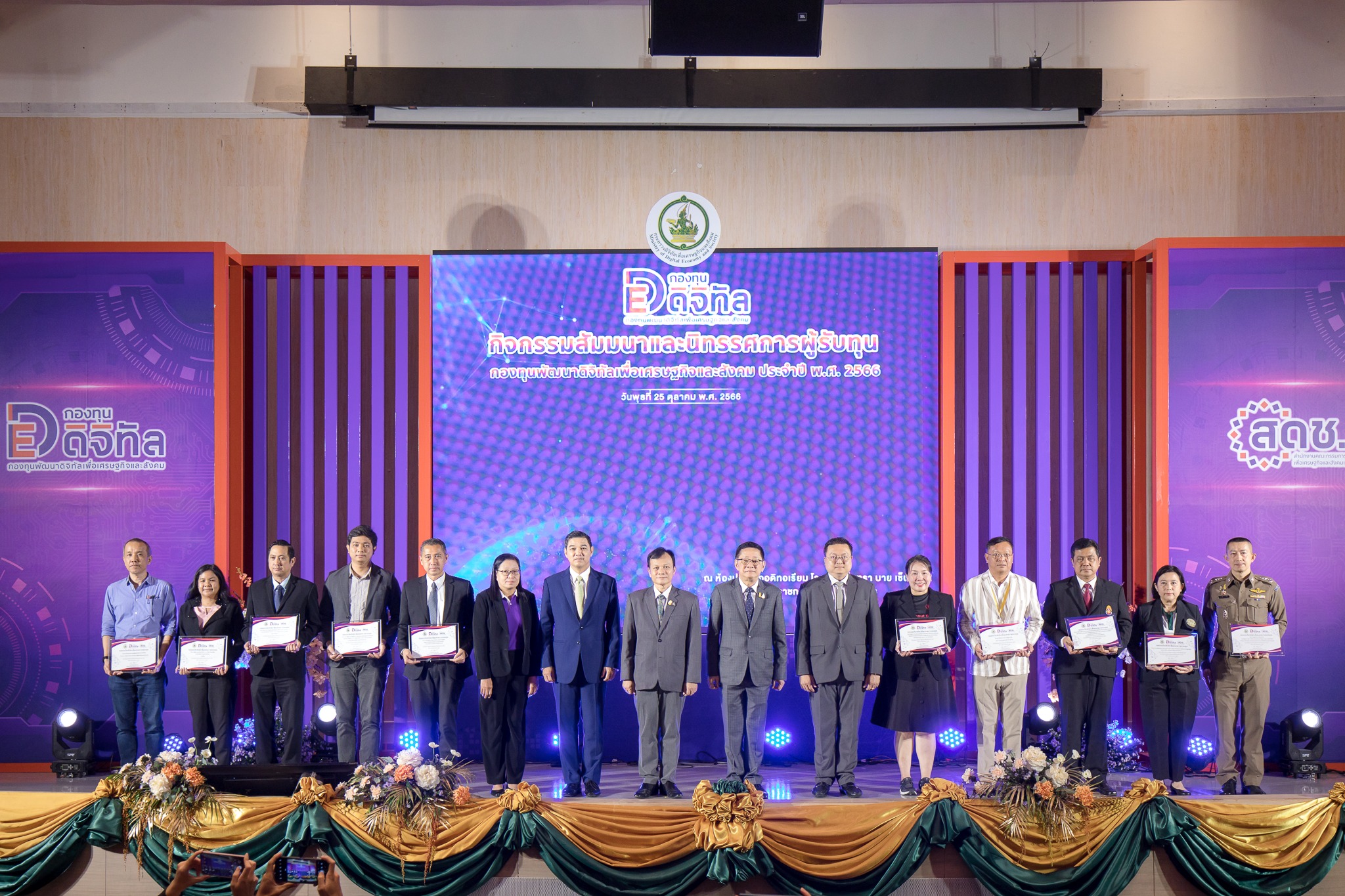 วันนี้ (25 ตุลาคม 2566) นายประเสริฐ จันทรรวงทอง รัฐมนตรีว่าการกระทรวงดิจิทัลเพื่อเศรษฐกิจและสังคม เป็นประธานเปิดกิจกรรมสัมมนาและนิทรรศการผู้รับทุนกองทุนพัฒนาดิจิทัลเพื่อเศรษฐกิจและสังคม ประจำปี พ.ศ. 2566 (กองทุนดีอี) โดยมีนายวัลลภ รุจิรากร เลขานุการรัฐมนตรีว่าการกระทรวงดิจิทัลเพื่อเศรษฐกิจและสังคม ร่วมเป็นเกียรติในงาน พร้อมด้วยนายภุชพงค์ โนดไธสง เลขาธิการคณะกรรมการดิจิทัลเพื่อเศรษฐกิจและสังคมแห่งชาติ กล่าวรายงานและแถลงผลการดำเนินงานในภาพรวมของการให้ทุนสนับสนุนจากกองทุนฯ ตลอดจนผู้บริหารสำนักงานคณะกรรมการดิจิทัลเพื่อเศรษฐกิจและสังคมแห่งชาติ เข้าร่วม ณ โรงแรมเซ็นทรา