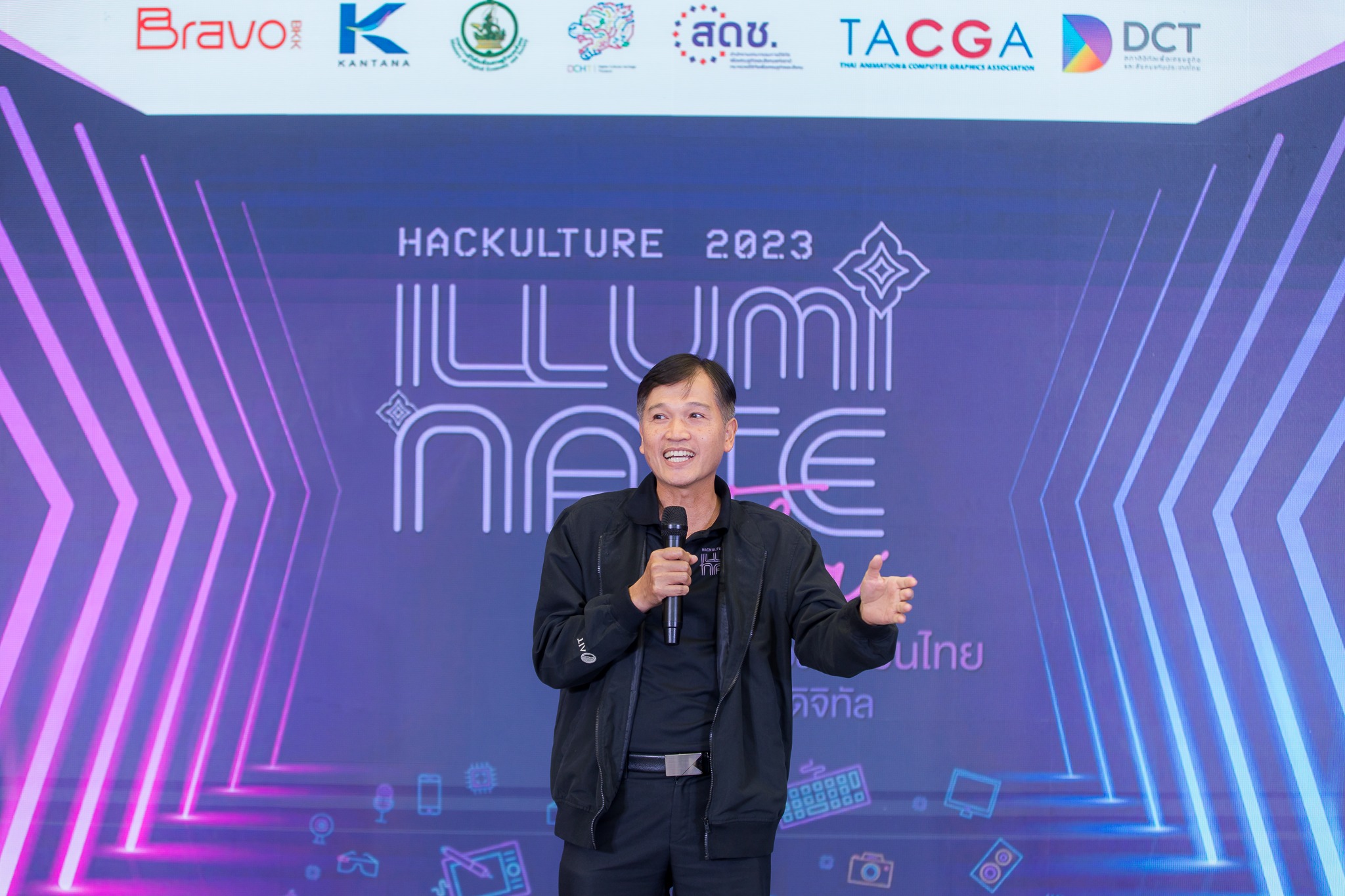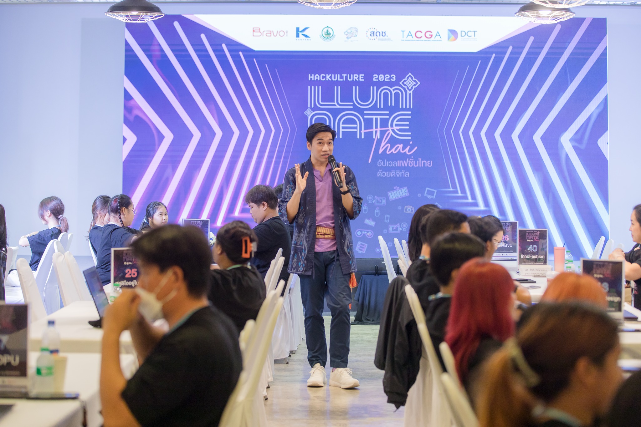 วันนี้ (27 ตุลาคม 2566) นายธีรวุฒิ ธงภักดิ์ รองเลขาธิการคณะกรรมการดิจิทัลเพื่อเศรษฐกิจและสังคมแห่งชาติ เป็นประธานเปิดกิจกรรมการเรียนรู้และแข่งขันเชิงสร้างสรรค์ (Hackathon) “Hackulture 2023 : illuminate Thai อัปเวลแฟชั่นไทย...ด้วยดิจิทัล” ปีที่ 2 โดยจัดกิจกรรม Boot Camp ภายใต้โครงการส่งเสริมการถ่ายทอดมรดกทางวัฒนธรรมของชาติสู่รูปแบบดิจิทัล (Digital Cultural Heritage) ซึ่งมีนายสมบูรณ์ เมฆไพบูลย์วัฒนา ผู้เชี่ยวชาญเฉพาะด้านการบริหารเทคโนโลยีดิจิทัลและการสื่อสาร และนายสมเกียรติ ศิริวัฒนโชค ผู้เชี่ยวชาญเฉพาะด้านการบริหารจัดการเชิงนโยบาย พร้อมด้วยผู้บริหารสำนักงานคณะกรรมการดิจิทัลเพื่อเศรษฐกิจและสังคมแห่งชาติ เข้าร่วม ณ Bravo BKK (Show DC เดิม) ชั้น 3 เขตห้วยขวาง กรุงเทพฯ