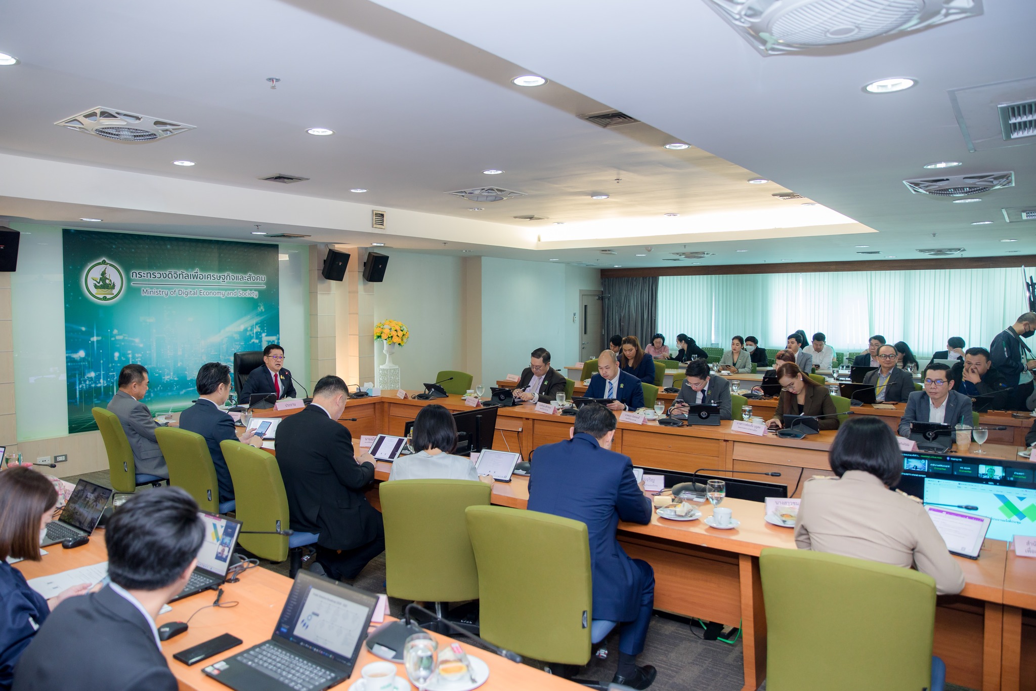 วันนี้ ( 10 มกราคม 2567) นายประเสริฐ จันทรรวงทอง รัฐมนตรีว่าการกระทรวงดิจิทัลเพื่อเศรษฐกิจและสังคม เป็นประธานการประชุมผู้บริหารกระทรวงดิจิทัลฯ และหัวหน้าหน่วยงานในสังกัด (Top Executives) ครั้งที่ 1/2567 โดยมีศาสตราจารย์พิเศษวิศิษฏ์ วิศิษฏ์สรอรรถ ปลัดกระทรวงดิจิทัลพื่อเศรษฐกิจและสังคม พร้อมด้วยนายภุชพงค์ โนดไธสง เลขาธิการคณะกรรมการดิจิทัลเพื่อเศรษฐกิจและสังคมแห่งชาติ และนายธีรวุฒิ ธงภักดิ์ รองเลขาธิการคณะกรรมการดิจิทัลเพื่อเศรษฐกิจและสังคมแห่งชาติ ตลอดจนผู้บริหารหน่วยงานในสังกัดกระทรวงดิจิทัลเพื่อเศรษฐกิจและสังคม เข้าร่วม ณ ห้องประชุม MDES 1 ชั้น 9 สำนักงานปลัดกระทรวงดิจิทัลเพื่อเศรษฐกิจและสังคม กรุงเทพฯ