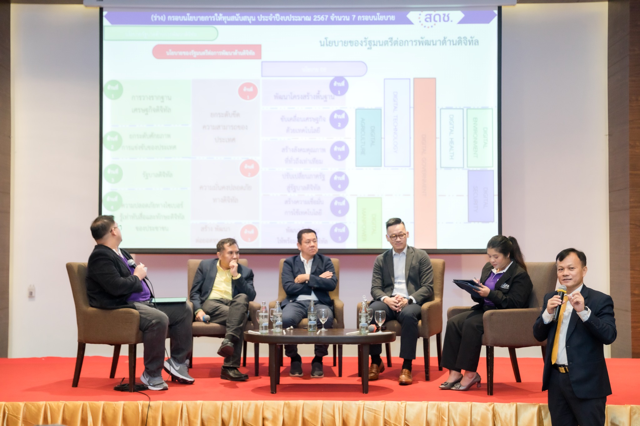 นายภุชพงค์ โนดไธสง เลขาธิการคณะกรรมการดิจิทัลเพื่อเศรษฐกิจและสังคมแห่งชาติ กล่าวว่า สดช. มีภารกิจสำคัญในการจัดทำนโยบายและแผนระดับชาติว่าด้วยการพัฒนาดิจิทัลเพื่อเศรษฐกิจและสังคม เพื่อให้บรรลุเป้าหมาย 4 ประการ ประกอบด้วย 1) ประเทศไทยมีศักยภาพและความสามารถในการแข่งขันด้านดิจิทัลในระดับโลก เศรษฐกิจดิจิทัลเติบโตและมีความเชื่อมโยงกันทั้งภายในประเทศ ระหว่างประเทศ และในโลกดิจิทัล 2) ประเทศไทยเป็นสังคมคุณภาพ ประชาชนมีคุณภาพชีวิตที่ดีจากการเข้าถึงและใช้ประโยชน์จากเทคโนโลยีดิจิทัลอย่างทั่วถึงและเท่าเทียมกัน รวมถึงมีความรู้ ความเข้าใจ และทักษะการใช้เทคโนโลยีดิจิทัลที่เหมาะสมต่อการดำเนินชีวิต และการประกอบอาชีพ 3) ประเทศไทยมีกำลังคนสมรรถนะสูง เป็นกำลังสำคัญในการขับเคลื่อนการพัฒนาดิจิทัลเพื่อเศรษฐกิจและสังคมของประเทศ และ 4) ประเทศไทยมีระบบนิเวศที่เอื้อต่อการพัฒนาเศรษฐกิจและสังคมดิจิทัล โดยมีภาครัฐเป็นผู้อำนวยความสะดวกและการมีส่วนร่วมของทุกภาคส่วน ซึ่งนโยบายและแผนฯ ดังกล่าว สามารถใช้เป็นกรอบแนวทางในการจัดสรรทุนต่าง ๆ ของกองทุนฯ ให้มีประสิทธิภาพยิ่งขึ้น