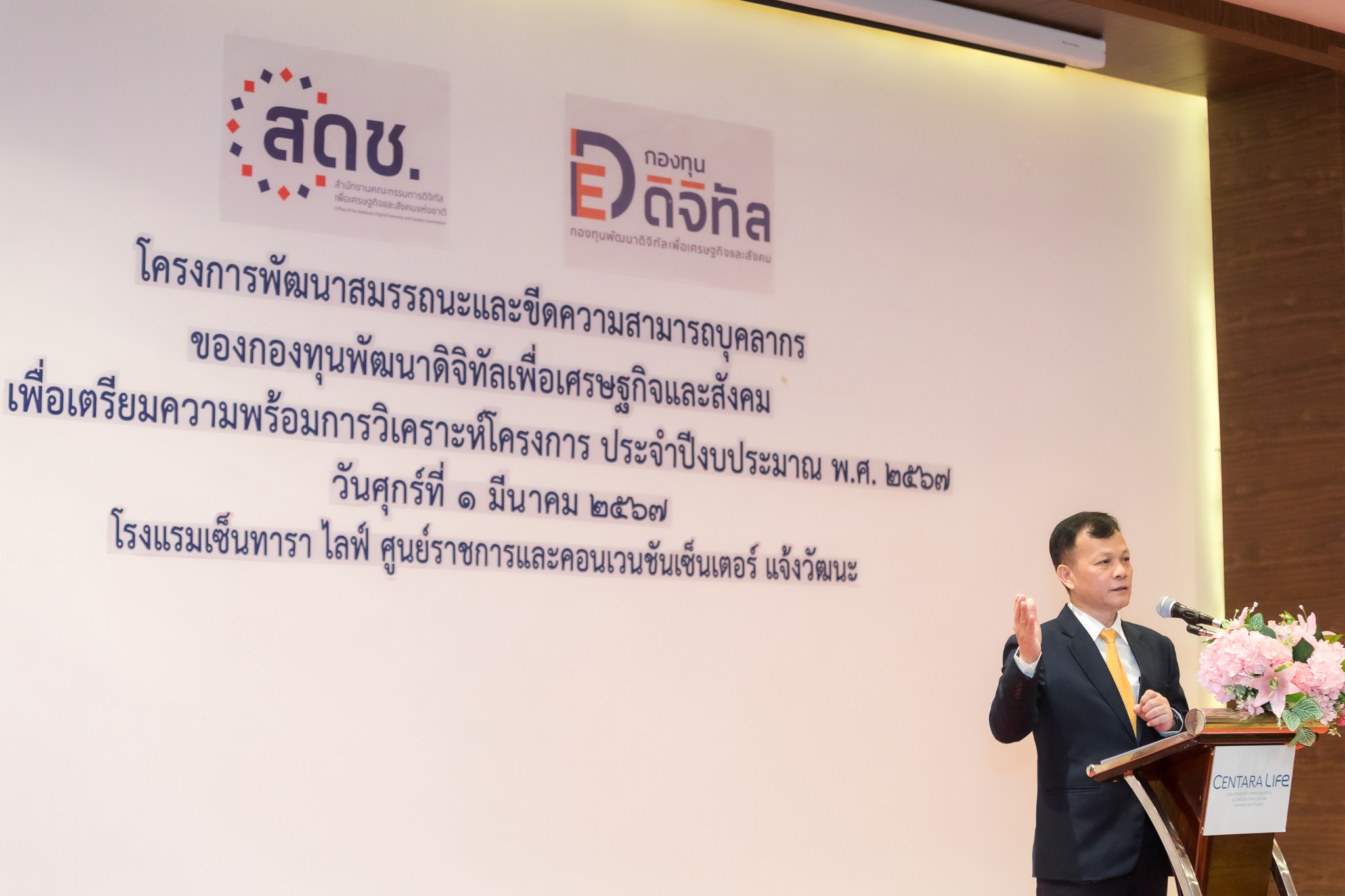 วันนี้ (1 มีนาคม 2567) นายภุชพงค์ โนดไธสง เลขาธิการคณะกรรมการดิจิทัลเพื่อเศรษฐกิจและสังคมแห่งชาติ เป็นประธานเปิดการอบรมโครงการพัฒนาสมรรถนะและขีดความสามารถบุคลากรของกองทุนพัฒนาดิจิทัลเพื่อเศรษฐกิจและสังคม (กองทุนดีอี) เพื่อเตรียมความพร้อมการวิเคราะห์โครงการ ประจำปีงบประมาณ พ.ศ. 2567 โดยมีนายสมเกียรติ ศิริวัฒนโชค ผู้เชี่ยวชาญเฉพาะด้านการบริหารจัดการเชิงนโยบาย นายวิริยะ มงคลวีราพันธ์ ที่ปรึกษาเลขาธิการคณะกรรมการดิจิทัลเพื่อเศรษฐกิจและสังคมแห่งชาติ พร้อมด้วยนางสาววรรณศิริ พัวศิริ ผู้อำนวยการกองบริหารกองทุนพัฒนาดิจิทัลเพื่อเศรษฐกิจและสังคม ตลอดจนคณะอนุกรรมการกลั่นกรองพิจารณาโครงการ และบุคลากรของกองบริหารกองทุนพัฒนาดิจิทัลเพื่อเศรษฐกิจและสังคม เข้าร่วม ณ โรงแรม เซ็นทารา ไลฟ์ ศูนย์ราชการ และคอนเวนชันเซ็นเตอร์ กรุงเทพฯ