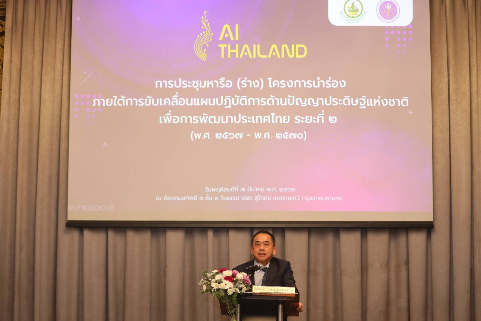 วันนี้ (7 มีนาคม 2567) ศาสตราจารย์พิเศษวิศิษฏ์ วิศิษฏ์สรอรรถ ปลัดกระทรวงดิจิทัลเพื่อเศรษฐกิจและสังคม และนายเพิ่มสุข สัจจาภิวัฒน์ ปลัดกระทรวงการอุดมศึกษา วิทยาศาสตร์ วิจัยและนวัตกรรม เป็นประธานร่วมในการประชุมหารือ (ร่าง) โครงการนำร่องภายใต้การขับเคลื่อนแผนปฏิบัติการด้านปัญญาประดิษฐ์แห่งชาติ เพื่อการพัฒนาประเทศไทย ระยะที่ 2 (พ.ศ. 2567 - พ.ศ. 2570) โดยมีนายภุชพงค์ โนดไธสง เลขาธิการคณะกรรมการดิจิทัลเพื่อเศรษฐกิจและสังคมแห่งชาติ พร้อมด้วยนายชัย วุฒิวิวัฒน์ชัย ผู้อำนวยการศูนย์เทคโนโลยีอิเล็กทรอนิกส์และคอมพิวเตอร์แห่งชาติ และ นางสุรีพร พรโสภณวิชญ์ ผู้อำนวยการกองโครงสร้างพื้นฐานเทคโนโลยีดิจิทัล สำนักงานคณะกรรมการดิจิทัลเพื่อเศรษฐกิจและสังคมแห่งชาติ (สดช.) เข้าร่วมการประชุม ณ โรงแรมเดอะสุโกศล กรุงเทพฯ