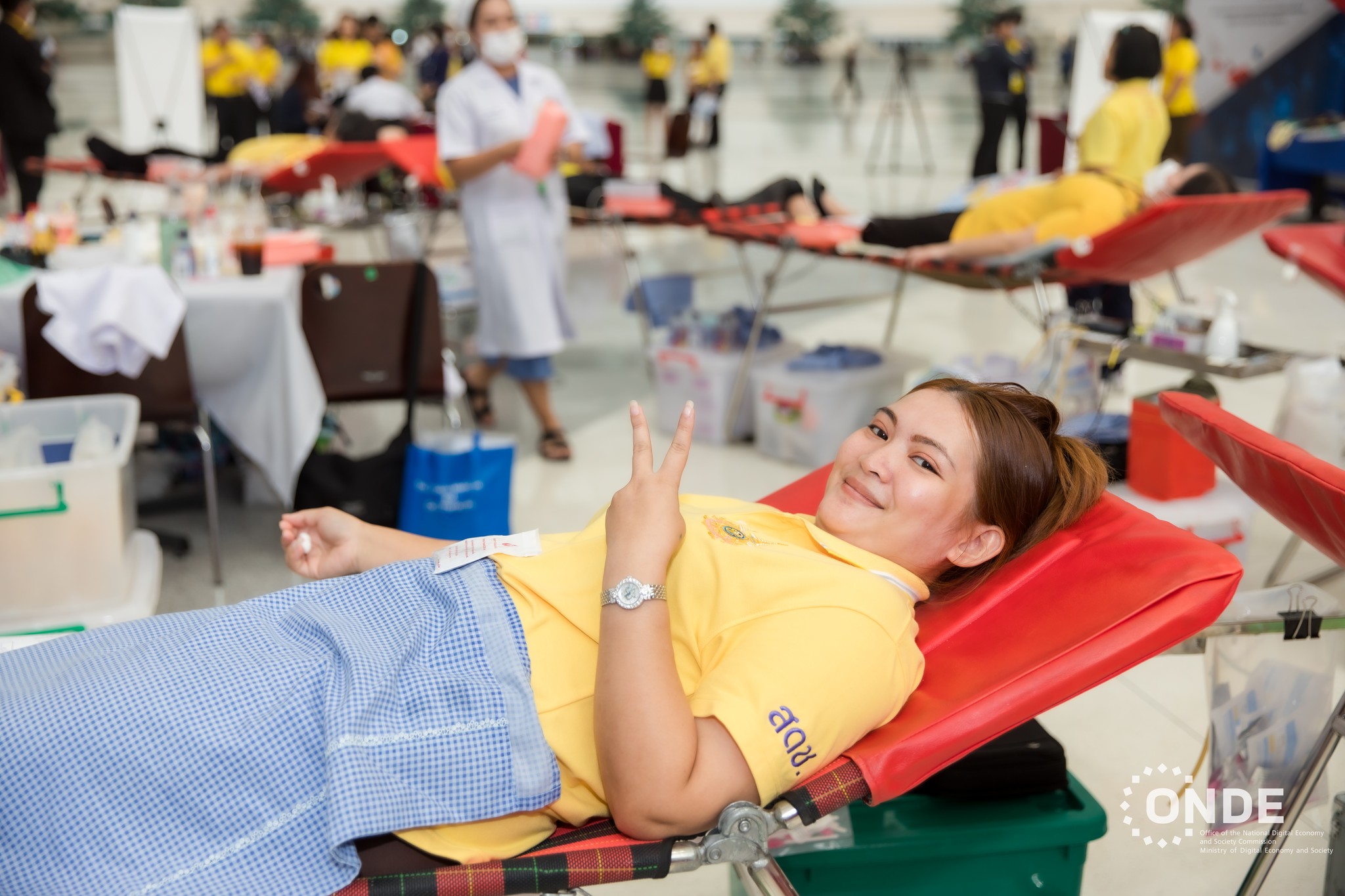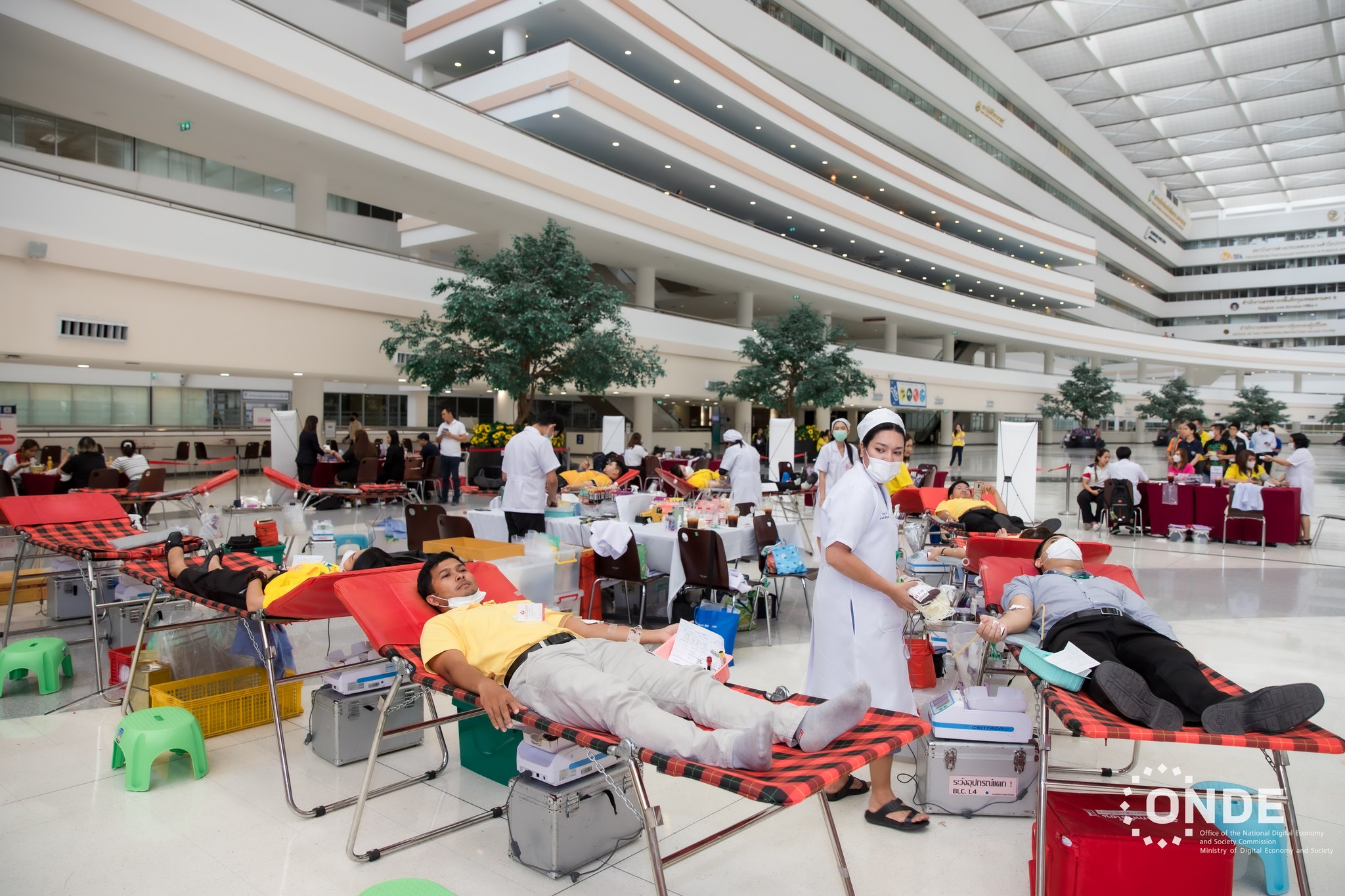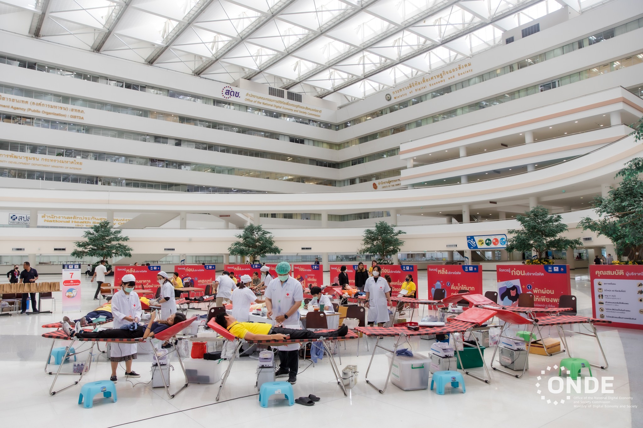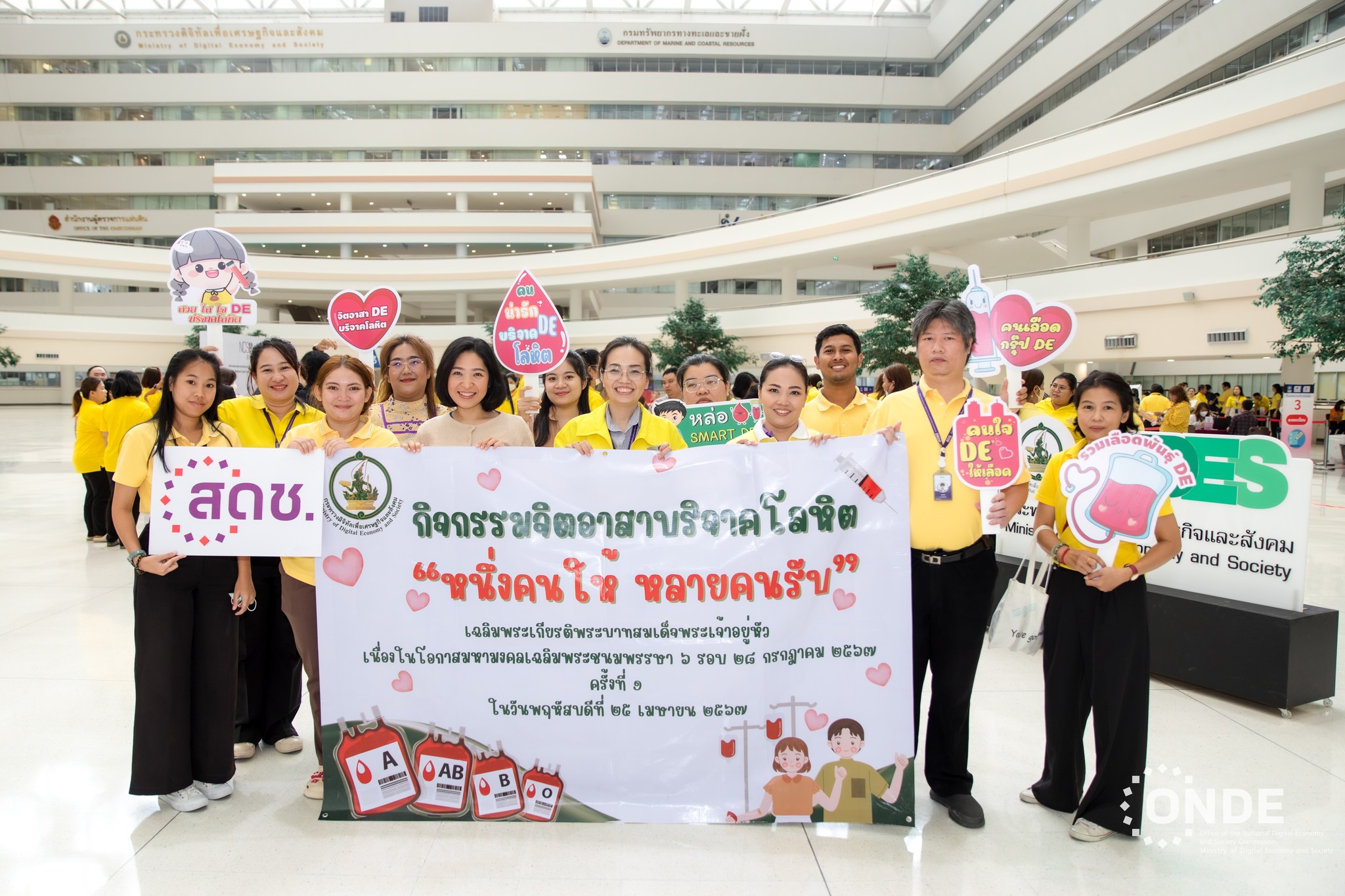 วันนี้ (25 เมษายน 2567) ศาสตราจารย์พิเศษวิศิษฏ์ วิศิษฏ์สรอรรถ ปลัดกระทรวงดิจิทัลเพื่อเศรษฐกิจและสังคม เป็นประธานกิจกรรมจิตอาสาบริจาคโลหิต “หนึ่งคนให้ หลายคนรับ" เฉลิมพระเกียรติพระบาทสมเด็จพระเจ้าอยู่หัวฯ เนื่องในโอกาสมหามงคลเฉลิมพระชนมพรรษา 6 รอบ 28 กรกฎาคม 2567 ครั้งที่ 1 โดยมีนางพุทธรักษา แดงรัตน์ ผู้อำนวยการสำนักงานเลขาธิการ สำนักงานคณะกรรมการดิจิทัลเพื่อเศรษฐกิจและสังคมแห่งชาติ (สดช.) พร้อมด้วยข้าราชการ พนักงานราชการ และเจ้าหน้าที่ สดช. เข้าร่วม ณ ลานอเนกประสงค์ ชั้น 2 อาคารรัฐประศาสนภักดี ศูนย์ราชการเฉลิมพระเกียรติฯ กรุงเทพฯ