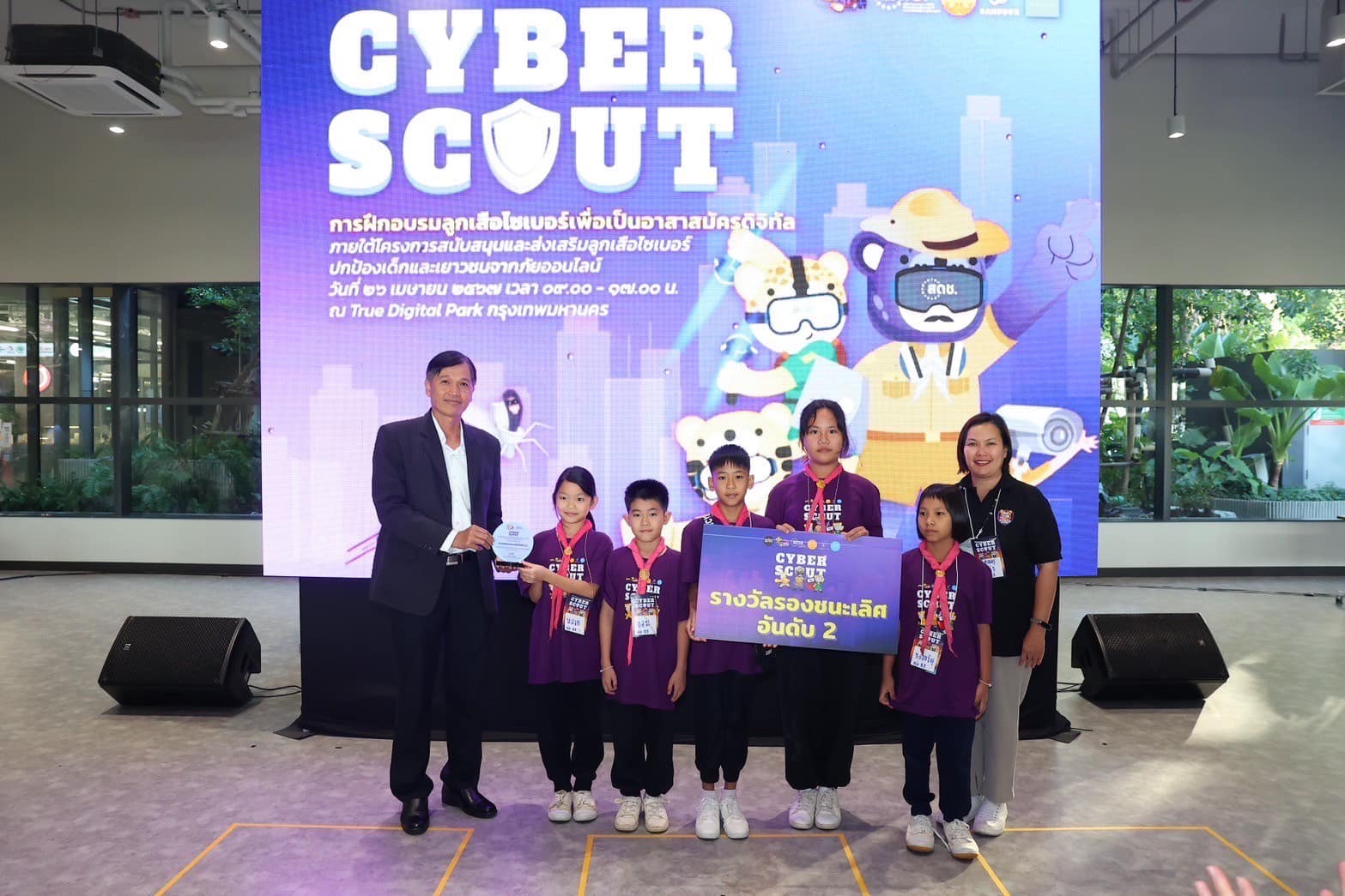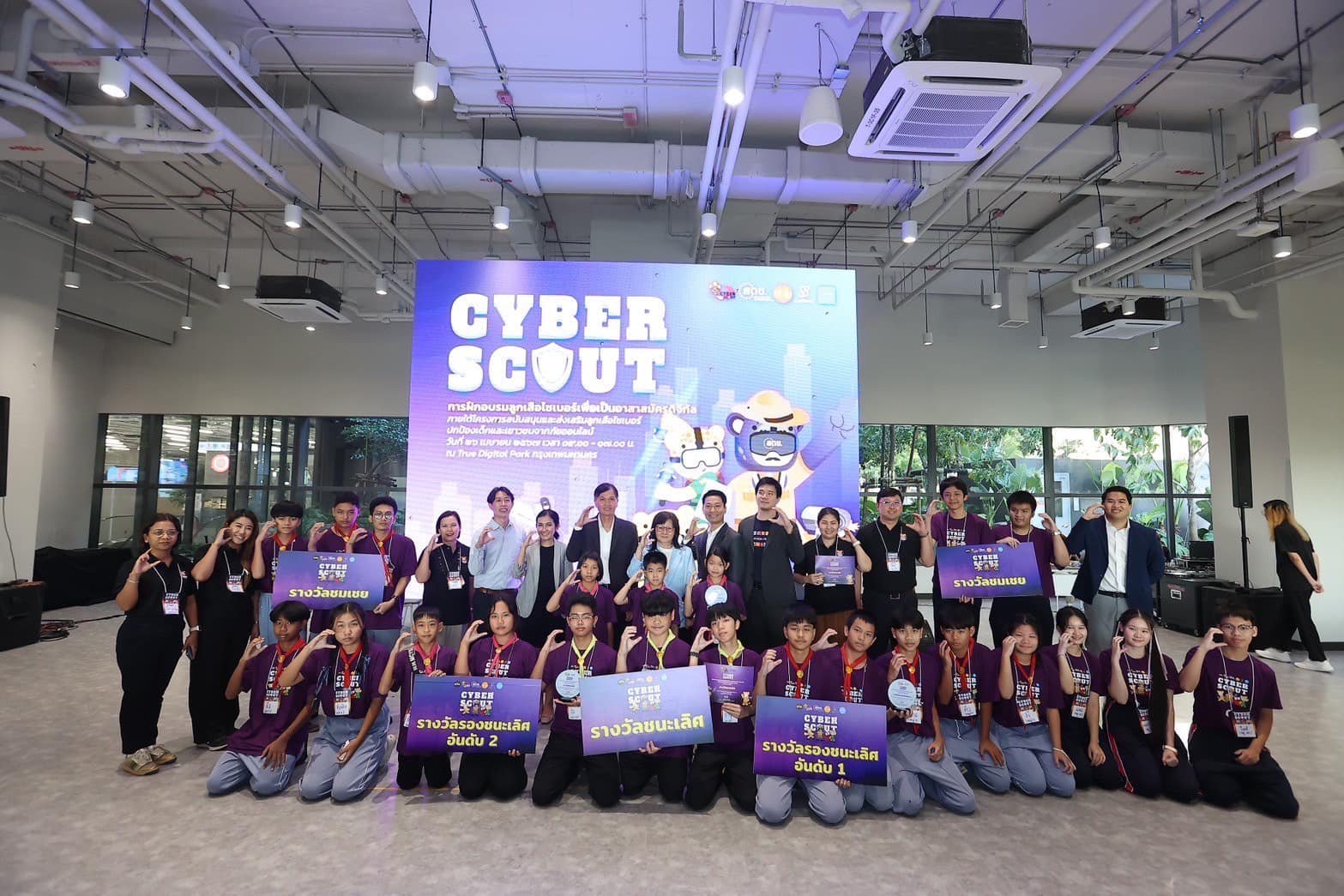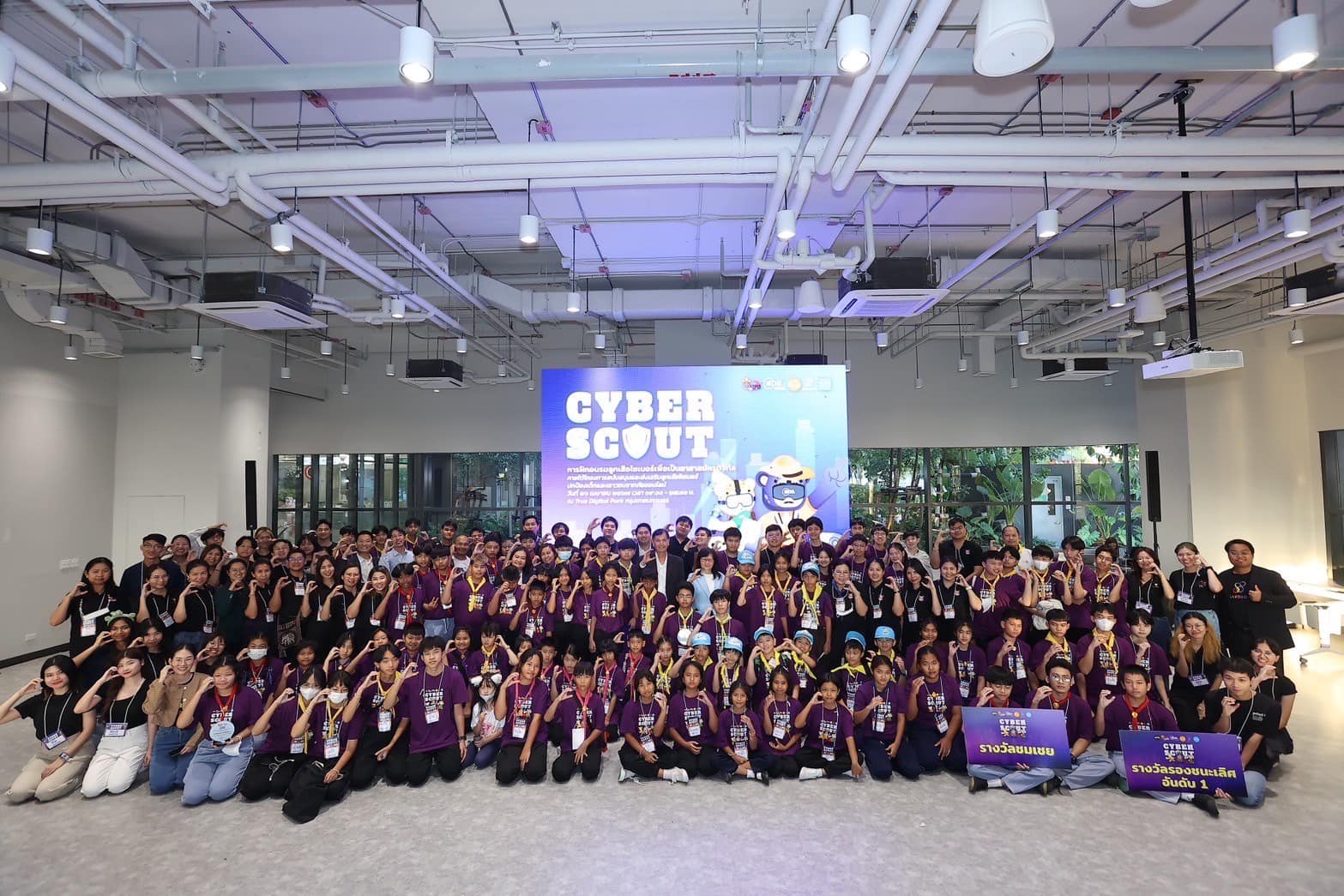 วันนี้ (26 เมษายน 2567) นายธีรวุฒิ ธงภักดิ์ รองเลขาธิการคณะกรรมการดิจิทัลเพื่อเศรษฐกิจและสังคมแห่งชาติ เป็นประธานในพิธีปิด “การฝึกอบรมลูกเสือไซเบอร์เพื่อเป็นอาสาสมัครดิจิทัล” ภายใต้โครงการสนับสนุนและส่งเสริมลูกเสือไซเบอร์ปกป้องเด็กและเยาวชนจากภัยออนไลน์ พร้อมมอบรางวัลหมู่ลูกเสือไซเบอร์แห่งอนาคต (Future Cyber Scout Hackathon) สำหรับรางวัลมีจำนวนทั้งสิ้น 5 รางวัล ประกอบด้วย รางวัลชนะเลิศ รางวัลรองชนะเลิศอันดับ 1 รางวัลรองชนะเลิศอันดับ 2 และรางวัลชมเชย จำนวน 2 รางวัล โดยมีนางสาวรัตนา จรูญศักดิ์สิทธิ์ ผู้อำนวยการกองขับเคลื่อนดิจิทัลเพื่อสังคม สำนักงานคณะกรรมการดิจิทัลเพื่อเศรษฐกิจและสังคมแห่งชาติ (สดช.) ตลอดจนผู้บริหารจากองค์การยูนิเซฟประเทศไทย คณะครู และนักเรียน จำนวนกว่า 100 คน เข้าร่วม ณ True Digital Park กรุงเทพฯ