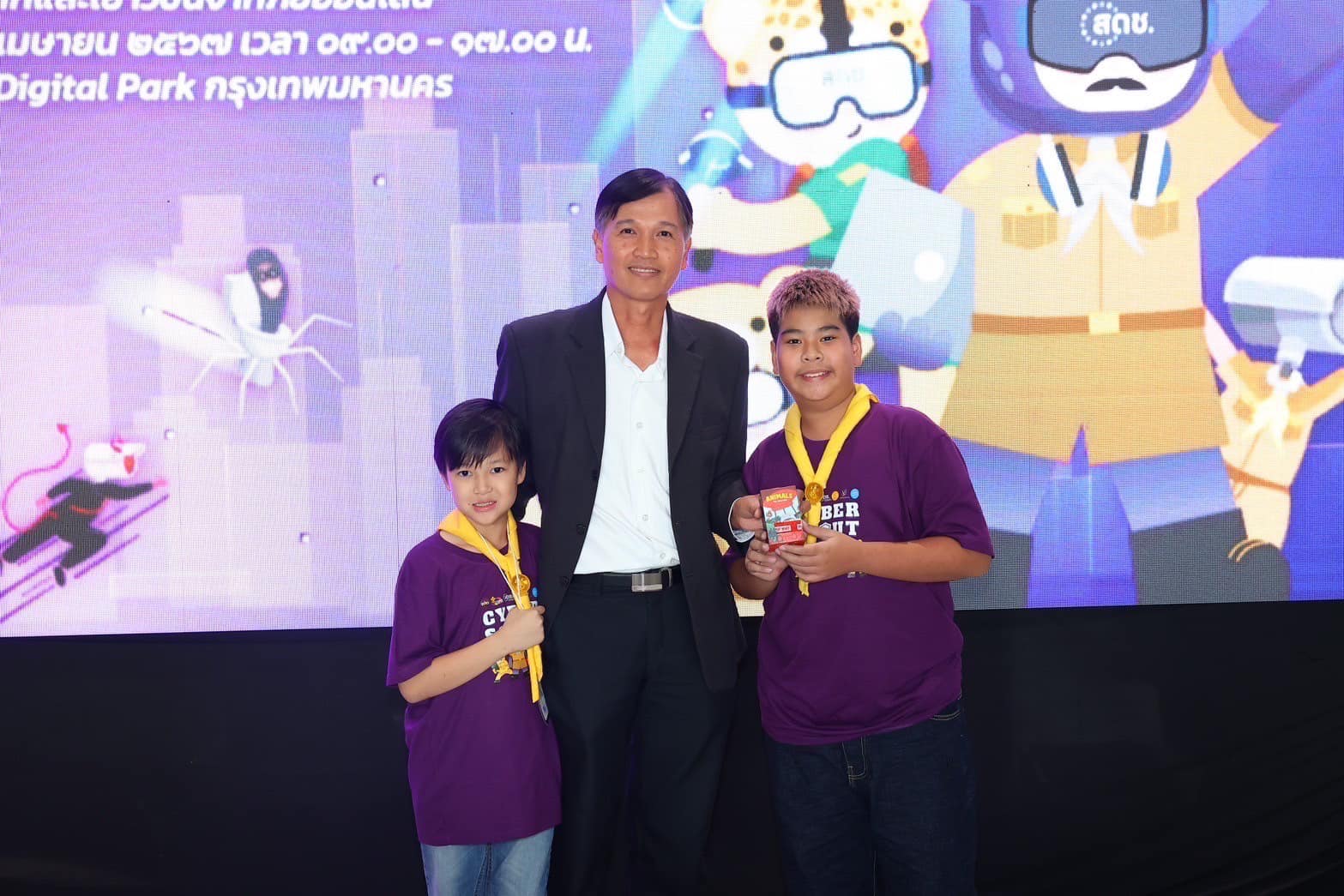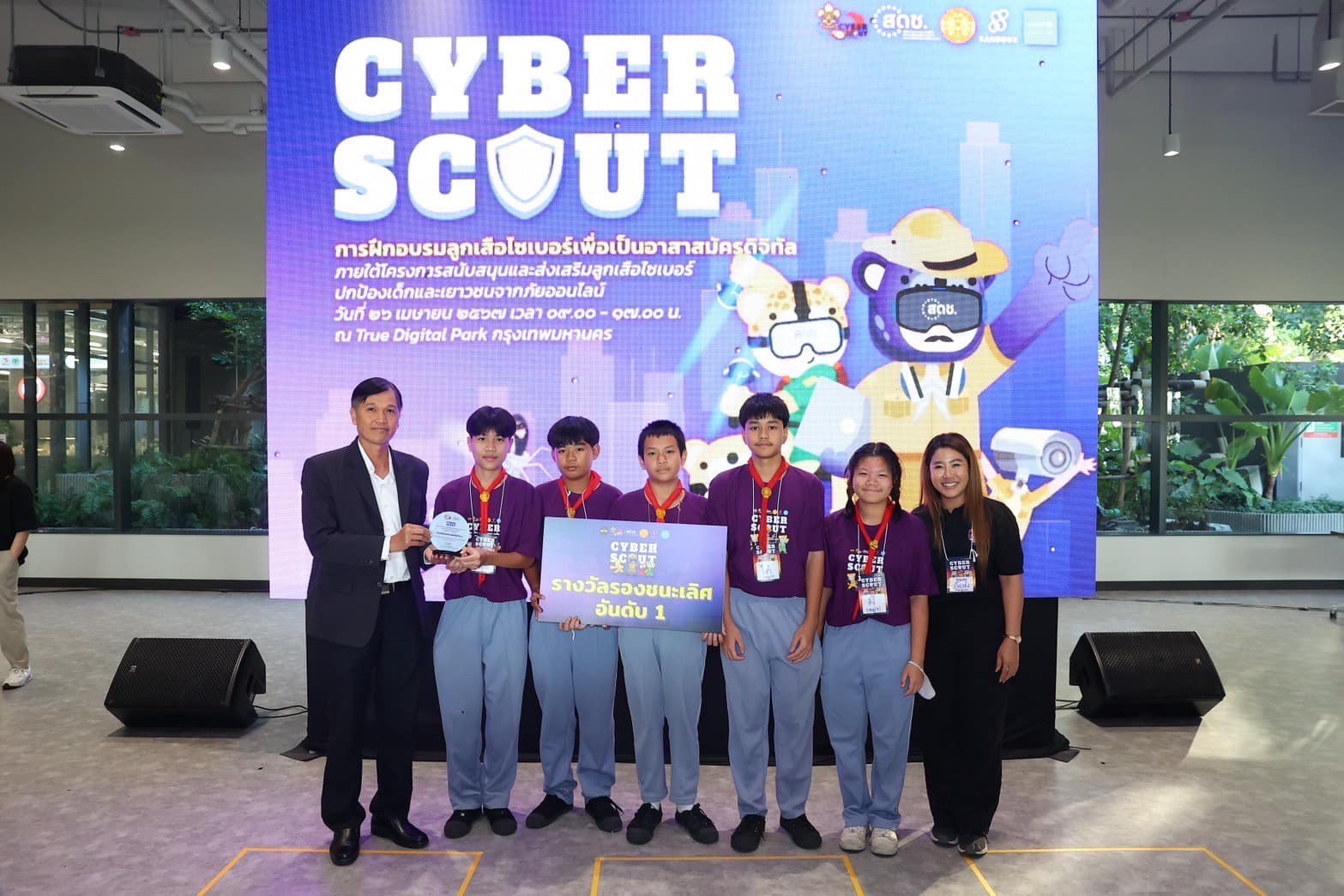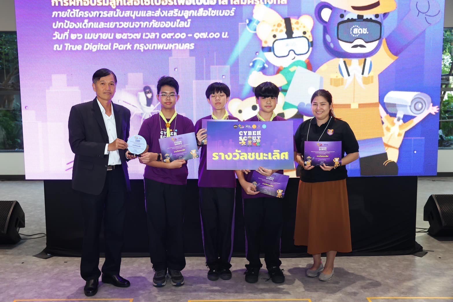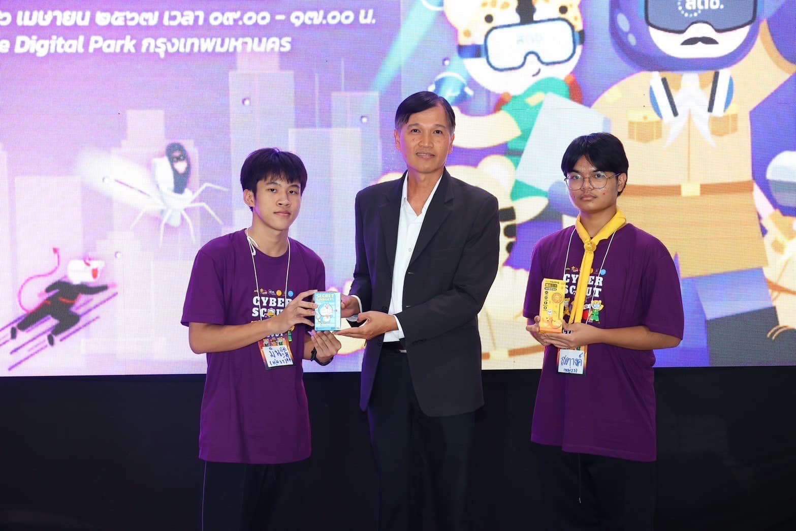 วันนี้ (26 เมษายน 2567) นายธีรวุฒิ ธงภักดิ์ รองเลขาธิการคณะกรรมการดิจิทัลเพื่อเศรษฐกิจและสังคมแห่งชาติ เป็นประธานในพิธีปิด “การฝึกอบรมลูกเสือไซเบอร์เพื่อเป็นอาสาสมัครดิจิทัล” ภายใต้โครงการสนับสนุนและส่งเสริมลูกเสือไซเบอร์ปกป้องเด็กและเยาวชนจากภัยออนไลน์ พร้อมมอบรางวัลหมู่ลูกเสือไซเบอร์แห่งอนาคต (Future Cyber Scout Hackathon) สำหรับรางวัลมีจำนวนทั้งสิ้น 5 รางวัล ประกอบด้วย รางวัลชนะเลิศ รางวัลรองชนะเลิศอันดับ 1 รางวัลรองชนะเลิศอันดับ 2 และรางวัลชมเชย จำนวน 2 รางวัล โดยมีนางสาวรัตนา จรูญศักดิ์สิทธิ์ ผู้อำนวยการกองขับเคลื่อนดิจิทัลเพื่อสังคม สำนักงานคณะกรรมการดิจิทัลเพื่อเศรษฐกิจและสังคมแห่งชาติ (สดช.) ตลอดจนผู้บริหารจากองค์การยูนิเซฟประเทศไทย คณะครู และนักเรียน จำนวนกว่า 100 คน เข้าร่วม ณ True Digital Park กรุงเทพฯ