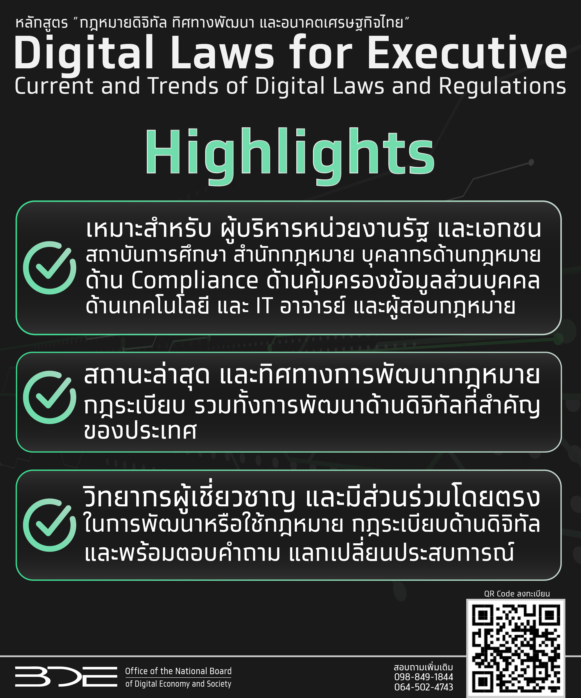 หลักสูตรอบรม "กฎหมายดิจิทัล ทิศทางพัฒนา และอนาคตเศรษฐกิจไทย สำหรับผู้บริหาร”