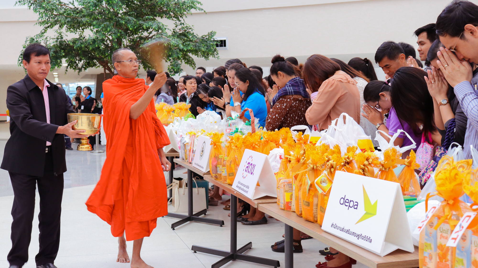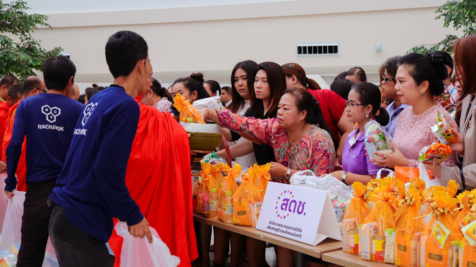 วันที่ 22 พฤษภาคม 2561 ผู้บริหาร ข้าราชการ และเจ้าหน้าที่ สำนักงานคณะกรรมการดิจิทัลเพื่อเศรษฐกิจและสังคมแห่งชาติ หรือ สดช. ร่วมทำบุญถวายสังฆทานตักบาตรข้าวสารอาหารแห้ง และปัจจัยต่าง ๆ ถวายแด่พระสงฆ์ และได้มีการร่วมกันสวดมนต์รับศีล รับพร จากพระสงฆ์จากวัดบางรักใหญ่ จ.นนทบุรี จำนวน 9 รูป ในกิจกรรม “ออมบุญ” เนื่องใน “วันวิสาขบูชา” ประจำปี 2561 ในเวลา 08.00 น. ณ บริเวณลานอเนกประสงค์ ชั้น 2 อาคารรัฐประศาสนภัคดี ศูนย์ราชการเฉลิมพระเกียรติฯ ถ.แจ้งวัฒนะ กรุงเทพฯ