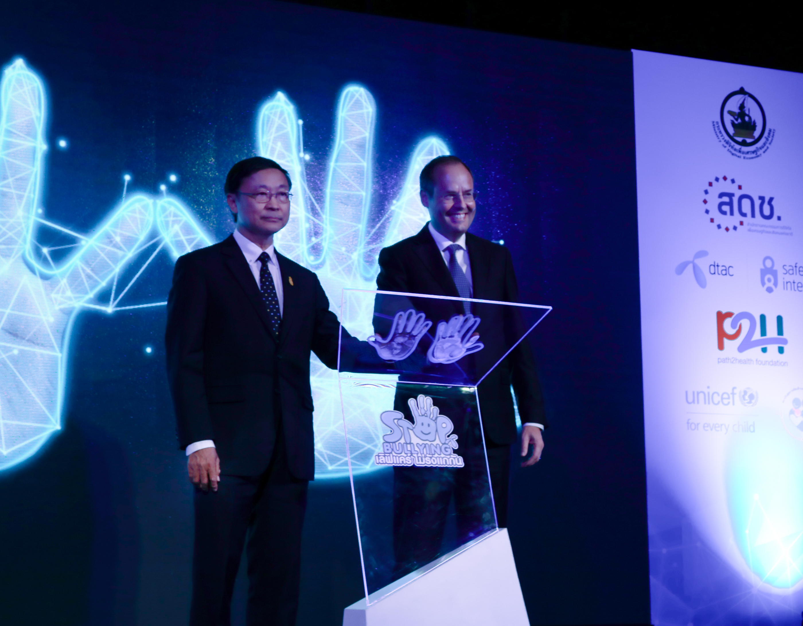 รวมทั้งยังได้เปิดตัวบริการให้คำปรึกษาช่วยเหลือเด็กและเยาวชนผ่าน Stop bullying Chat Line โดยเป็นจุดเริ่มต้นในการร่วมกันแก้ไขปัญหาการกลั่นแกล้งรังแกในโลกออนไลน์ (Cyberbullying) ซึ่งเป็นหนึ่งในยุทธศาสตร์การส่งเสริมและปกป้องคุ้มครองเด็กและเยาวชน ในการใช้สื่อออนไลน์ของรัฐบาล โดย สดช. ได้ประสานกับกองบังคับการปราบปรามการกระทำความผิดเกี่ยวกับอาชญากรรมทางเทคโนโลยี (ปอท.) ในการให้คำปรึกษาเบื้องต้นทางเทคนิคสำหรับการส่งต่อกรณีที่มีการกลั่นแกล้งรังแกในโลกออนไลน์อีกด้วย เมื่อวันที่ 22 มีนาคม 2561 ณ โรงแรม แกรนด์ ไฮแอท เอราวัณ ถนนสุขุมวิท กรุงเทพฯ