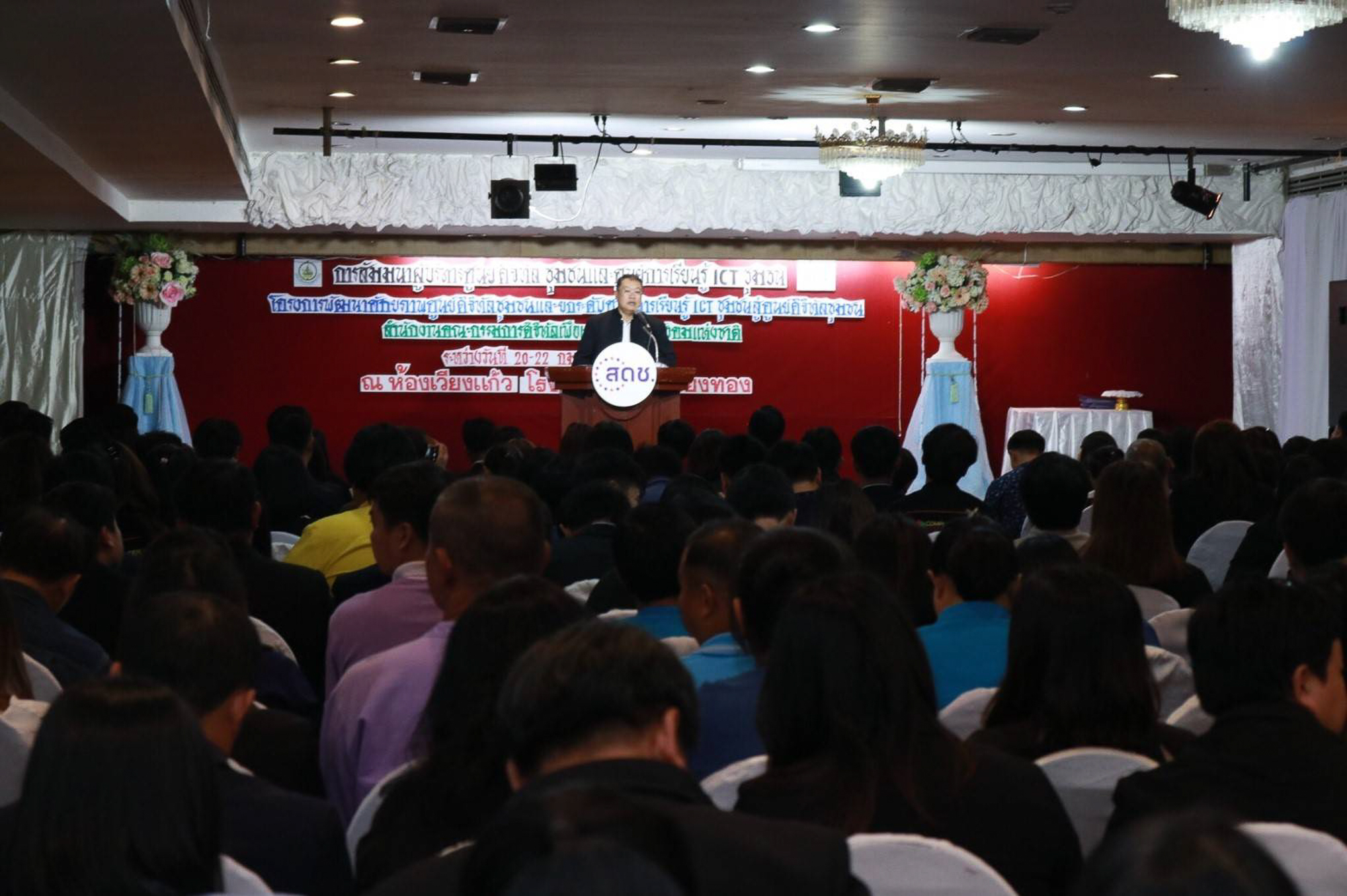 นายแพทย์พลวรรธน์ วิทูรกลชิต รองเลขาธิการคณะกรรมการดิจิทัลเพื่อเศรษฐกิจและสังคมแห่งชาติ เป็นประธานมอบวุฒิบัตรและปิดกิจกรรมการสัมมนาผู้บริหารศูนย์ดิจิทัลชุมชนและศูนย์การเรียนรู้ ICT ชุมชน ในกิจกรรมพัฒนาศักยภาพศูนย์ดิจิทัลชุมชนและยกระดับศูนย์การเรียนรู้ ICT ชุมชน สู่ศูนย์ดิจิทัลชุมชน ภายใต้โครงการส่งเสริมและพัฒนาการใช้ประโยชน์จากเทคโนโลยีดิจิทัลจังหวัดลำปาง เมื่อวันที่ 22 กุมภาพันธ์ 2562  ณ โรงแรมลำปางเวียงทอง อำเภอเมือง จังหวัดลำปาง โดยมี นางสาวเพ็ญนภา เลิศไชยภัณฑ์ นักวิชาการคอมพิวเตอร์ชำนาญการ เป็นผู้กล่าวรายงานปิดการสัมมนาฯ  พร้อมทั้งมีผู้อำนวยการกลุ่มปฏิบัติการสถิติ สำนักงานสถิติจังหวัดลำปาง ท่านอดิศร จินาวิล ผู้บริหารศูนย์การเรียนรู้ ICT ชุมชน ผู้อำนวยการศูนย์ดิจิทัลชุมชน และผู้เข้าร่วมการสัมมนา จำนวน 303 คน