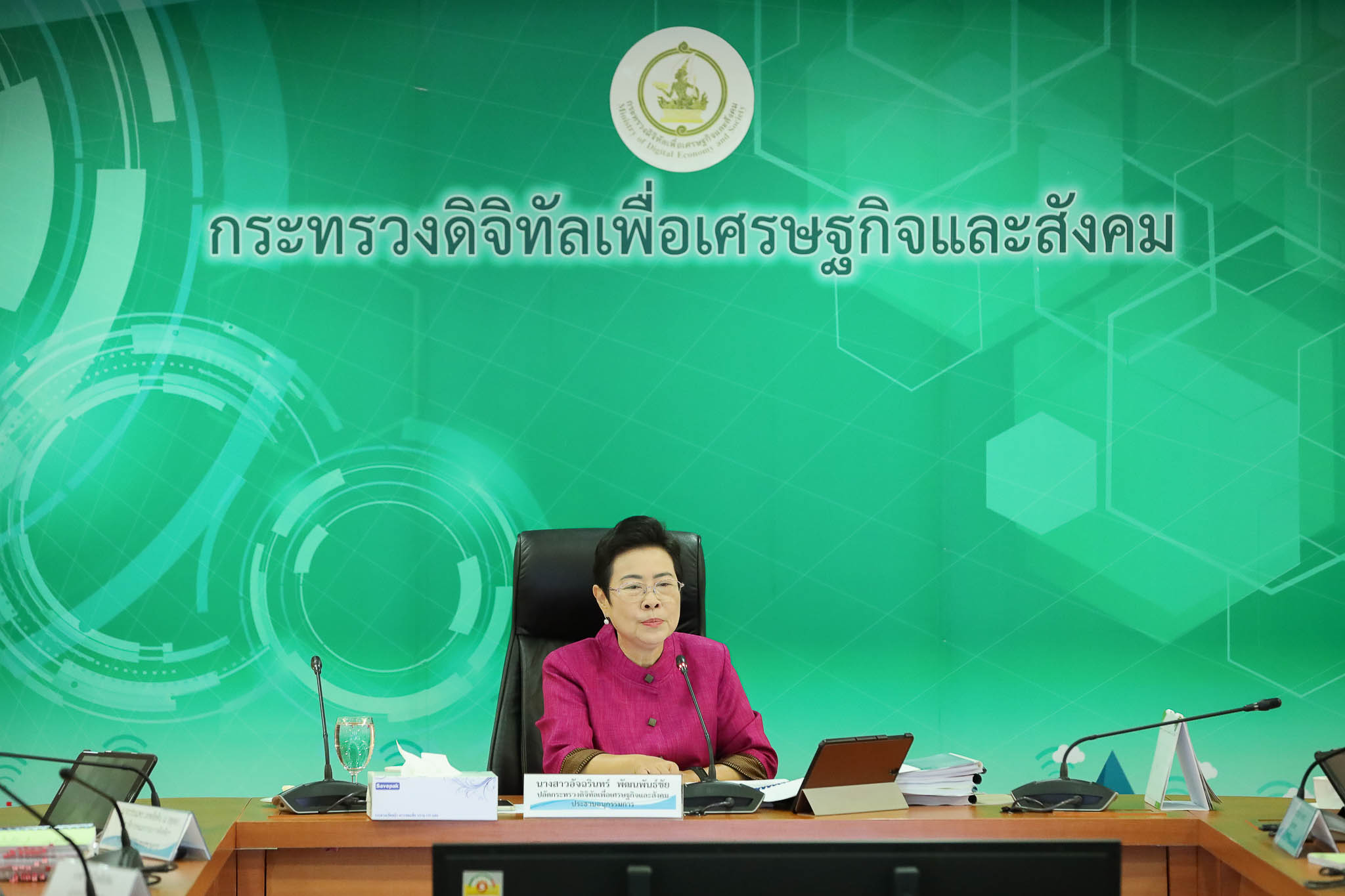นางสาว อัจฉรินทร์ พัฒนพันธ์ชัย ปลัดกระทรวงดิจิทัลเพื่อเศรษฐกิจและสังคม เป็นประธานการประชุมคณะอนุกรรมการกลั่นกรองพิจารณาโครงการ โดยมีสำนักงานคณะกรรมการดิจิทัลเพื่อเศรษฐกิจและสังคม (สดช.) เป็นฝ่ายเลขานุการ ที่ประชุมได้พิจารณาการขอแก้ไขเปลี่ยนแปลงระยะเวลาการดำเนินงานโครงการฯ และอนุมัติ/กลั่นกรอง โครงการฯ ที่ได้ขอรับเงินจากกองทุนพัฒนาดิจิทัลเพื่อเศรษฐกิจและสังคม เมื่อวันนี้ 28 ตุลาคม 2563 ณ ห้องประชุม MDES ชั้น 9 อาคารรัฐประศาสนภักดี ศูนย์ราชการเฉลิมพระเกียรติ 80 พรรษา