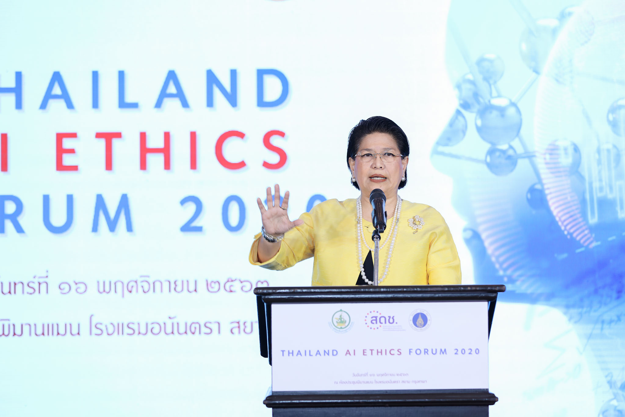 เมื่อวันที่ 16 พฤศจิกายน 2563 นางวรรณพร เทพหัสดิน ณ อยุธยา เลขาธิการคณะกรรมการดิจิทัลเพื่อเศรษฐกิจและสังคมแห่งชาติ เป็นประธานเปิดงาน Thailand AI Ethics Forum 2020 โดยมี ผู้ทรงคุณวุฒิจากมหาวิทยาลัยมหิดล และผู้ทรงคุณวุฒิภายนอก ร่วมเสวนา เพื่อกำหนดแนวทางจริยธรรมปัญญาประดิษฐ์ (AI Ethics Principle) เพื่อเป็นกรอบแนวทางในการพัฒนาระบบสารสนเทศในประเทศไทย ณ ห้องประชุมพิมานแมน โรงแรมอนันตรา สยาม กรุงเทพฯ