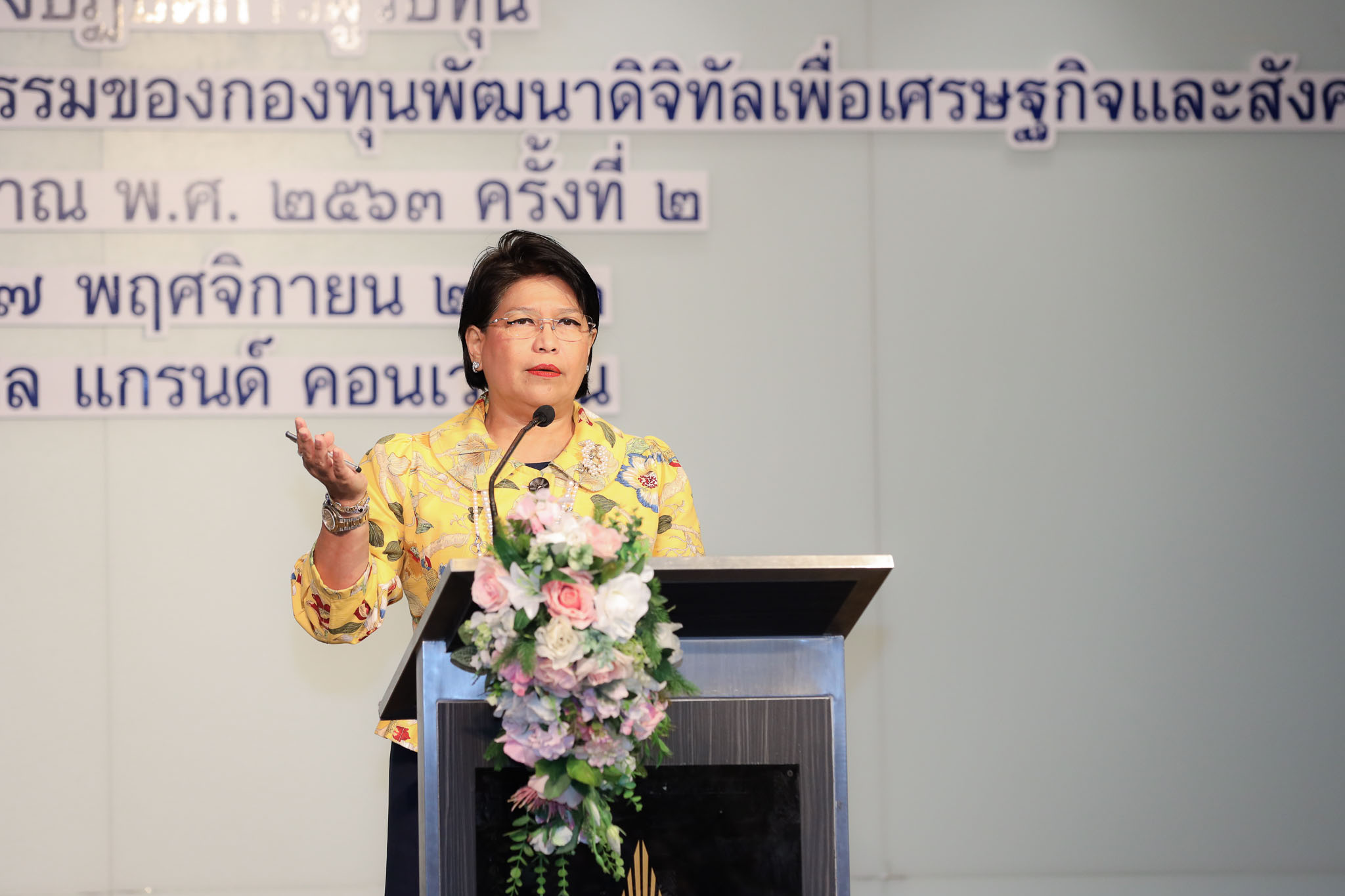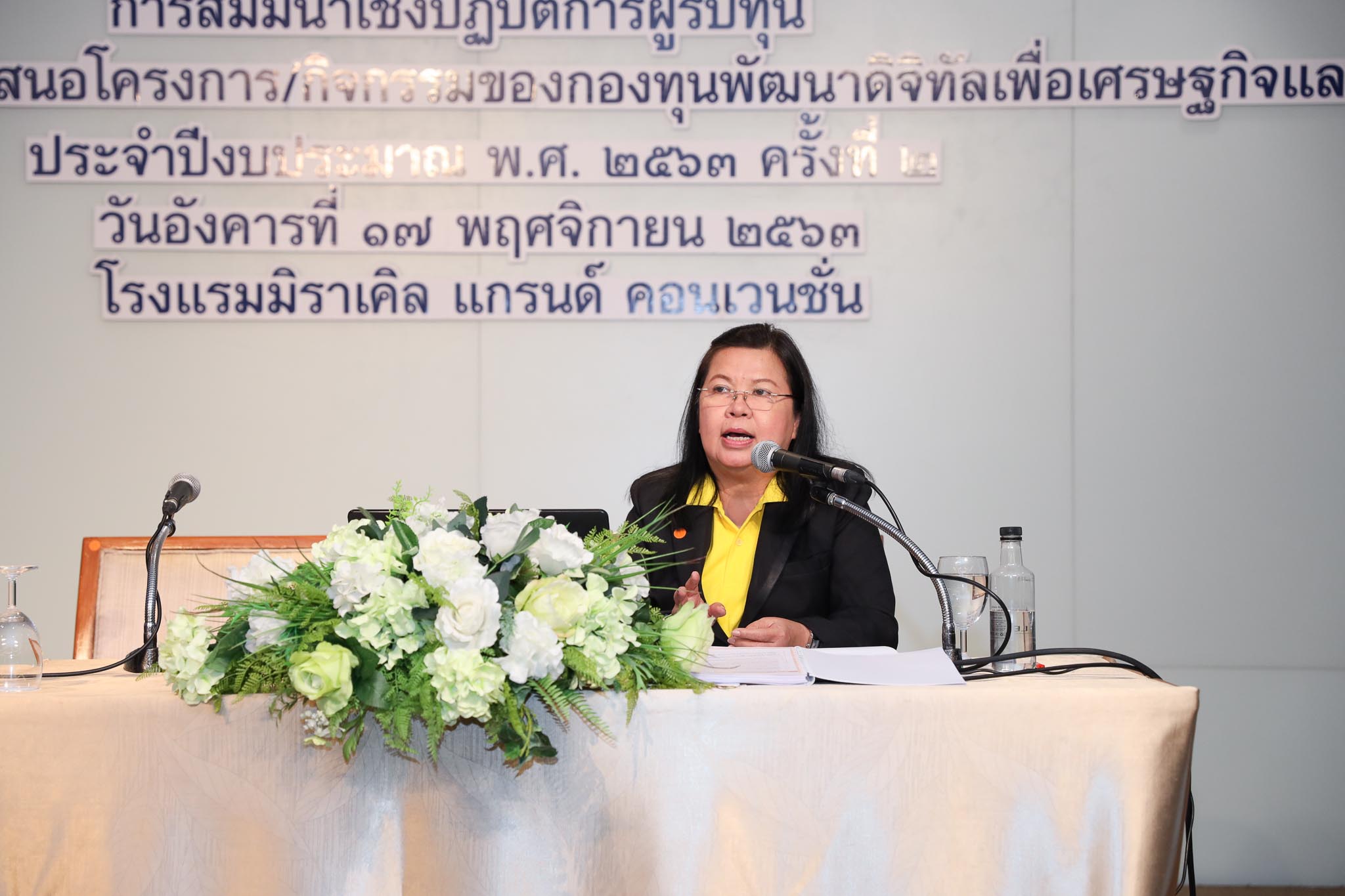 เมื่อวันที่ 17 พฤษจิกายน 2563 นางวรรณพร เทพหัสดิน ณ อยุธยา เลขาธิการคณะกรรมการดิจิทัลเพื่อเศรษฐกิจและสังคมแห่งชาติ เปิดงานสัมมนาเชิงปฏิบัติการผู้รับทุนกองทุนพัฒนาดิจิทัลเพื่อเศรษฐกิจและสังคม ประจำปีงบประมาณ พ.ศ.2563 ครั้งที่ 2 (วันที่ 2) ภายใต้หัวข้อ “นโยบายและความคาดหวังของกองทุนฯ ต่อการพัฒนาด้านดิจิทัลเพื่อเศรษฐกิจและสังคม” ณ ห้อง Magic 2 ณ โรงแรมมิราเคิล แกรนด์ คอนเวนชั่น ถนนแจ้งวัฒนะ เขตหลักสี่ กรุงเทพฯ