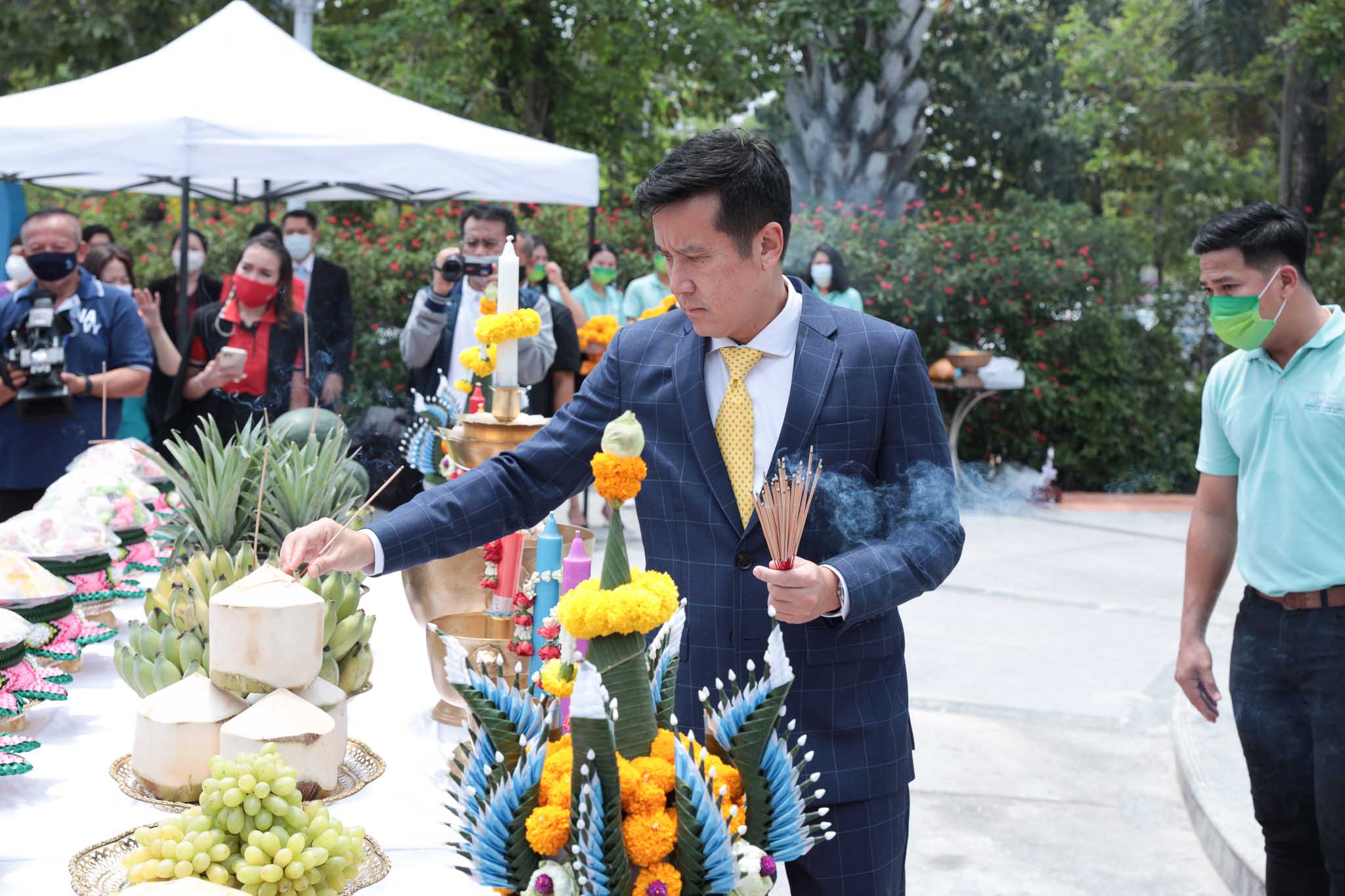 เมื่อวันที่ 1 เมษายน 2564 นายชัยวุฒิ ธนาคมานุสรณ์ รัฐมนตรีว่าการกระทรวงดิจิทัลเพื่อเศรษฐกิจและสังคม (ดีอีเอส) นางสาวอัจฉรินทร์ พัฒนพันธ์ชัย ปลัดกระทรวงดิจิทัลเพื่อเศรษฐกิจและสังคม พร้อมด้วย นางวรรณพร เทพหัสดิน ณ อยุธยา เลขาธิการคณะกรรมการดิจิทัลเพื่อเศรษฐกิจและสังคมแห่งชาติ และผู้บริหารและเจ้าหน้าที่หน่วยงานในสังกัดกระทรวงฯ เข้าสักการะองค์ท้าวมหาพรหม สิ่งศักดิ์สิทธิ์ประจำศูนย์ราชการเฉลิมพระเกียรติ 80 พรรษา เพื่อความเป็นสิริมงคล ในโอกาสเข้าปฏิบัติหน้าที่รัฐมนตรีว่าการกระทรวงดิจิทัลเพื่อเศรษฐกิจและสังคม และประชุมมอบนโยบายแก่ผู้บริหารกระทรวงดิจิทัลเพื่อเศรษฐกิจและสังคม
