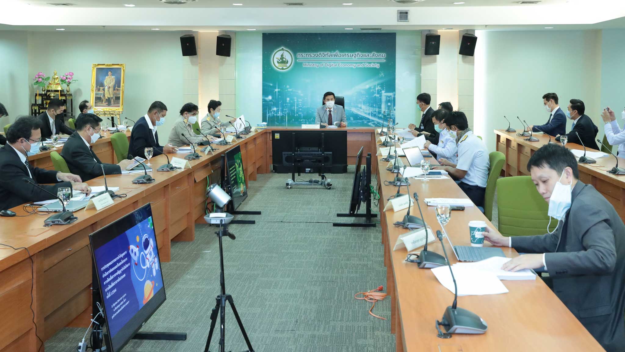 เมื่อวันที่ 21 มิถุนายน 2564 นายชัยวุฒิ ธนาคมานุสรณ์ รัฐมนตรีว่าการกระทรวงดิจิทัลเพื่อเศรษฐกิจและสังคม เป็นประธานการประชุมคณะกรรมการกำกับดูแลการดำเนินการส่งมอบและรับมอบโครงการดาวเทียมสื่อสารตามสัญญาดำเนินกิจการดาวเทียมสื่อสารภายในประเทศ โดยมีผู้บริหารกระทรวงดิจิทัลเพื่อเศรษฐกิจและสังคม นางสาวอัจฉรินทร์ พัฒนพันธ์ชัย ปลัดกระทรวงดิจิทัลเพื่อเศรษฐกิจและสังคม นางวรรณพร เทพหัสดิน ณ อยุธยา เลขาธิการคณะกรรมการดิจิทัลเพื่อเศรษฐกิจและสังคมแห่งชาติ กรรมการผู้จัดการใหญ่ และรองกรรมการผู้จัดการใหญ่ บมจ.โทรคมนาคมแห่งชาติ พร้อมด้วยผู้บริหารจากสำนักงาน กสทช. และผู้เชี่ยวชาญในสาขาต่าง ๆ ร่วมเป็นกรรมการ ณ ห้องประชุม MDES 1 ชั้น 9 กระทรวงดิจิทัลเพื่อเศรษฐกิจและสังคม อาคารรัฐประศาสนภักดี ศูนย์ราชการเฉลิมพระเกียรติ 80 พรรษาฯ ถนนแจ้งวัฒนะ