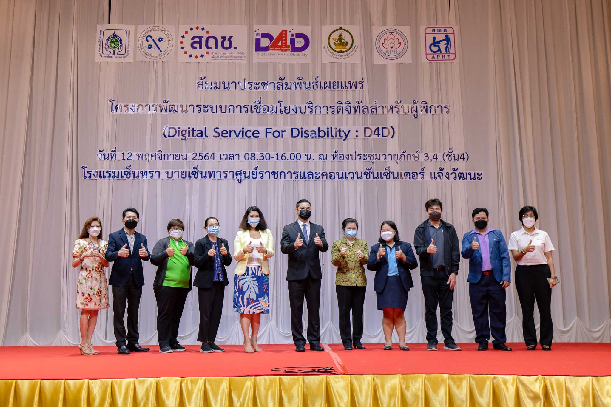 เมื่อวันที่ 12 พฤศจิกายน 2564 สํานักงานคณะกรรมการดิจิทัลเพื่อเศรษฐกิจและสังคมแห่งชาติ (สดช.) กระทรวงดิจิทัลเพื่อเศรษฐกิจและสังคม จัดงานสัมมนาประชาสัมพันธ์เผยแพร่โครงการพัฒนาระบบการเชื่อมโยงบริการดิจิทัล สำหรับผู้พิการ (Digital Service for Disability : D4D) โดยมีนายเอกพงษ์ หริ่มเจริญ รองเลขาธิการคณะกรรมการดิจิทัลเพื่อเศรษฐกิจและสังคมแห่งชาติ (รดช.) เป็นประธานเปิดงานสัมมนาดังกล่าว