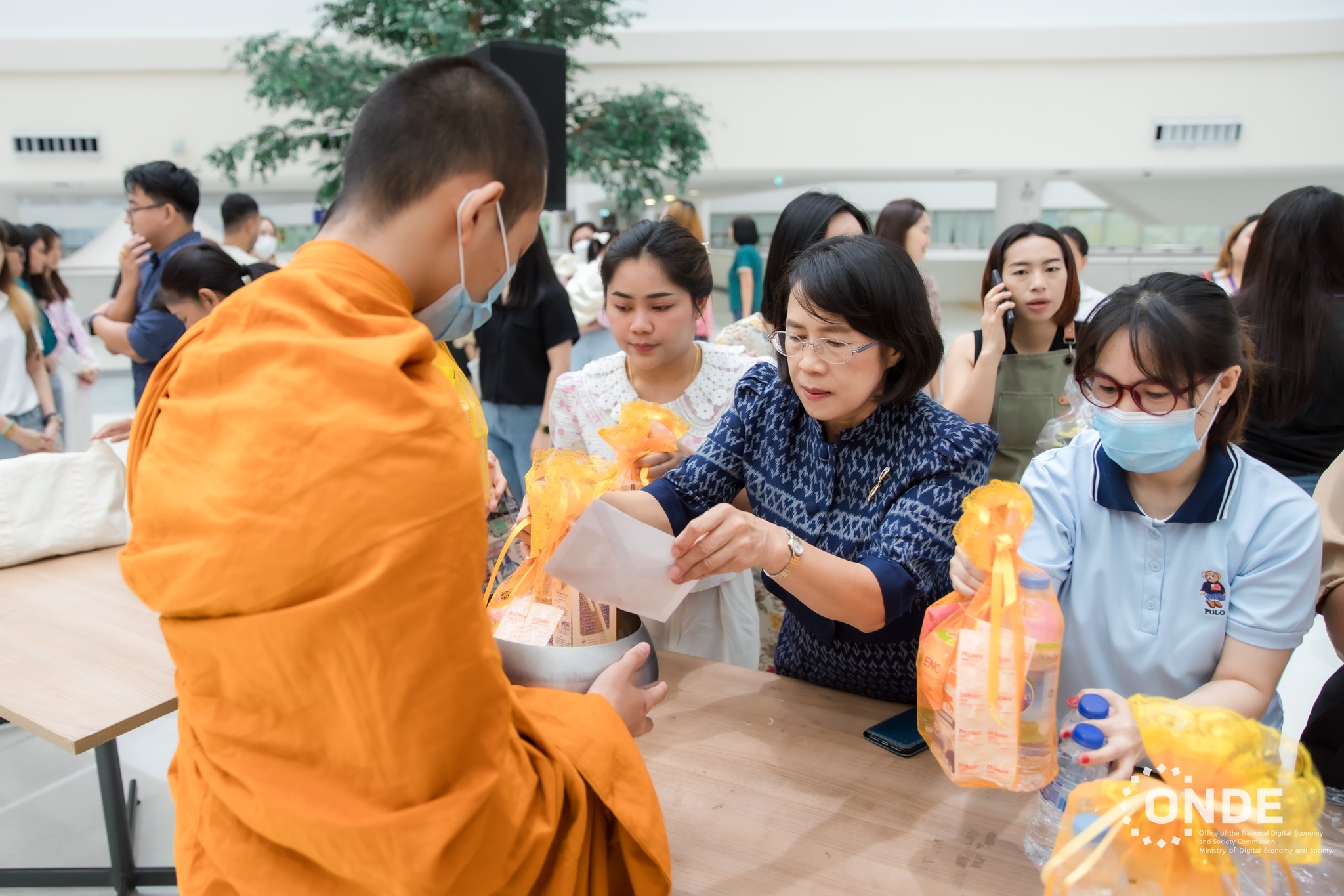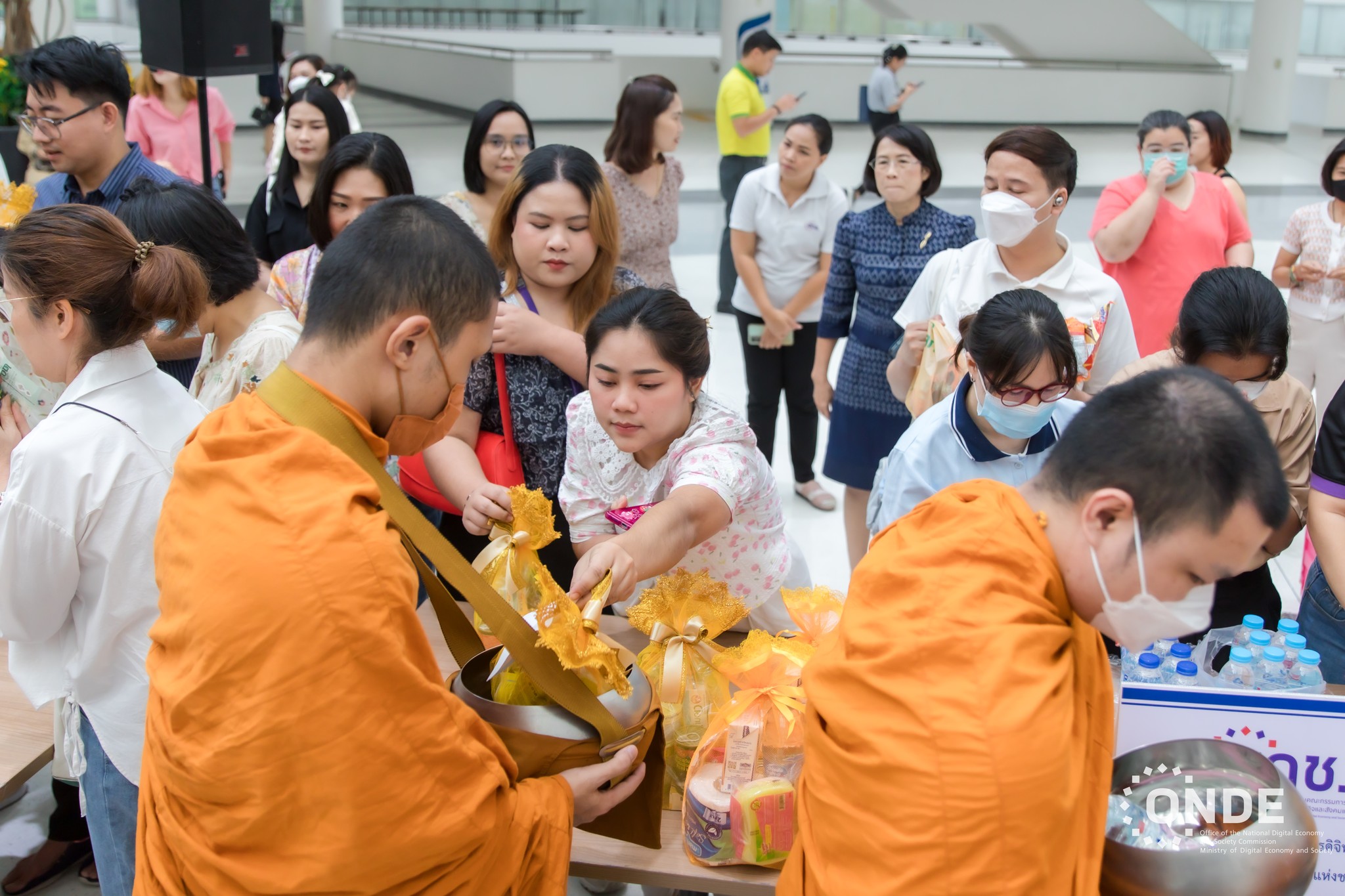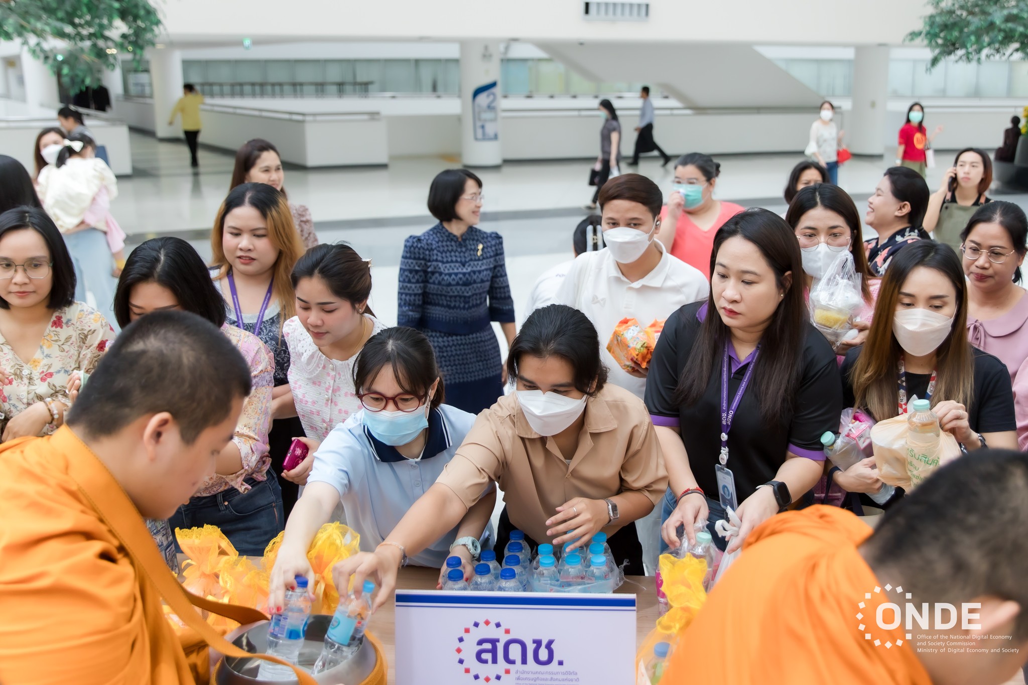 วันนี้ (17 พฤษภาคม 2567) นางอำไพ จิตรแจ่มใส รองเลขาธิการคณะกรรมการดิจิทัลเพื่อเศรษฐกิจและสังคมแห่งชาติ พร้อมด้วยข้าราชการ และเจ้าหน้าที่สำนักงานคณะกรรมการดิจิทัลเพื่อเศรษฐกิจและสังคมแห่งชาติ (สดช.) เข้าร่วมกิจกรรมออมบุญวันวิสาขบูชา ประจำปี 2567 โดยได้ร่วมกันทำบุญตักบาตร ข้าวสาร อาหารแห้ง และปัจจัยตามจิตศรัทธา ถวายแด่พระสงฆ์ จำนวน 9 รูป จากวัดหลักสี่ กรุงเทพฯ จัดโดย บริษัท ธนารักษ์พัฒนาสินทรัพย์ จำกัด ณ ลานอเนกประสงค์ ชั้น 2 อาคารรัฐประศาสนภักดี ศูนย์ราชการเฉลิมพระเกียรติฯ กรุงเทพฯ