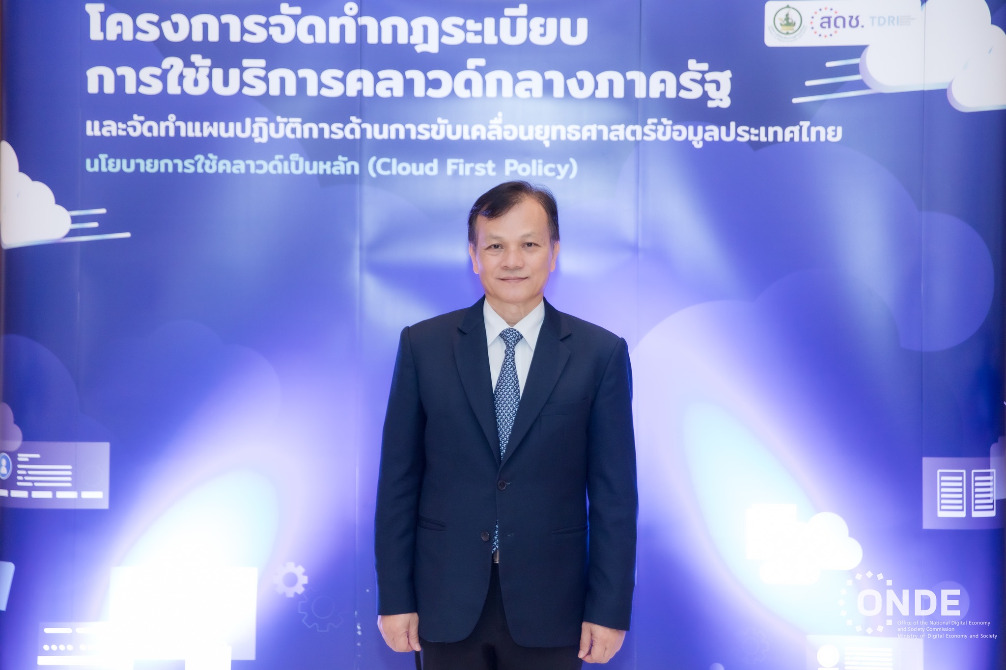 นายภุชพงค์ โนดไธสง เลขาธิการคณะกรรมการดิจิทัลเพื่อเศรษฐกิจและสังคมแห่งชาติ กล่าวว่า สำนักงานคณะกรรมการดิจิทัลเพื่อเศรษฐกิจและสังคมแห่งชาติ กระทรวงดิจิทัลเพื่อเศรษฐกิจและสังคม ได้ดำเนินการศึกษาและจัดทำกฎระเบียบการใช้บริการระบบคลาวด์กลางภาครัฐ และแผนปฏิบัติการ ด้านการขับเคลื่อนยุทธศาสตร์ข้อมูลของประเทศไทย โดยได้ดำเนินการพัฒนา ติดตั้ง บริหาร และดูแลระบบ คลาวด์กลางภาครัฐ ภายใต้โครงการพัฒนาระบบคลาวด์กลางภาครัฐ (Government Data Center and Cloud service : GDCC) เพื่อให้หน่วยงานภาครัฐเกิดการพัฒนาการทำงานให้มีลักษณะเป็นแพลตฟอร์มที่สามารถเชื่อมโยงกันได้ และพร้อมให้บริการแก่ทุกภาคส่วน โดยเป็นโครงสร้างพื้นฐานด้านดิจิทัลที่มีมาตรฐาน ปลอดภัยและการให้บริการประชาชน โดยสามารถเปลี่ยนเป็นรัฐบาลดิจิทัลได้อย่างรวดเร็วเป็นไปตามเป้าหมายของการพัฒนาประเทศ โดยมีวัตถุประสงค์เพื่อศึกษา รวมรวม และวิเคราะห์นโยบาย แผนงานระเบียบ มาตรการและมาตรฐานที่เกี่ยวข้องกับการให้และการใช้บริการคลาวด์ทั้งในประเทศไทยและต่างประเทศ เพื่อจัดทำ (ร่าง) ข้อเสนอแนะเชิงนโยบาย กฎระเบียบ มาตรการ มาตรฐานที่เกี่ยวข้องกับการให้และการใช้บริการระบบคลาวด์ที่เหมาะสมสำหรับหน่วยงานภาครัฐ ซึ่งได้รับการพัฒนาต่อยอดภายหลัง จากการรับฟังความคิดเห็นและการประชาพิจารณ์จากทุกภาคส่วน ซึ่งจะครอบคลุมถึงการพัฒนา ปรับปรุงแนวทางการจัดซื้อจัดจ้างระบบคลาวด์และการให้บริการคลาวด์ของประเทศไทย เพื่อให้เหมาะสมสำหรับหน่วยงานภาครัฐ และสามารถดำเนินการได้อย่างมีประสิทธิผลและสอดคล้องกับบริบทของประเทศไทย นำไปสู่การพัฒนาและปรับปรุงแนวทางการจัดซื้อจัดจ้างระบบคลาวด์ รวมถึงการให้บริการคลาวด์ของประเทศไทย เพื่อให้เหมาะสมสำหรับหน่วยงานภาครัฐ และสามารถดำเนินการได้อย่างมีประสิทธิผล อันเป็นองค์ประกอบสำคัญในการดำเนินงานขับเคลื่อนตามนโยบายการใช้คลาวด์เป็นหลัก หรือ Cloud First Policy ต่อไป