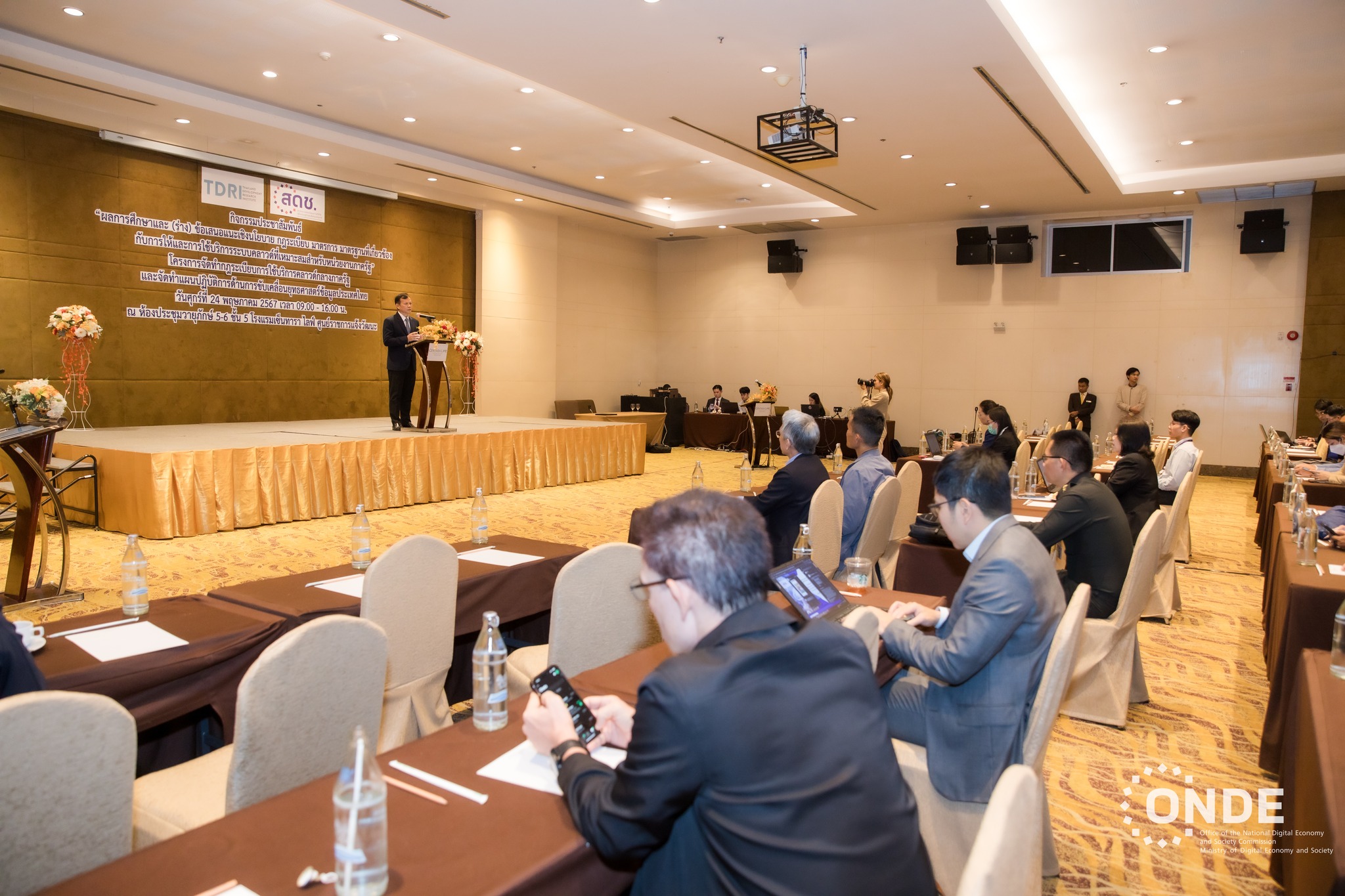 วันนี้ (24 พฤษภาคม 2567) นายภุชพงค์ โนดไธสง เลขาธิการคณะกรรมการดิจิทัลเพื่อเศรษฐกิจและสังคมแห่งชาติ เป็นประธานการประชุมประชาสัมพันธ์ผลการศึกษาและ (ร่าง) ข้อเสนอแนะเชิงนโยบาย กฎระเบียบ มาตรการ มาตรฐานที่เกี่ยวข้องกับการให้และการใช้บริการระบบคลาวด์ที่เหมาะสมสำหรับหน่วยงานภาครัฐ ภายใต้โครงการจัดทำกฎระเบียบการใช้บริการระบบคลาวด์กลางภาครัฐ และจัดทำแผนปฏิบัติการด้านการขับเคลื่อนยุทธศาสตร์ข้อมูลของประเทศไทย โดยมีนางสุรีพร พรโสภณวิชญ์ ผู้อำนวยการกองโครงสร้างพื้นฐานเทคโนโลยีดิจิทัล และนางพุทธรักษา แดงรัตน์ ผู้อำนวยการสำนักงานเลขาธิการ สำนักงานคณะกรรมการดิจิทัลเพื่อเศรษฐกิจและสังคมแห่งชาติ (สดช.) ตลอดจนผู้แทนจากหน่วยงานภาครัฐ ภาคเอกชน องค์กรอิสระ และภาคประชาชน กว่า 200 คน เข้าร่วมประชุม ณ โรงแรมเซ็นทารา ไลฟ์ ศูนย์ราชการและคอนเวนชันเซ็นเตอร์ แจ้งวัฒนะ กรุงเทพฯ