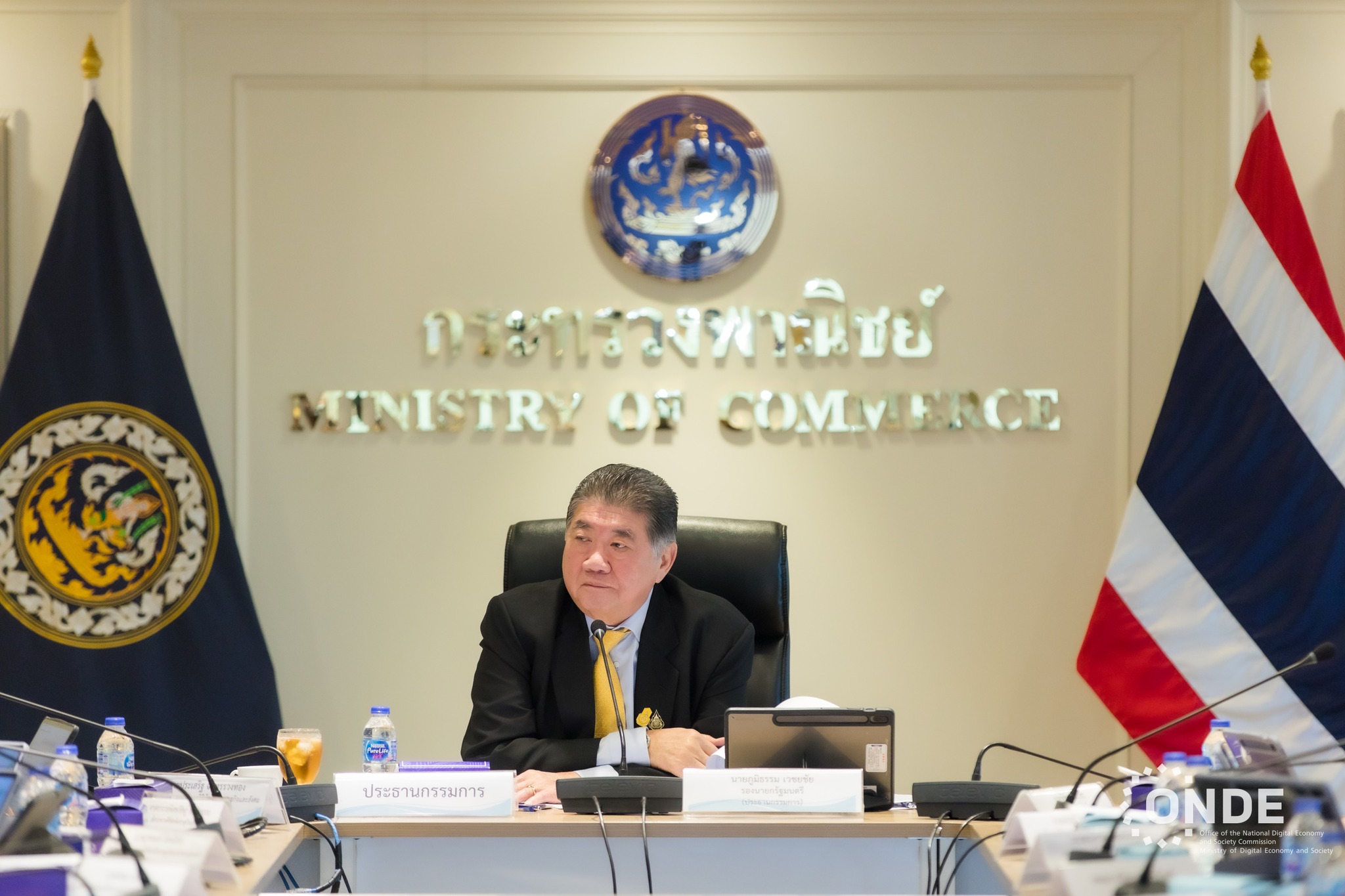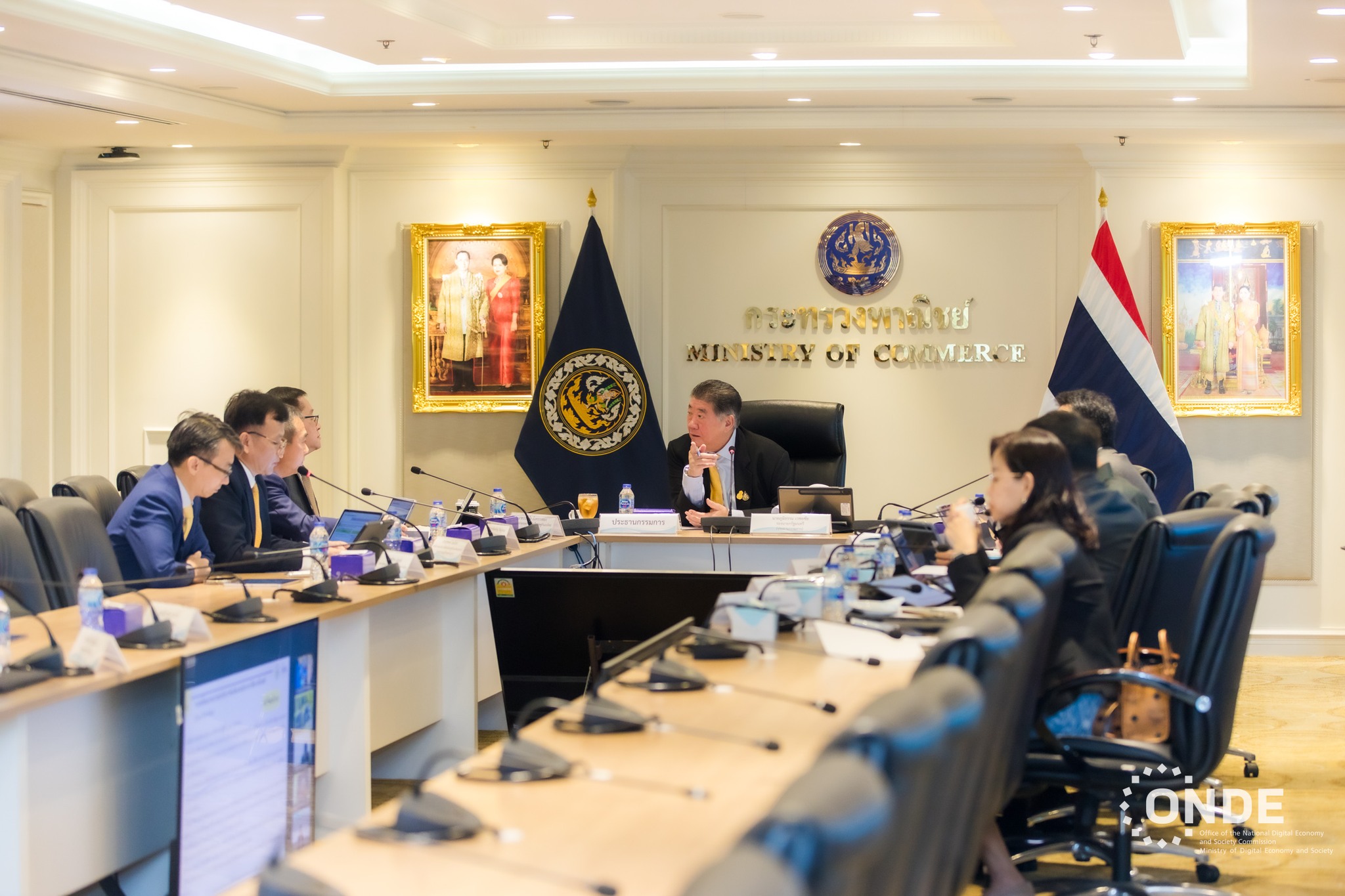 วันนี้ (14 มิถุนายน 2567) นายภูมิธรรม เวชยชัย รองนายกรัฐมนตรี เป็นประธานการประชุมคณะกรรมการดิจิทัลเพื่อเศรษฐกิจและสังคมแห่งชาติ (บอร์ดดีอี) ครั้งที่ 2/2567 โดยมี นายประเสริฐ จันทรรวงทอง รัฐมนตรีว่าการกระทรวงดิจิทัลเพื่อเศรษฐกิจและสังคม พร้อมด้วยศาสตราจารย์พิเศษวิศิษฏ์ วิศิษฏ์สรอรรถ ปลัดกระทรวงดิจิทัลเพื่อเศรษฐกิจและสังคม ในฐานะเลขานุการคณะกรรมการฯ นายภุชพงค์ โนดไธสง เลขาธิการคณะกรรมการดิจิทัลเพื่อเศรษฐกิจและสังคมแห่งชาติ ในฐานะผู้ช่วยเลขานุการคณะกรรมการฯ นายธีรวุฒิ ธงภักดิ์ รองเลขาธิการคณะกรรมการดิจิทัลเพื่อเศรษฐกิจและสังคมแห่งชาติ และนางอำไพ จิตรแจ่มใส รองเลขาธิการคณะกรรมการดิจิทัลเพื่อเศรษฐกิจและสังคมแห่งชาติ ตลอดจนคณะกรรมการผู้ทรงคุณวุฒิ เข้าร่วมประชุม ณ ห้องประชุมกิติยากรวรลักษณ์ สำนักงานปลัดกระทรวงพาณิชย์ และผ่านสื่ออิเล็กทรอนิกส์