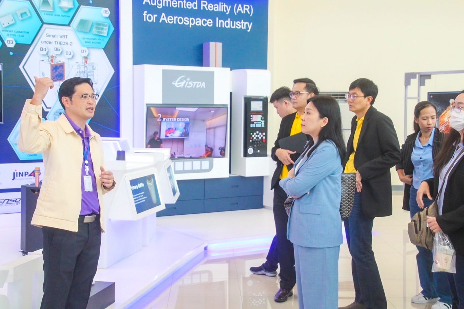 นอกจากนี้ ยังได้ศึกษาดูงานการวางแผนถ่ายทอดและรับสัญญาณดาวเทียม การปฏิบัติการของดาวเทียม THEOS และ THEOS-2 รวมถึงห้องปฏิบัติการ GALAXI Lab ที่ทำการทดสอบชิ้นส่วนอวกาศยาน และทิศทางการพัฒนาบุคลากรด้านกิจการอวกาศ ซึ่งจะมีส่วนสำคัญต่อการขับเคลื่อนด้านเทคโนโลยีดิจิทัลและนวัตกรรมของประเทศ ผ่านการสร้างองค์ความรู้ พัฒนาทักษะและเพิ่มขีดความสามารถในการแข่งขัน อันจะนำไปสู่การพัฒนาเศรษฐกิจและสังคมอย่างให้กับประเทศอย่างยั่งยืน