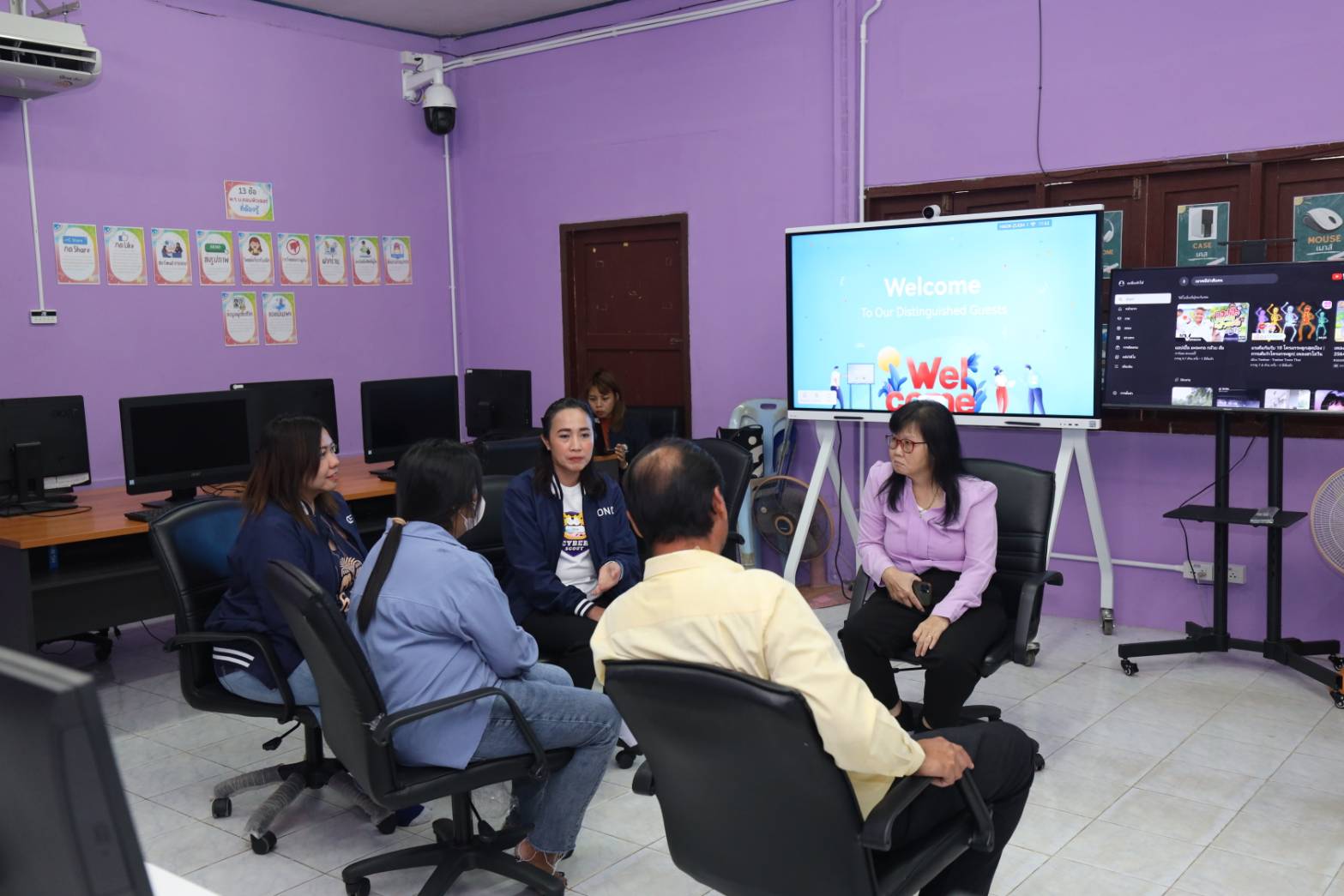 วันนี้ (30 สิงหาคม 2567) นางสาวรัตนา จรูญศักดิ์สิทธิ์ ผู้อำนวยการกองขับเคลื่อนดิจิทัลเพื่อสังคม สำนักงานคณะกรรมการดิจิทัลเพื่อเศรษฐกิจและสังคมแห่งชาติ (สดช.) พร้อมด้วยข้าราชการและเจ้าหน้าที่ สดช. ลงพื้นที่ตรวจเยี่ยมและติดตามผลการดำเนินงานศูนย์ดิจิทัลชุมชนโรงเรียนบ้านวังยาง ตำบลอ่างทอง อำเภอทับสะแก จังหวัดประจวบคีรีขันธ์ โดยมีผู้บริหารและบุคลากรของโรงเรียนให้การต้อนรับ และร่วมหารือพร้อมทั้งให้ข้อเสนอแนะแนวทางในการขับเคลื่อนโครงการศูนย์ดิจิทัลชุมชน และกิจกรรมพัฒนาอาสาสมัครดิจิทัล (อสด.) ไปสู่ชุมชน เพื่อลดช่องว่างและลดความเหลื่อมล้ำทางเทคโนโลยีดิจิทัลต่อไป