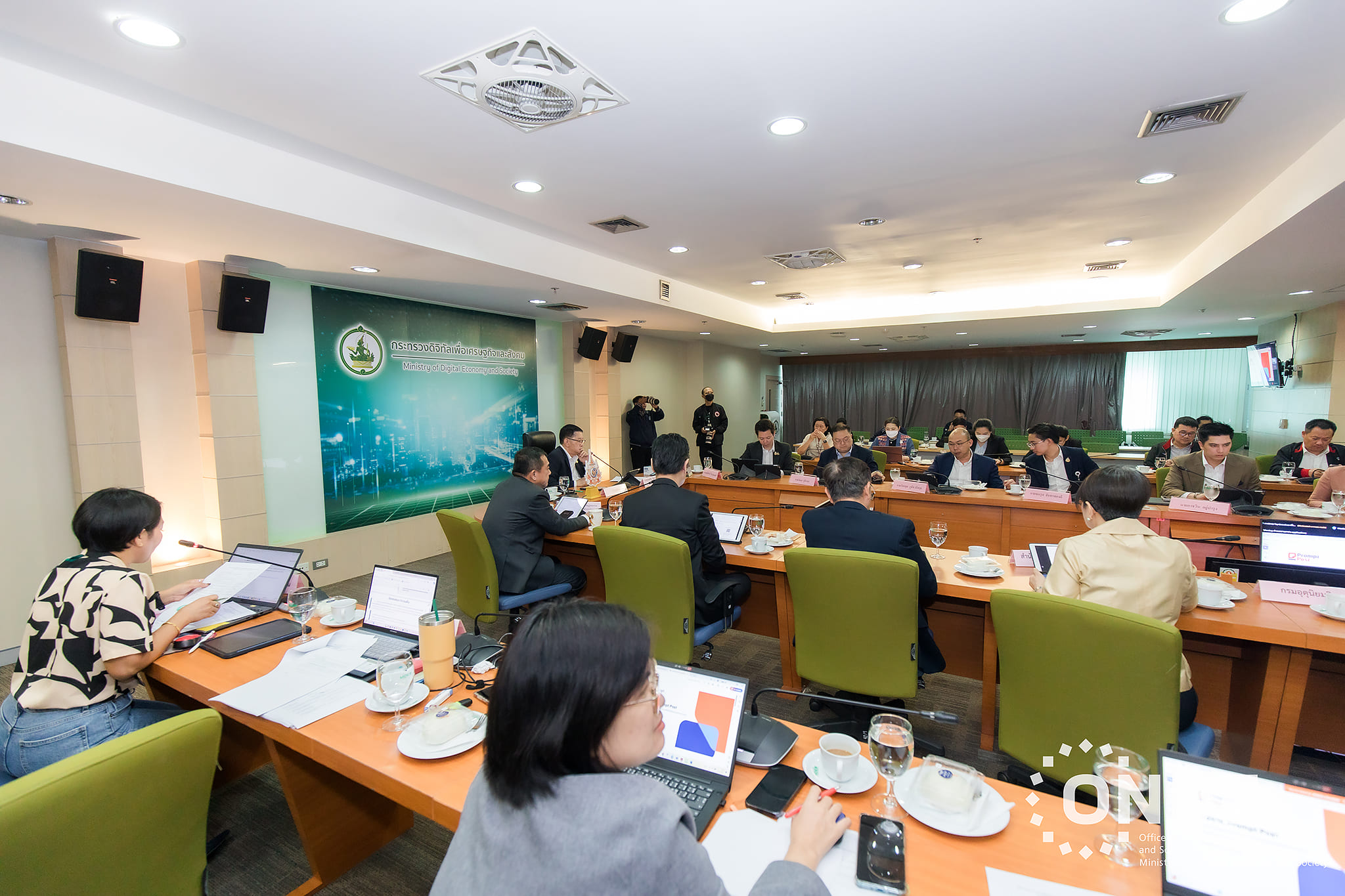 วันนี้ (20 กันยายน 2567) นายภุชพงค์ โนดไธสง เลขาธิการคณะกรรมการดิจิทัลเพื่อเศรษฐกิจและสังคมแห่งชาติพร้อมด้วยนายธีรวุฒิ ธงภักดิ์ รองเลขาธิการคณะกรรมการดิจิทัลเพื่อเศรษฐกิจและสังคมแห่งชาติ และนางอำไพ จิตรแจ่มใส รองเลขาธิการคณะกรรมการดิจิทัลเพื่อเศรษฐกิจและสังคมแห่งชาติ เข้าร่วมการประชุมผู้บริหารกระทรวงดิจิทัลเพื่อเศรษฐกิจและสังคม (กระทรวงดีอี) และหัวหน้าหน่วยงานในสังกัด (Top Executives) ครั้งที่ 11/2567 โดยมีนายประเสริฐ จันทรรวงทอง รองนายกรัฐมนตรี และรัฐมนตรีว่าการกระทรวงดิจิทัลเพื่อเศรษฐกิจและสังคม เป็นประธาน พร้อมด้วยศาสตราจารย์พิเศษวิศิษฏ์ วิศิษฏ์สรอรรถ ปลัดกระทรวงดีอี ตลอดจนคณะผู้บริหาร และหัวหน้าหน่วยงานในสังกัดกระทรวงดิจิทัลฯ เข้าร่วม ณ ห้องประชุม MDES-1 ชั้น 9 กระทรวงดิจิทัลเพื่อเศรษฐกิจและสังคม