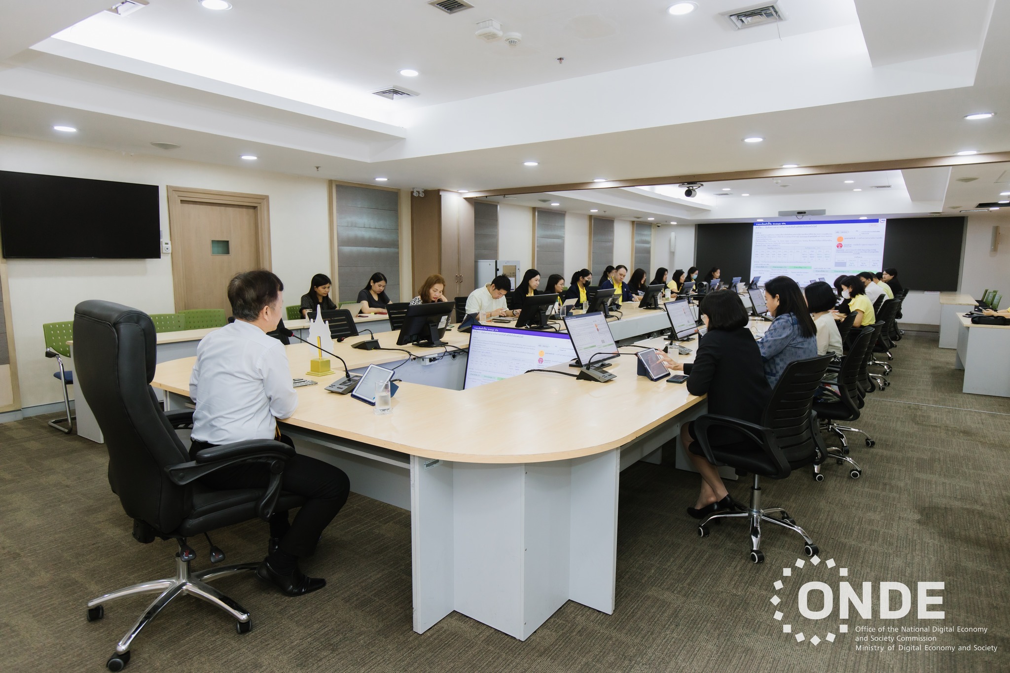 วันนี้ (23 กันยายน 2567) นายภุชพงค์ โนดไธสง เลขาธิการคณะกรรมการดิจิทัลเพื่อเศรษฐกิจและสังคมแห่งชาติ เป็นประธานการประชุมตัวชี้วัดการประเมินส่วนราชการตามมาตรการปรับปรุงประสิทธิภาพในการปฏิบัติราชการ ประจำปีงบประมาณ พ.ศ. 2568 ของสำนักงานคณะกรรมการดิจิทัลเพื่อเศรษฐกิจและสังคมแห่งชาติ (สดช.) ครั้งที่ 1/2567 โดยมีนางอำไพ จิตรแจ่มใส รองเลขาธิการคณะกรรมการดิจิทัลเพื่อเศรษฐกิจและสังคมแห่งชาติ ตลอดจนผู้บริหาร ข้าราชการ และเจ้าหน้าที่ สดช. เข้าร่วมประชุม ณ ห้องประชุม ONDE-1 ชั้น 9 สดช.