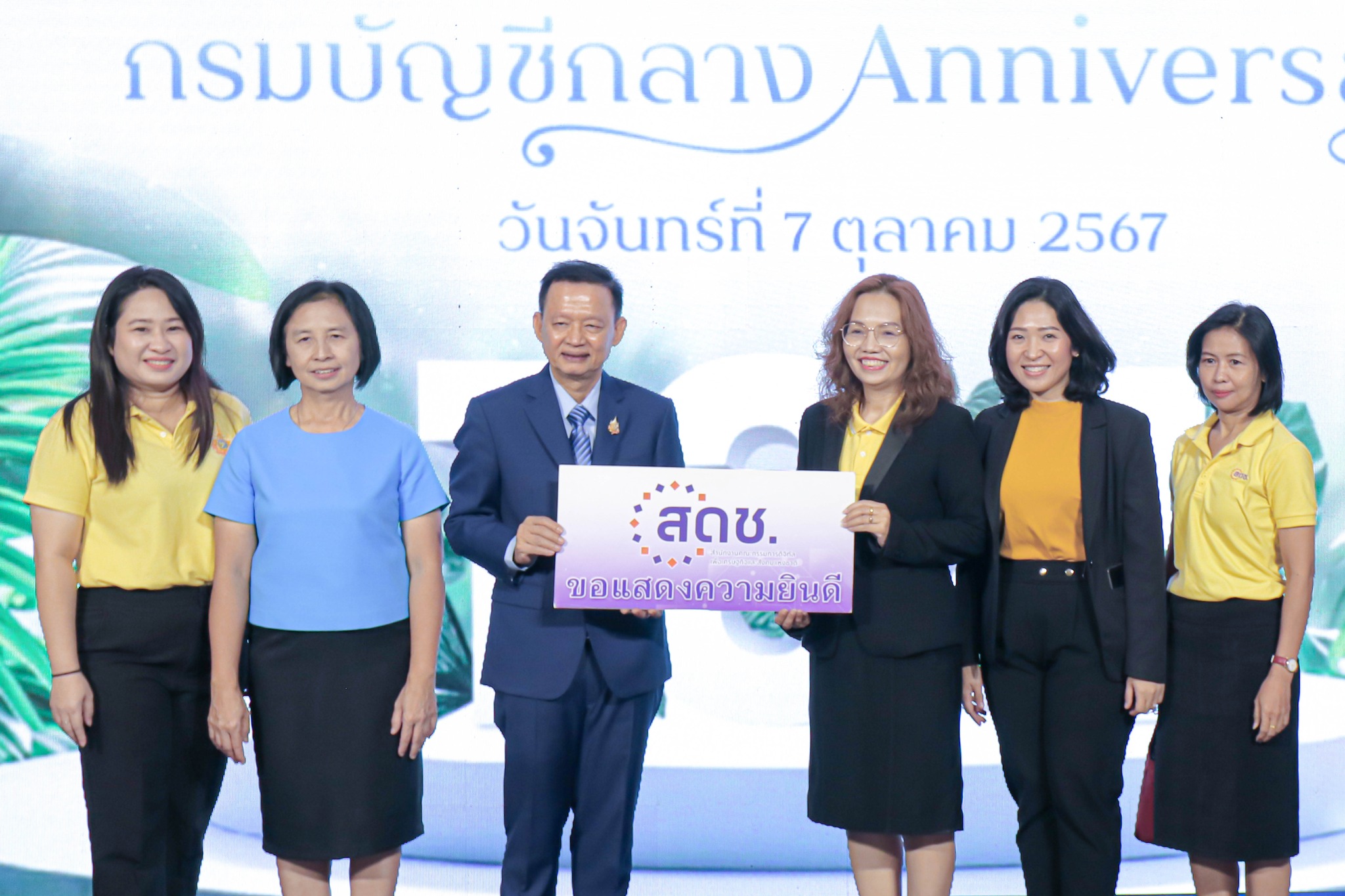 วันนี้ (7 ตุลาคม 2567) นางพุทธรักษา แดงรัตน์ ผู้อำนวยการสำนักงานเลขาธิการ สำนักงานคณะกรรมการดิจิทัลเพื่อเศรษฐกิจและสังคมแห่งชาติ (สดช.) ร่วมแสดงความยินดีเนื่องในโอกาสครบรอบ 134 ปี วันคล้ายวันสถาปนากรมบัญชีกลาง ณ ห้องโถงกลาง ชั้น 21 อาคาร 150 ปี กระทรวงการคลัง กรุงเทพฯ ทั้งนี้ สดช. ได้ร่วมบริจาคทรัพย์ เพื่อมอบให้กรมบัญชีกลาง นำไปสมทบทุนให้แก่องค์กรสาธารณกุศล มูลนิธิต่าง ๆ และกิจกรรมเพื่อสังคมต่อไป