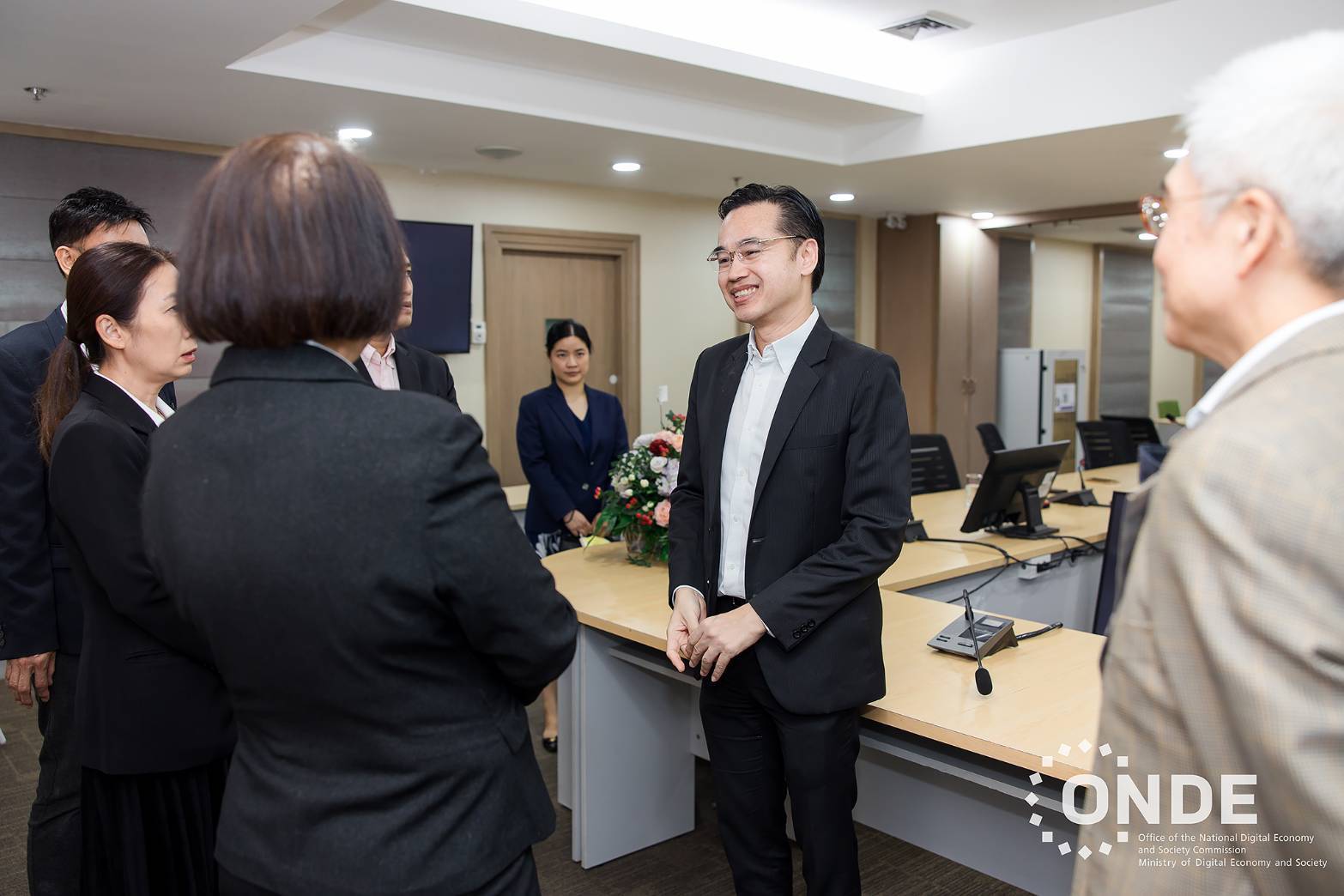 วันนี้ (3 ธันวาคม 2567) นายเวทางค์ พ่วงทรัพย์ เลขาธิการคณะกรรมการดิจิทัลเพื่อเศรษฐกิจและสังคมแห่งชาติ ให้การต้อนรับสภาดิจิทัลเพื่อเศรษฐกิจและสังคมแห่งประเทศไทย เข้าร่วมหารือแนวทางขับเคลื่อนอุตสาหกรรมดิจิทัลและขับเคลื่อนประเทศไทยเป็นศูนย์กลางเศรษฐกิจดิจิทัล ณ ห้องประชุม ONDE-1 ชั้น 9 สำนักงานคณะกรรมการดิจิทัลเพื่อเศรษฐกิจและสังคมแห่งชาติ