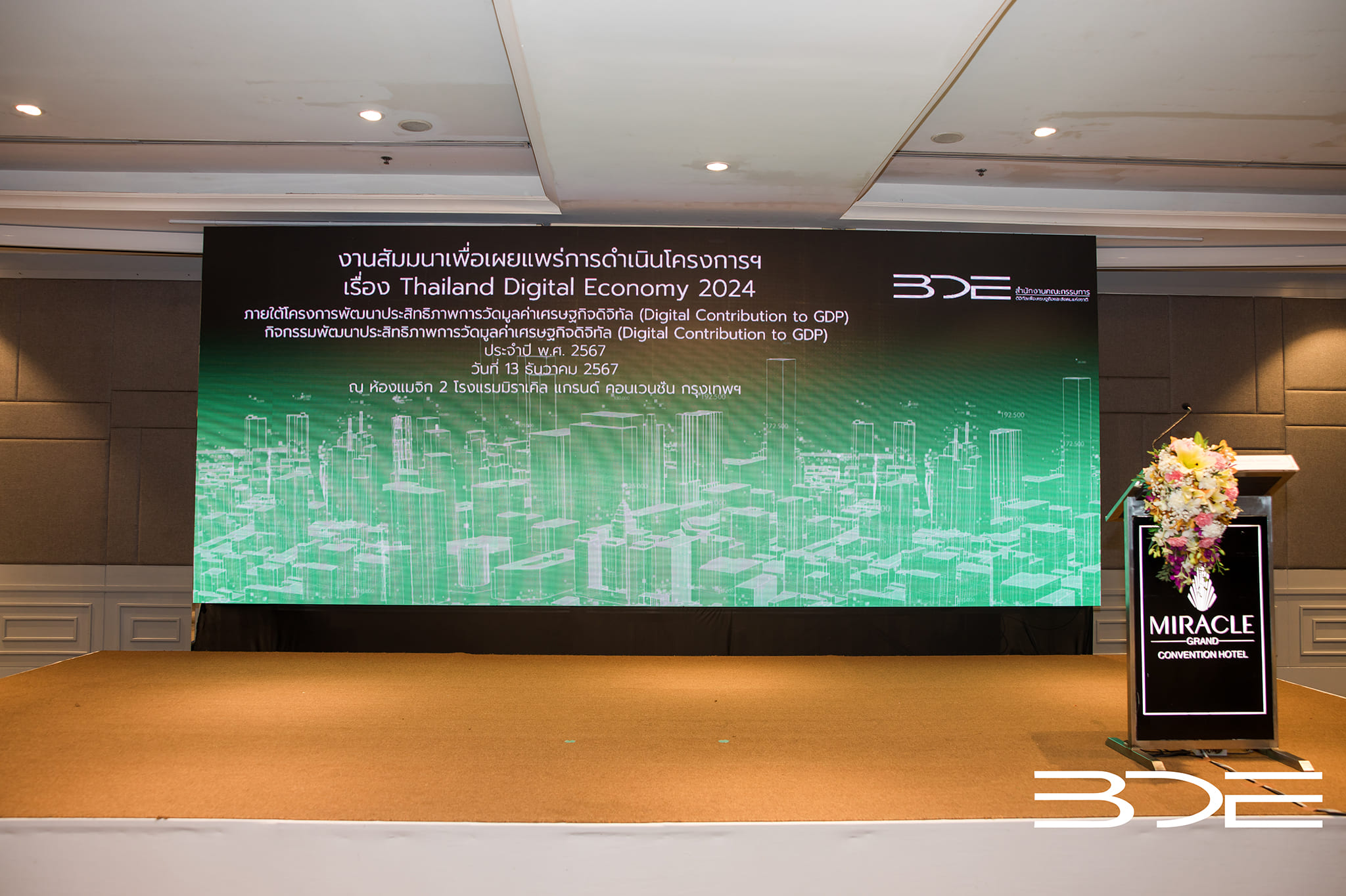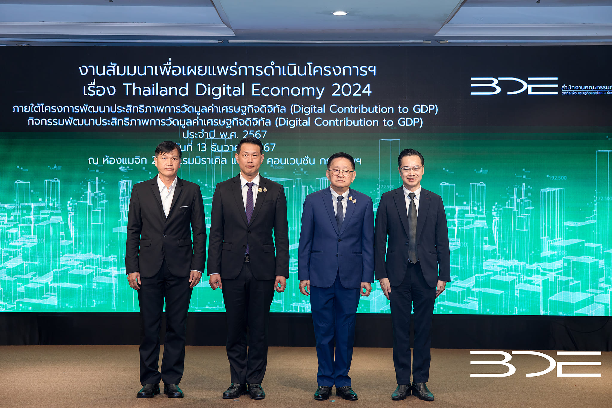 ในวันที่ 13 ธันวาคม 2567 ในงานสัมมนาเพื่อเผยแพร่การดำเนินโครงการฯ เรื่อง Thailand Digital Economy 2024 ณ ห้องแมจิก 2 โรงแรมมิราเคิล แกรนด์ คอนเวนชั่น กรุงเทพฯ นายประเสริฐ จันทรรวงทอง รองนายกรัฐมนตรีและรัฐมนตรีว่าการกระทรวงดิจิทัลเพื่อเศรษฐกิจและสังคม ได้เผยแพร่ ตัวเลขเศรษฐกิจดิจิทัล ปี 2567 ที่พบว่า ปี 2567 เศรษฐกิจดิจิทัลช่วยขับเคลื่อนเศรษฐกิจไทย โดย Broad Digital GDP (ราคาที่แท้จริง หรือ CVM) ประมาณการว่าขยายตัว 5.7 คิดเป็น 2.2 เท่า ของ GDP โดยรวมที่ขยายตัวร้อยละ 2.6 (สศช. ประมาณการ) ในด้านการค้าต่างประเทศ คาดว่าการส่งออกสินค้าและบริการดิจิทัล (ราคาที่แท้จริง หรือ CVM) จะขยายตัวร้อยละ 17.2 คิดเป็น 2.8 เท่า ของการส่งออกสินค้าและบริการโดยรวมที่ขยายตัวร้อยละ 6.1 (สศช. ประมาณการ)
