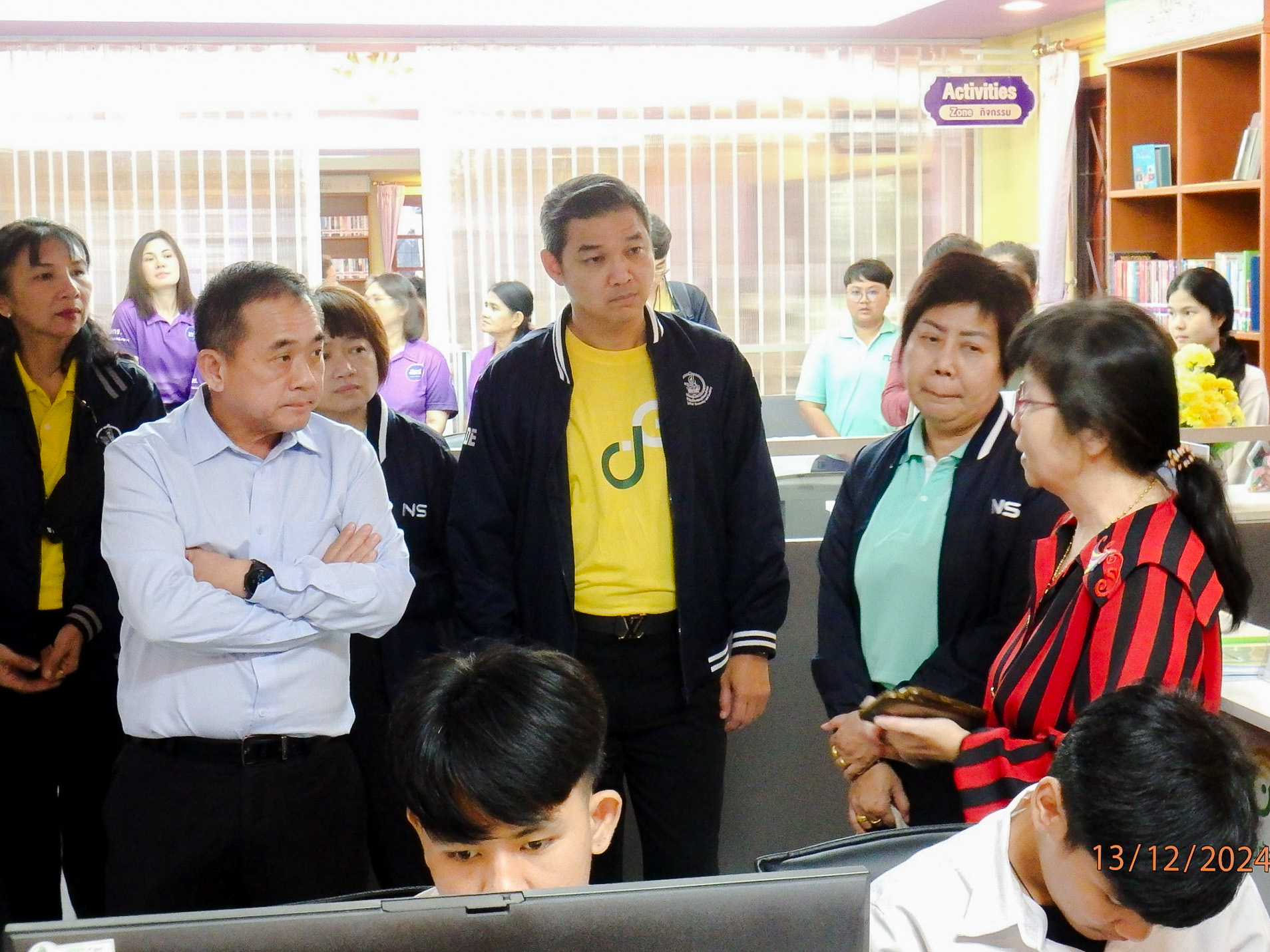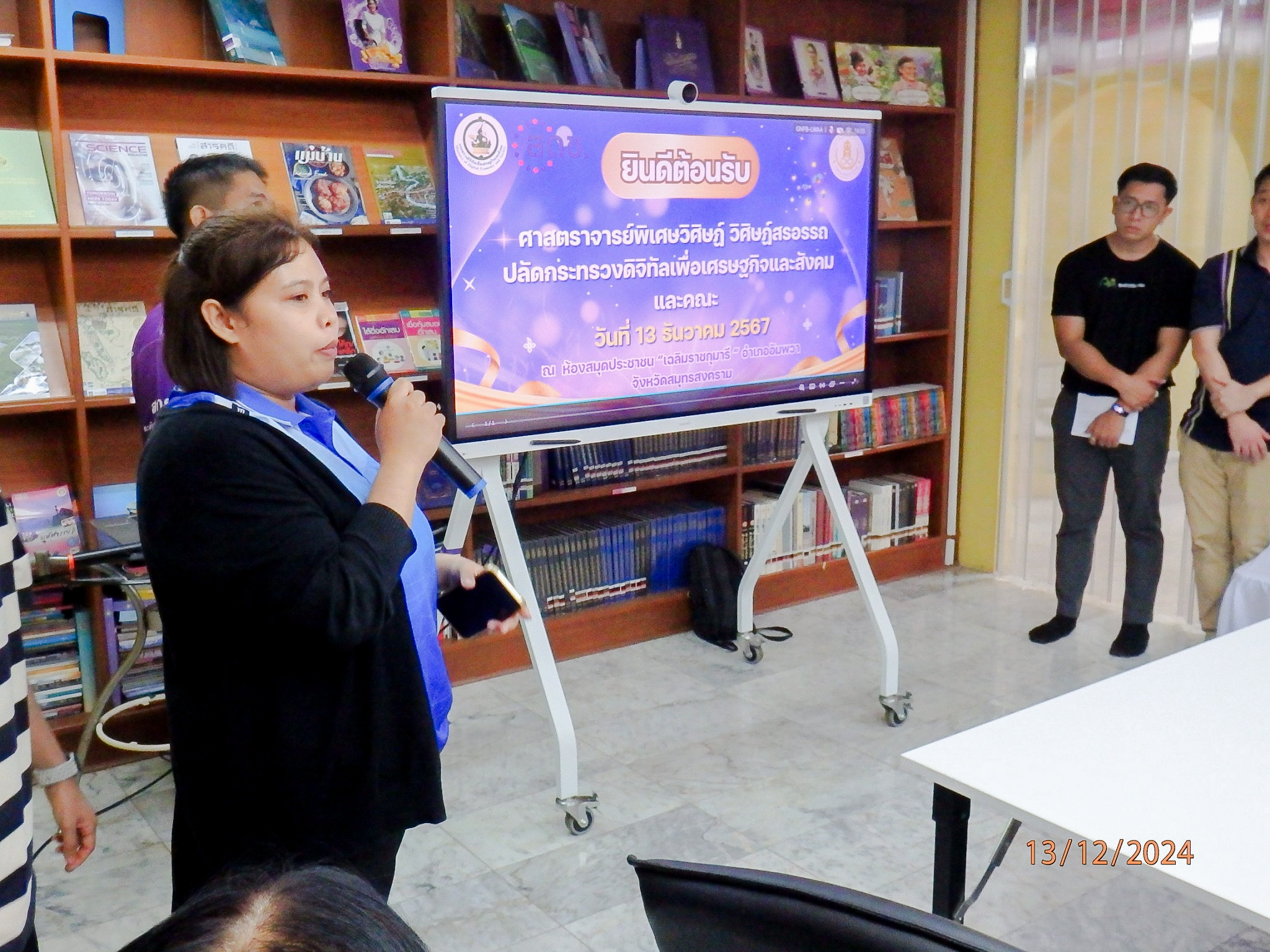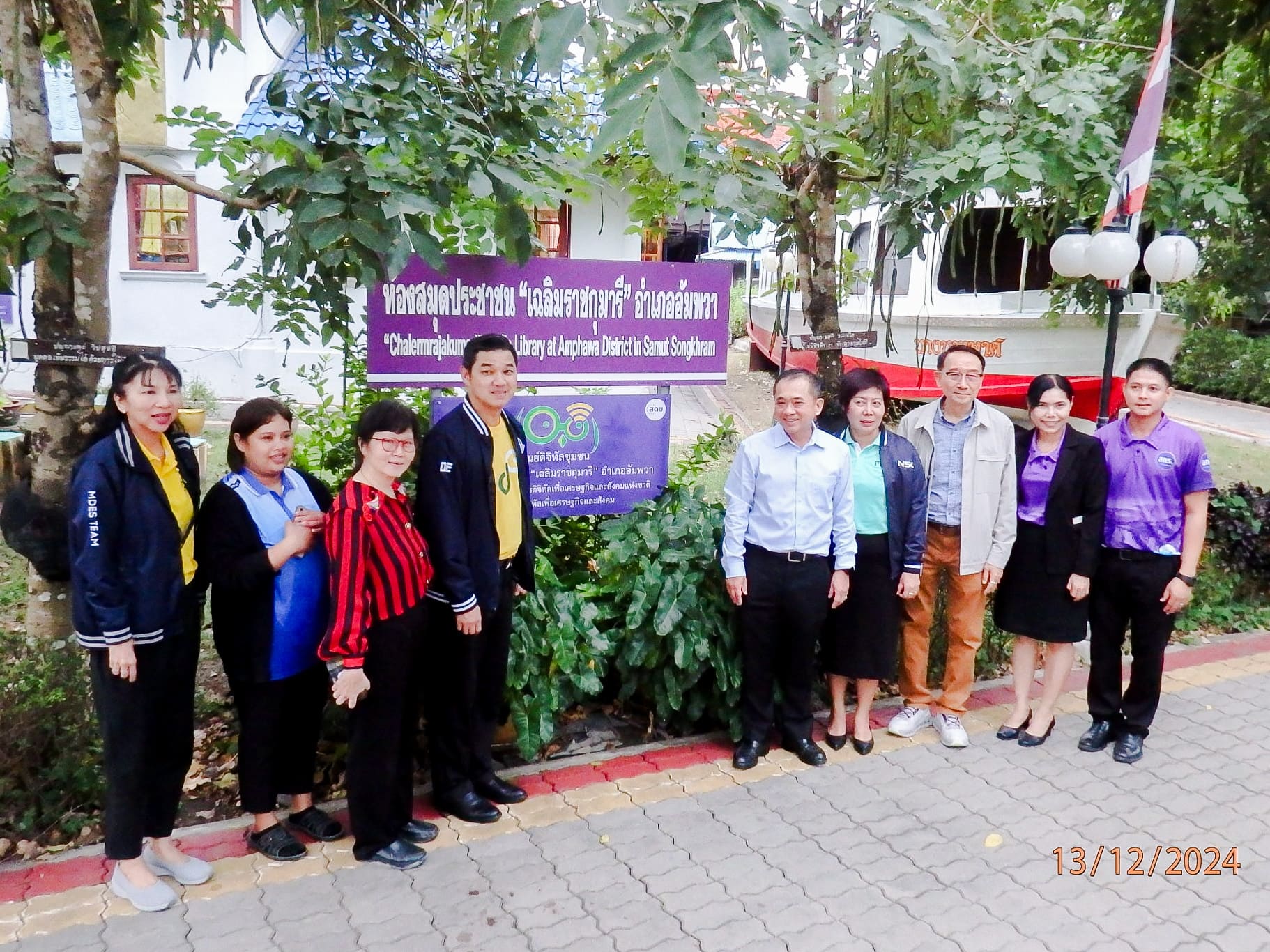 เมื่อวันที่ 13 ธันวาคม 2567 นายสมบูรณ์ เมฆไพบูลย์วัฒนา ผู้เชี่ยวชาญเฉพาะด้านการบริหารเทคโนโลยีดิจิทัลและการสื่อสาร และ นางสาวรัตนา จรูญศักดิ์สิทธิ์ ผู้อำนวยการกองขับเคลื่อนดิจิทัลเพื่อสังคม สำนักงานคณะกรรมการดิจิทัลเพื่อเศรษฐกิจและสังคมแห่งชาติ (สดช.) พร้อมด้วยเจ้าหน้าที่ สดช. ให้การต้อนรับ ศาสตราจารย์พิเศษวิศิษฏ์ วิศิษฏ์สรอรรถ ปลัดกระทรวงดิจิทัลเพื่อเศรษฐกิจและสังคม พร้อมด้วย นายเอกพงษ์ หริ่มเจริญ ผู้ตรวจราชการกระทรวงดิจิทัลเพื่อเศรษฐกิจและสังคม และคณะ ในโอกาสลงพื้นที่ตรวจราชการ เขตตรวจราชการที่ 4 เพื่อตรวจเยี่ยมและติดตามผลการดำเนินงานของศูนย์ดิจิทัลชุมชน โดย สดช. ได้นำเสนอผลการดำเนินงานโครงการศูนย์ดิจิทัลชุมชน และโครงการพัฒนาเครือข่ายอาสาสมัครดิจิทัล (อสด.) รวมถึงโครงการต่าง ๆ ที่สำคัญของ สดช. ณ ศูนย์ดิจิทัลชุมชน ห้องสมุดประชาชน “เฉลิมราชกุมารี” อำเภออัมพวา จังหวัดสมุทรสงคราม