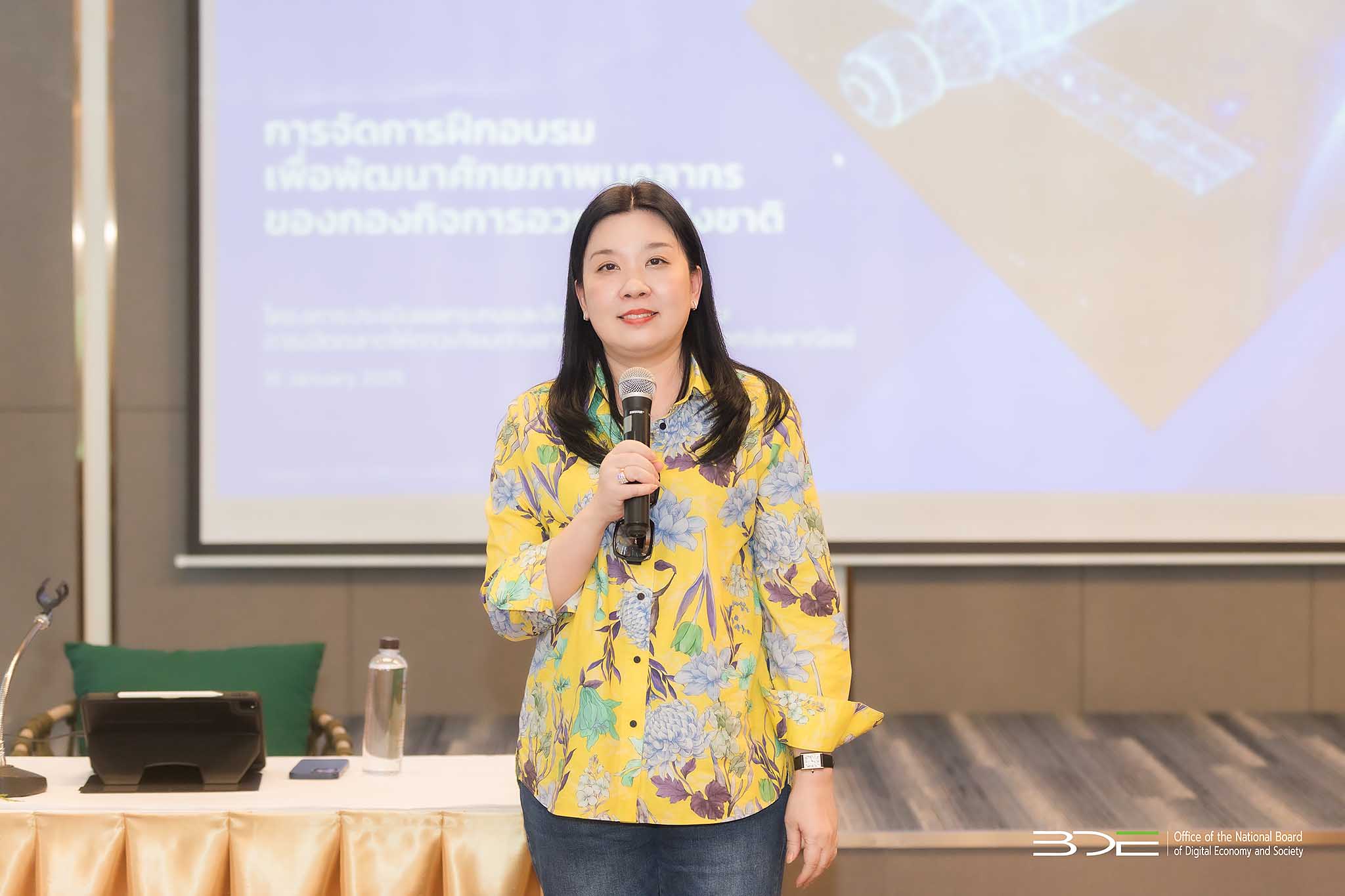 เมื่อวันที่ 16 – 17 มกราคม 2568 นางสาวพรพรรณ ตันนุกิจ ผู้อำนวยการกองกิจการอวกาศแห่งชาติ สำนักงานคณะกรรมการดิจิทัลเพื่อเศรษฐกิจและสังคมแห่งชาติ (BDE) พร้อมด้วยผู้บริหาร ข้าราชการ และเจ้าหน้าที่สำนักงานคณะกรรมการ ดีอี เข้ารับการฝึกอบรมภายใต้โครงการ “ประเมินผลกระทบและจัดทำนโยบายรองรับการเปิดตลาดให้ดาวเทียมต่างชาติให้บริการในประเทศเชิงพาณิชย์ เพื่อพัฒนาศักยภาพบุคลากร BDE” ณ โรงแรม Pattaya Discovery Beach จังหวัดชลบุรี