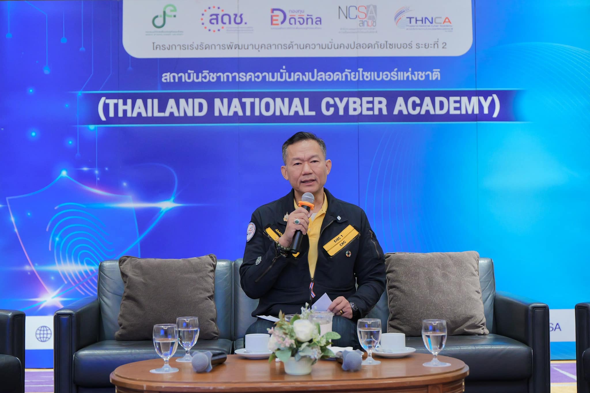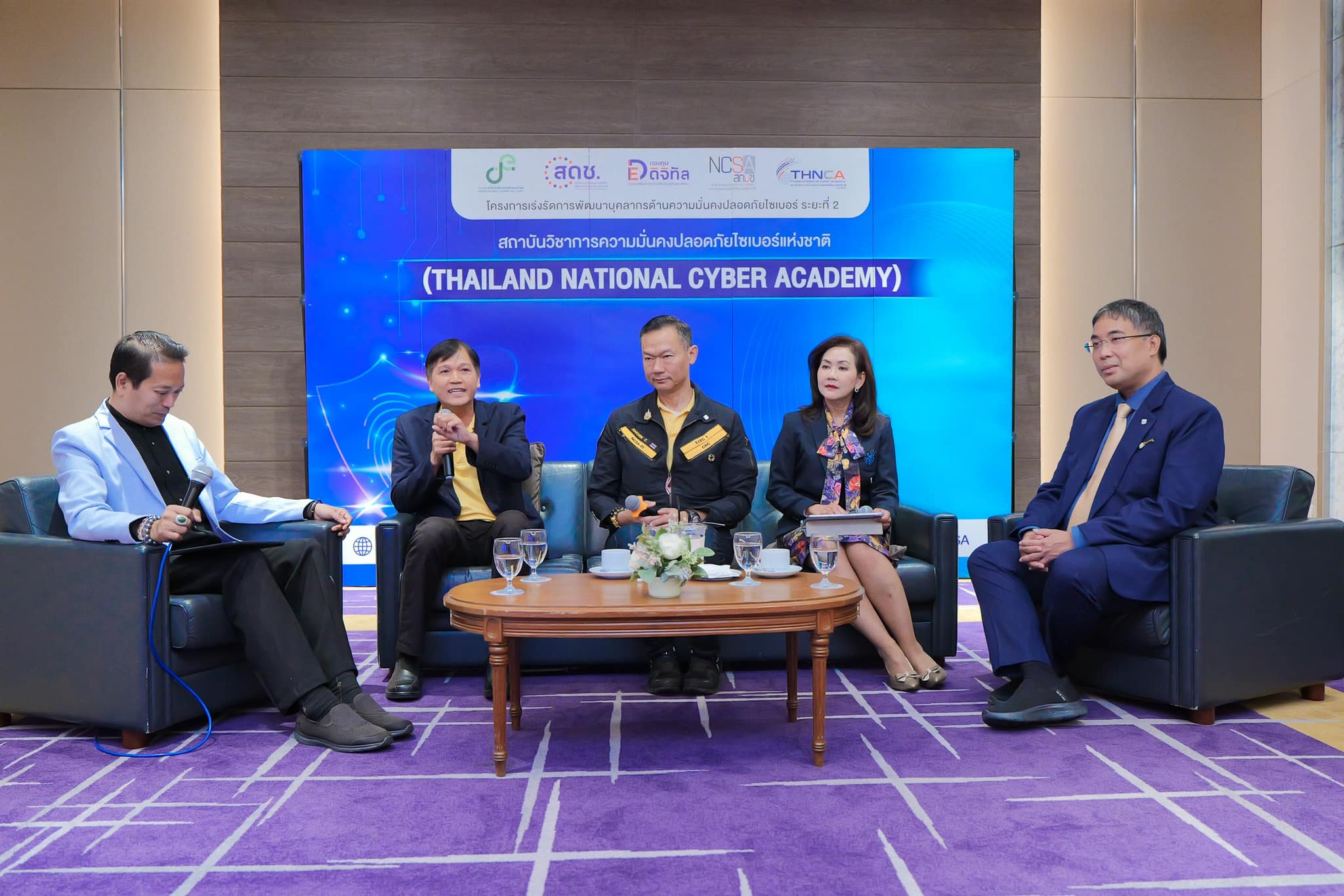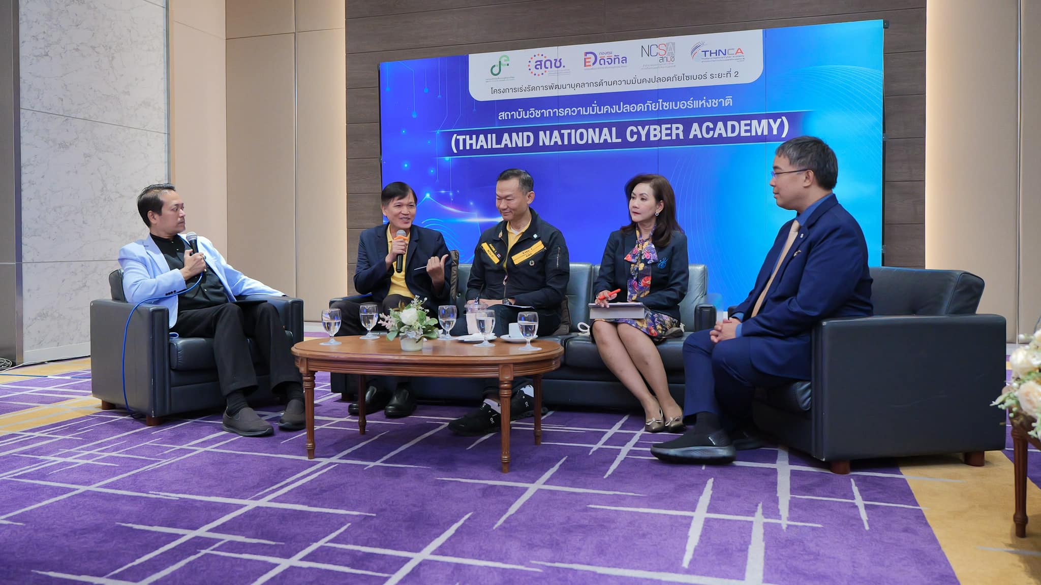 วันนี้ (17 มีนาคม 2568) นายธีรวุฒิ ธงภักดิ์ รองเลขาธิการคณะกรรมการดิจิทัลเพื่อเศรษฐกิจและสังคมแห่งชาติ (BDE) ร่วมเสวนา ในหัวข้อ "กรอบนโยบายการพัฒนากำลังคนด้านความมั่นคงปลอดภัยไซเบอร์ของประเทศไทย" โดยมีพลอากาศตรี อมร ชมเชย เลขาธิการคณะกรรมการการรักษาความมั่นคงปลอดภัยไซเบอร์แห่งชาติ พร้อมด้วย ผศ.ดร.พรชณิตว์ แก้วเนตร รองอธิการบดีฝ่ายวิชาการและกิจการต่างประเทศ มหาวิทยาลัยสวนดุสิต นายธนวัต ทวีวัฒน์ นายกสมาคมไอเอสซีสแควร์ประจำภาคพื้นกรุงเทพมหานคร ร่วมเสวนา และอาจารย์นรินทร์ฤทธิ์ เปรมอภิวัฒโนกุล อุปนายกสมาคมความมั่นคงปลอดภัยระบบสารสนเทศ (TISA) เป็นผู้ดำเนินรายการ โดยจัดขึ้น ณ สถาบันวิชาการความมั่นคงปลอดภัยทางไซเบอร์แห่งชาติ กรุงเทพฯ