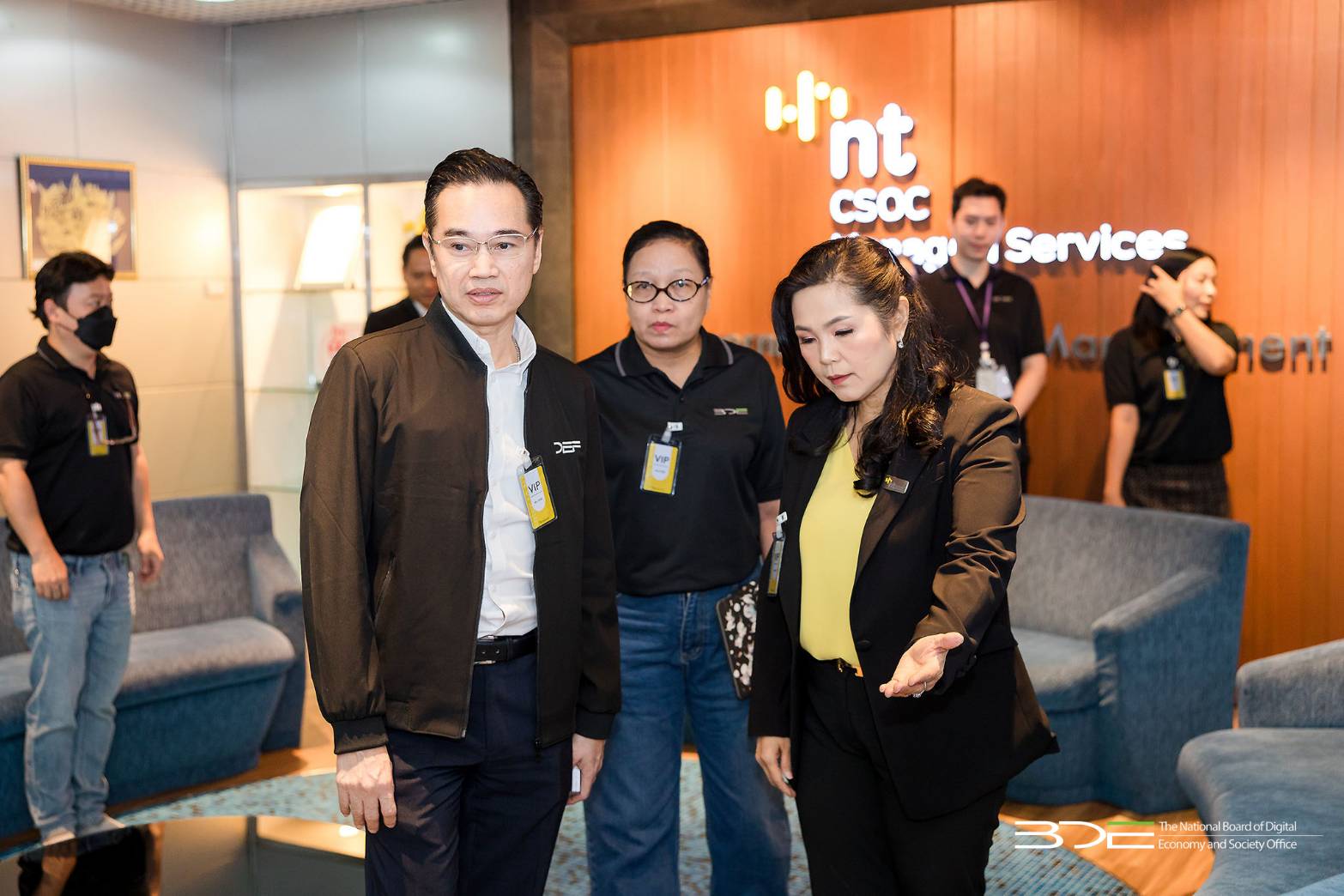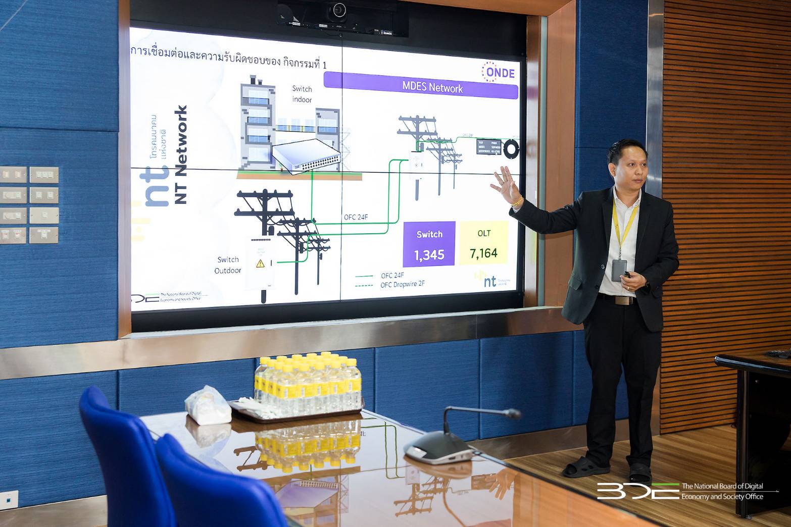 วันนี้ (21 มีนาคม 2568) นายเวทางค์ พ่วงทรัพย์ เลขาธิการคณะกรรมการดิจิทัลเพื่อเศรษฐกิจและสังคมแห่งชาติ (BDE) พร้อมด้วยนางสุรีพร พรโสภณวิชญ์ ผู้อำนวยการกองโครงสร้างพื้นฐานเทคโนโลยีดิจิทัล และเจ้าหน้าที่ BDE ติดตามและร่วมหารือเกี่ยวกับการให้บริการอินเทอร์เน็ตสาธารณะเพื่อพัฒนาคุณภาพชีวิต ภายใต้โครงข่ายเน็ตประชารัฐ ณ ศูนย์บริหารจัดการโครงข่าย (Network Operation Center : NOC) บริษัท โทรคมนาคมแห่งชาติ จำกัด (มหาชน) ซึ่งได้มีการวางโครงข่ายอินเทอร์เน็ตความเร็วสูงครอบคลุมหมู่บ้านในพื้นที่ห่างไกลและจัดให้มีจุดให้บริการอินเทอร์เน็ตสาธารณะแบบไร้สาย (Free Wi-Fi) หมู่บ้านละ 1 แห่ง โดยปัจจุบันได้เปิดให้บริการ Free Wi-Fi ประจำหมู่บ้าน จำนวน 24,654 แห่งทั่วประเทศ