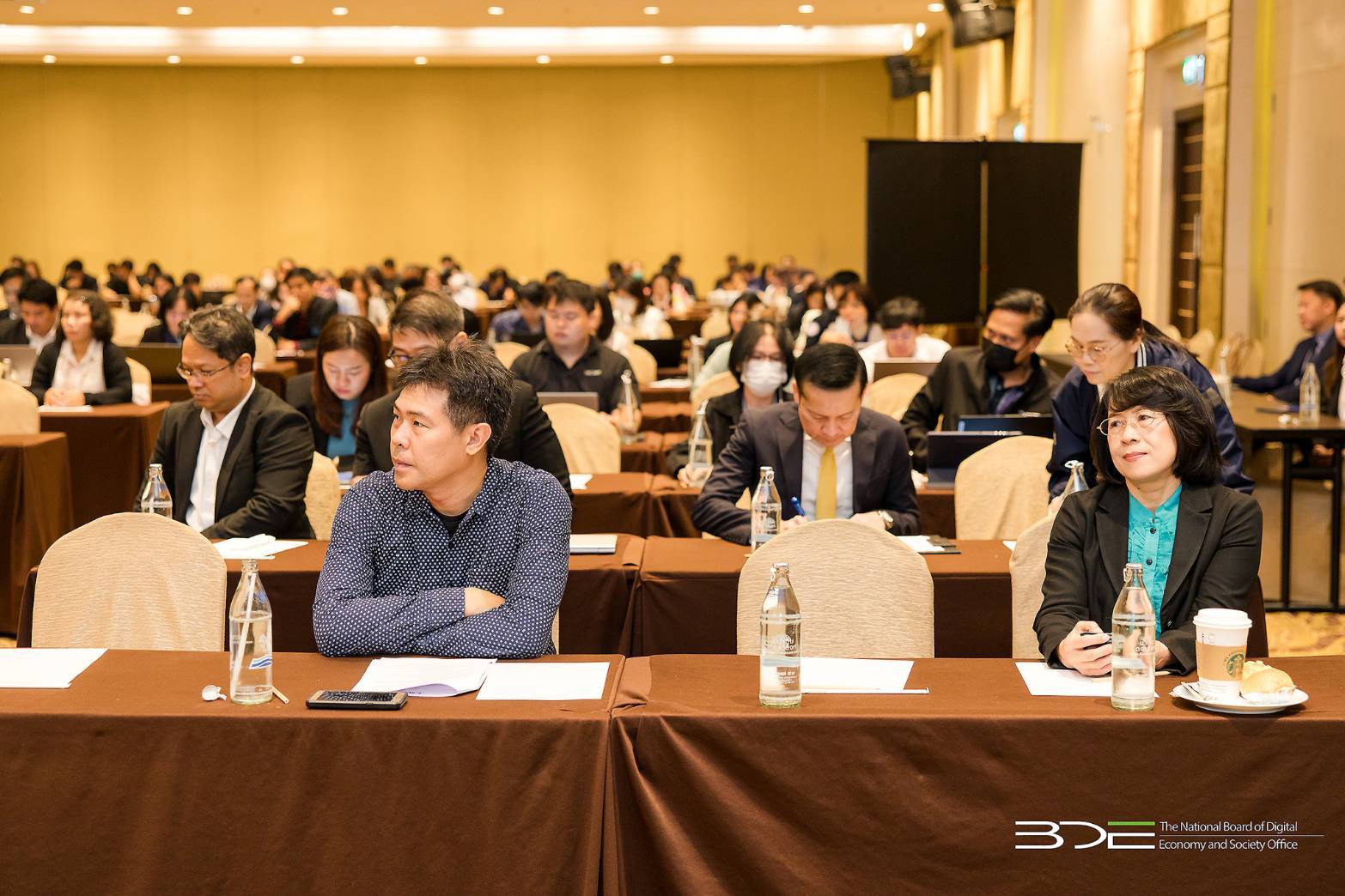 เมื่อวันที่ 28 มีนาคม 2568 นายเวทางค์ พ่วงทรัพย์ เลขาธิการคณะกรรมการดิจิทัลเพื่อเศรษฐกิจและสังคมแห่งชาติ (BDE) เป็นประธานเปิดการประชุมสัมมนาเผยแพร่ผลการติดตามและประเมินผลการดำเนินงานตามนโยบายและแผนระดับชาติว่าด้วยการพัฒนาดิจิทัลเพื่อเศรษฐกิจและสังคม แผนปฏิบัติการ แผนงาน รวมทั้งมาตรการอื่น ๆ ที่เกี่ยวข้อง ภายใต้โครงการติดตามและประเมินผลนโยบายและแผนระดับชาติว่าด้วยการพัฒนาดิจิทัลเพื่อเศรษฐกิจและสังคม (นโยบายและแผนดีอี) พร้อมด้วยนางอำไพ จิตรแจ่มใส รองเลขาธิการ และผู้บริหาร BDE เข้าร่วมงานในวันนี้ด้วย โดยมีนายธเนศ วิริยะจิตต์ ผู้อำนวยการกองยุทธศาสตร์และแผนงาน สำนักงานคณะกรรมการดีอี กล่าวรายงาน ตลอดจนมีผู้แทนจากหน่วยงานภาครัฐ ภาคเอกชน และภาคประชาชน เข้าร่วมกว่า 200 คน ณ โรงแรมเซ็นทารา ไลฟ์ ศูนย์ราชการ และคอนเวนชันเซ็นเตอร์ แจ้งวัฒนะ กรุงเทพฯ